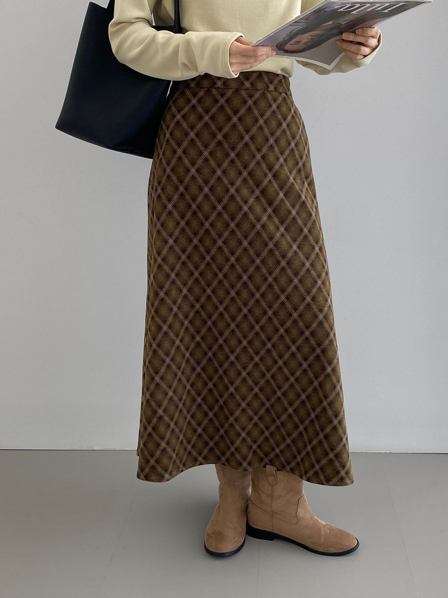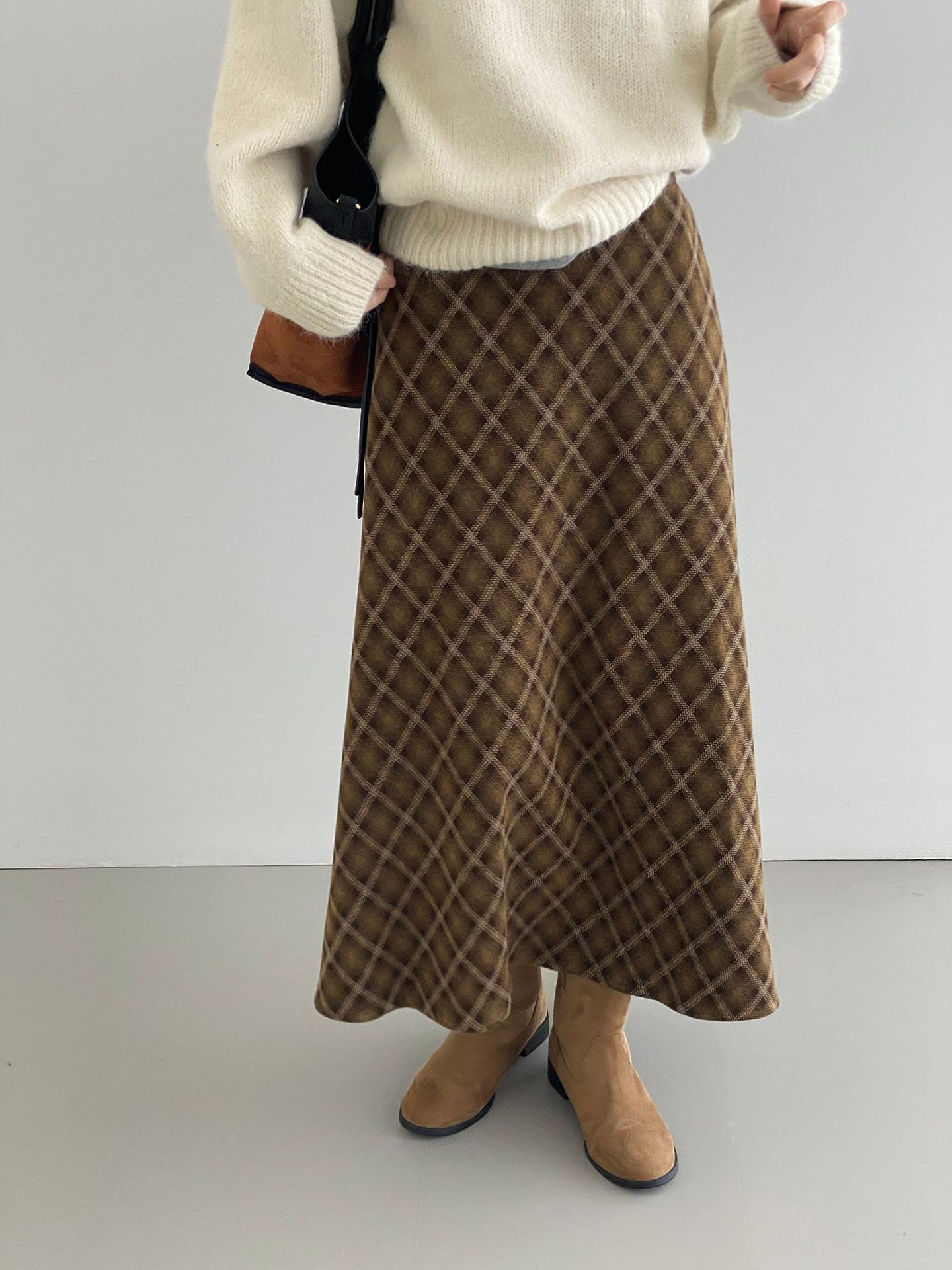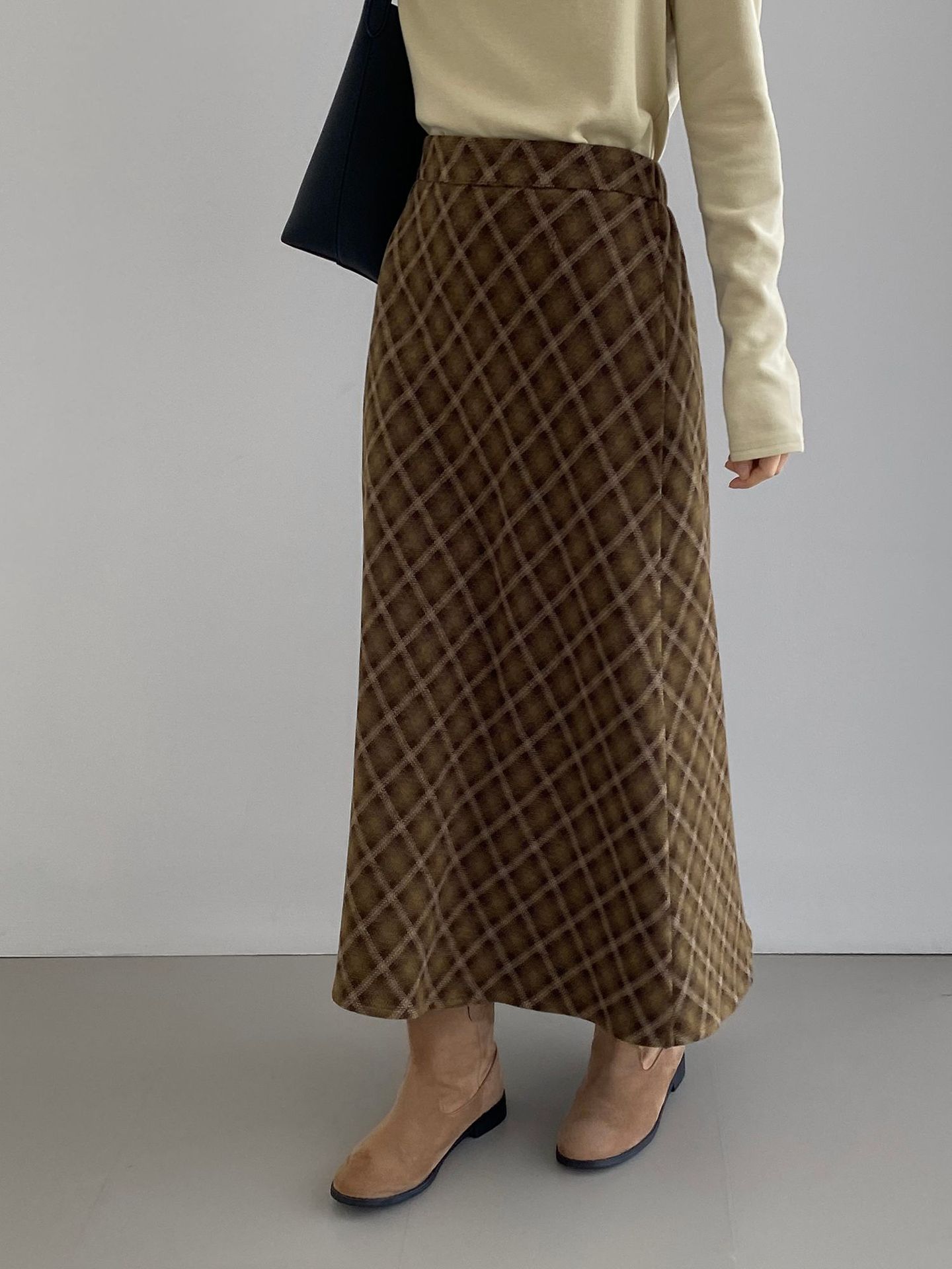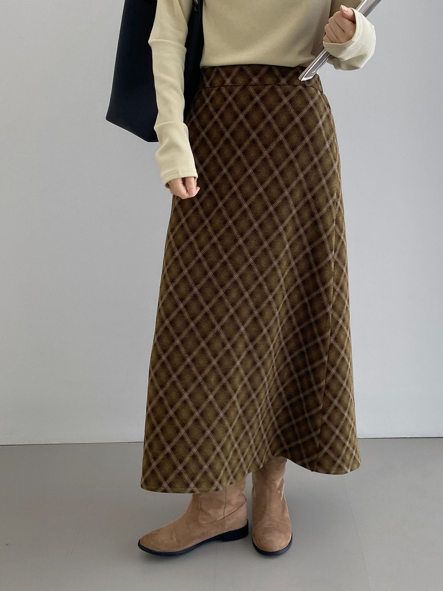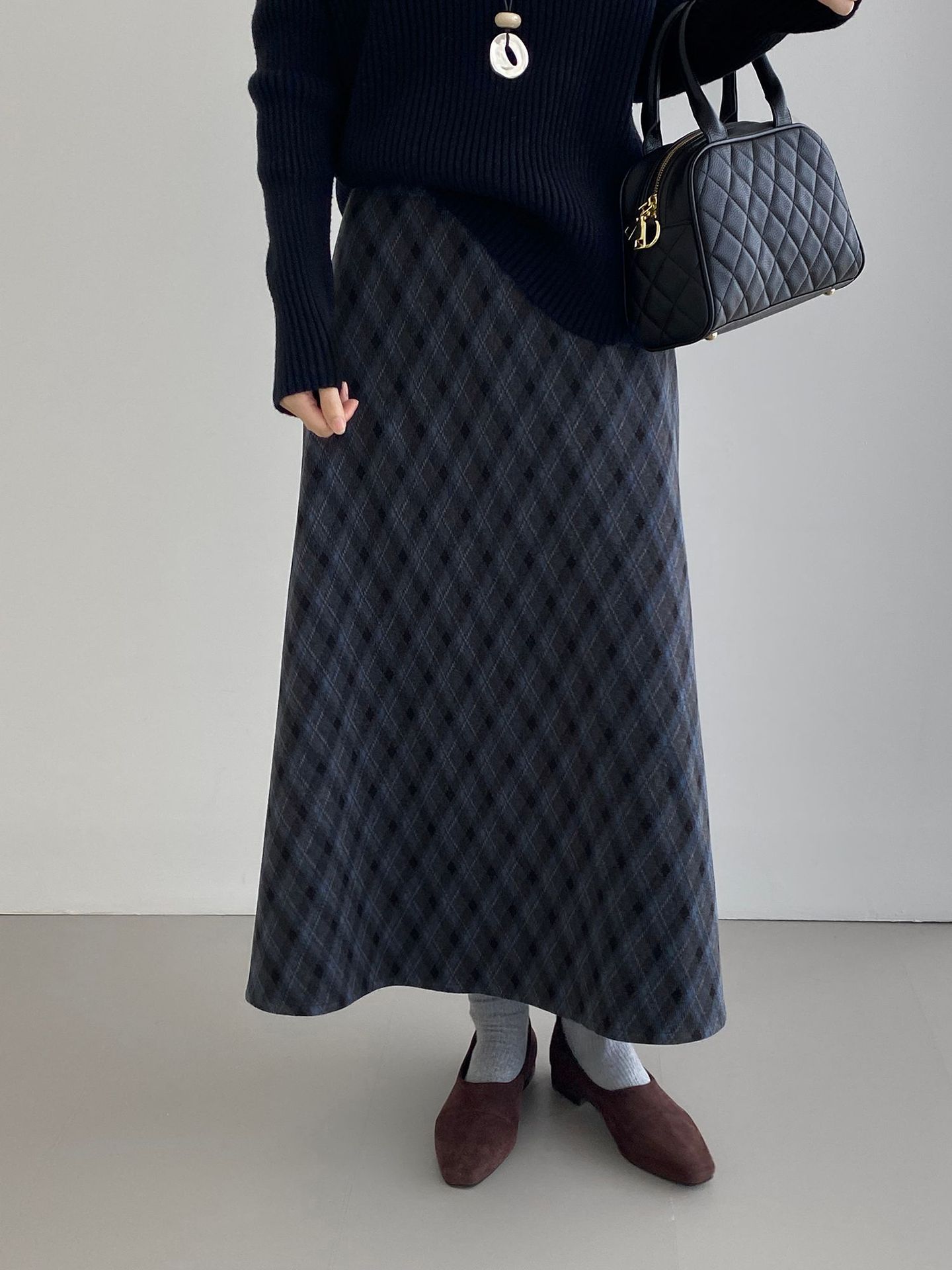 복고 학원 스타일 문예 격자무늬 충돌 스커트 여성 허리 밴딩 기질 날씬해 보이는 a 라인 롱 스커트