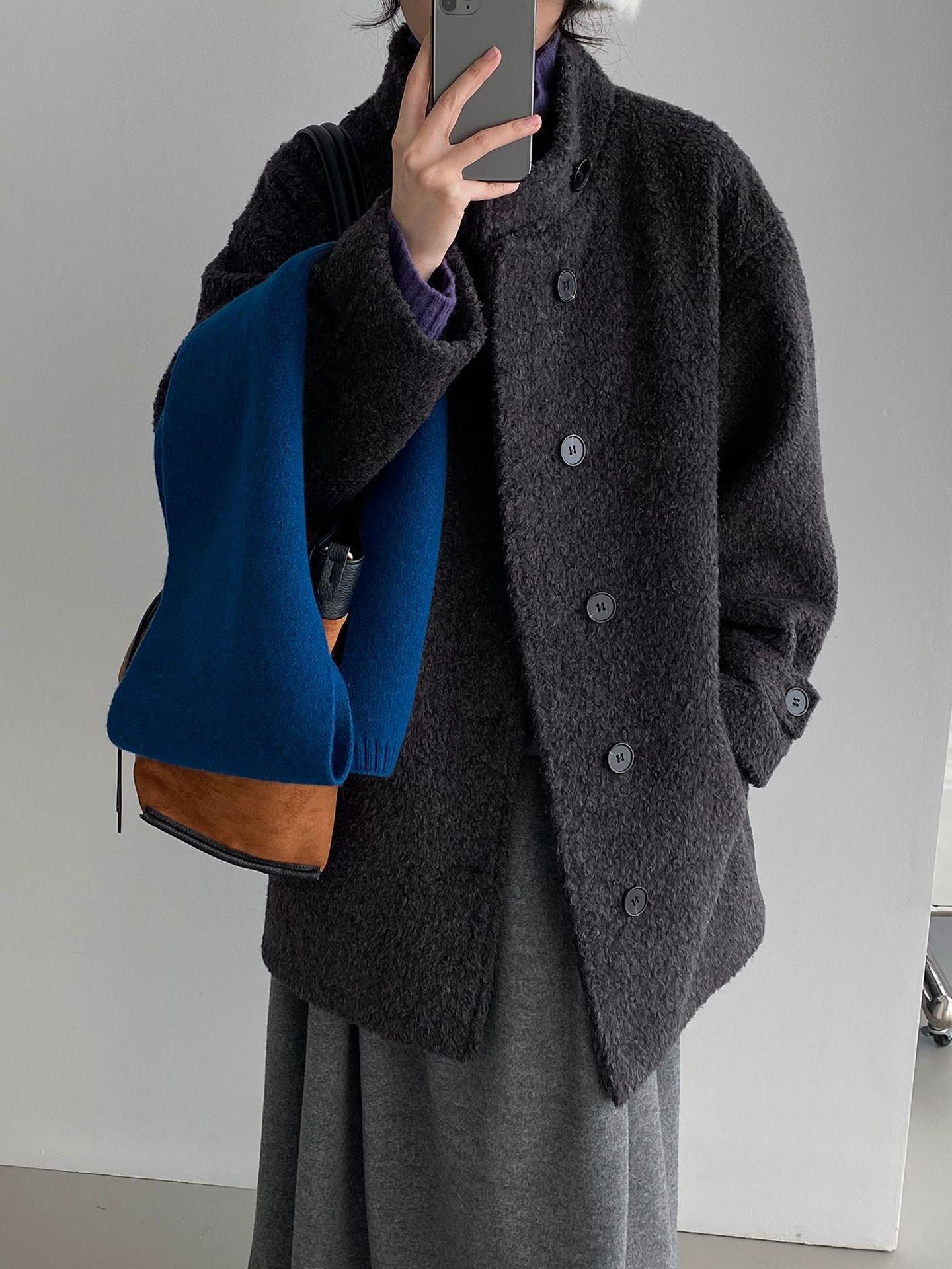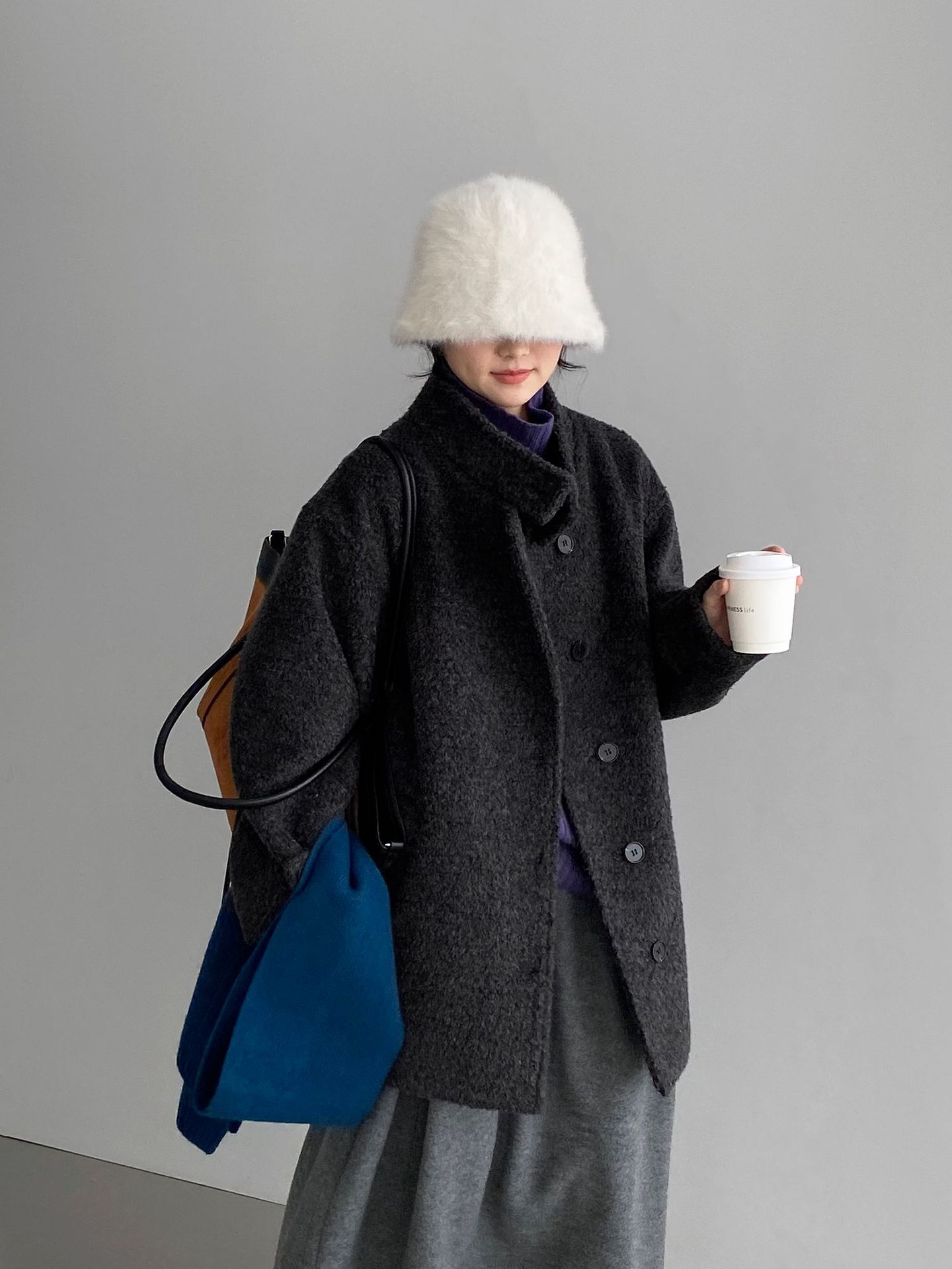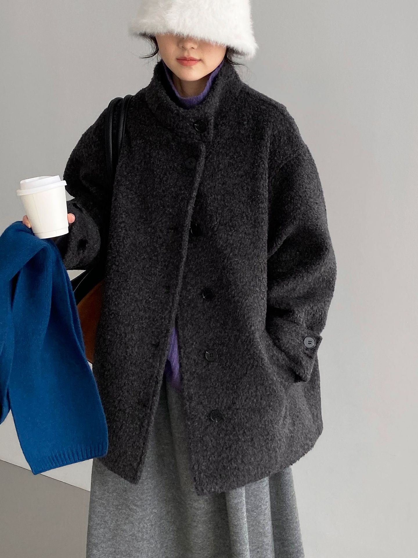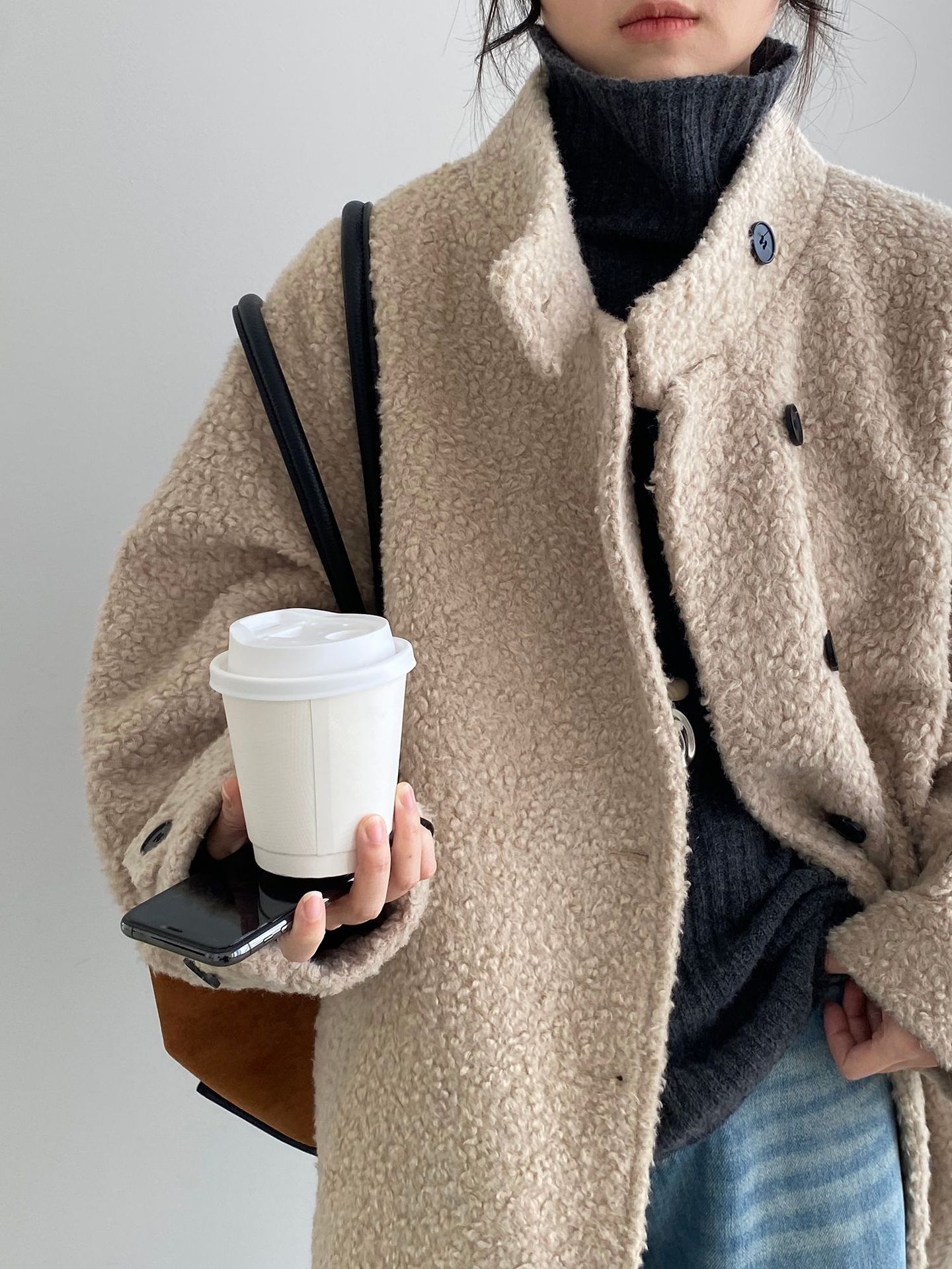여성용 코트는 고급스럽고 나른한 느낌, 스탠드칼라 모직 코트라 따뜻하고 두툼한 탑