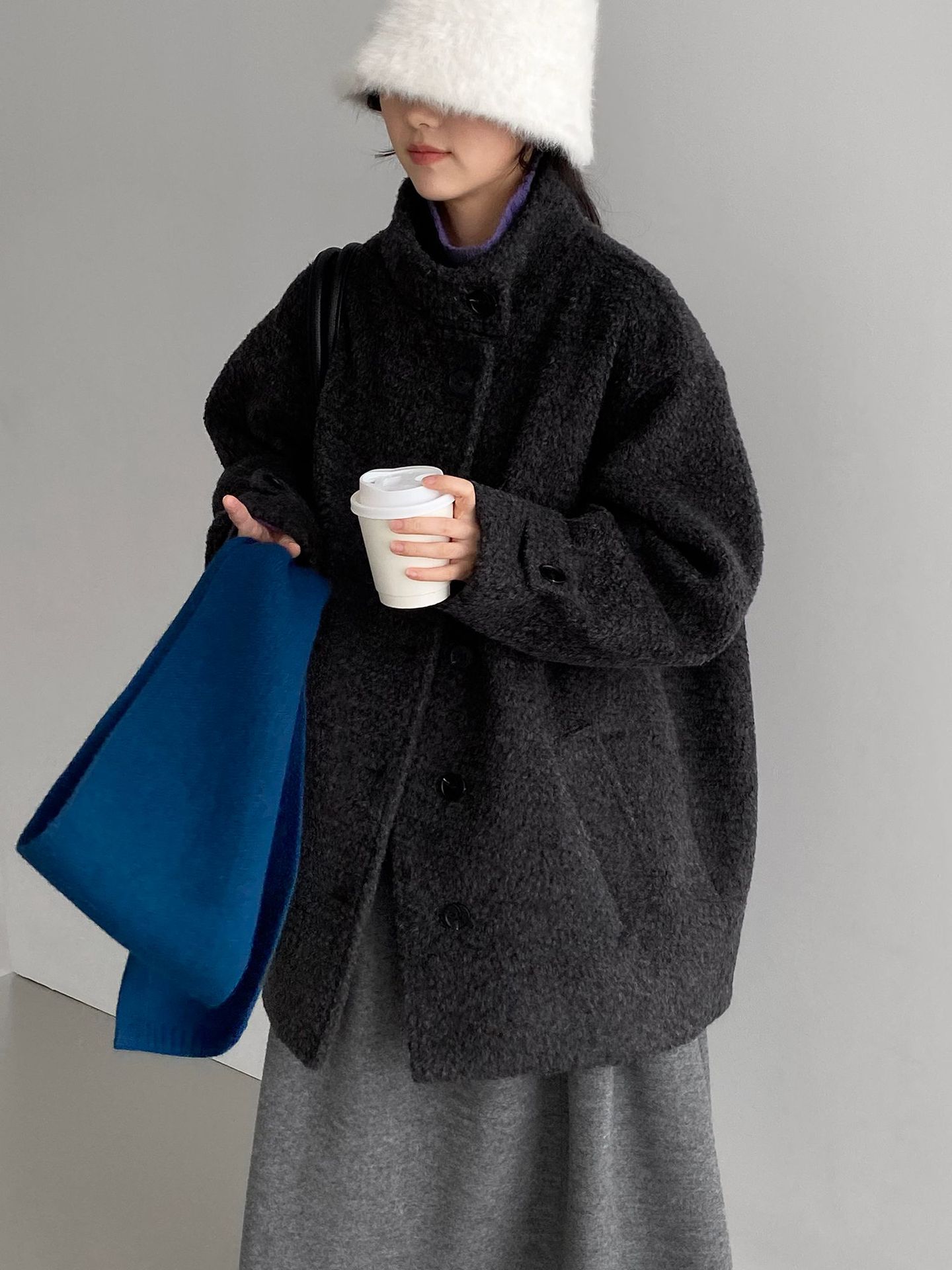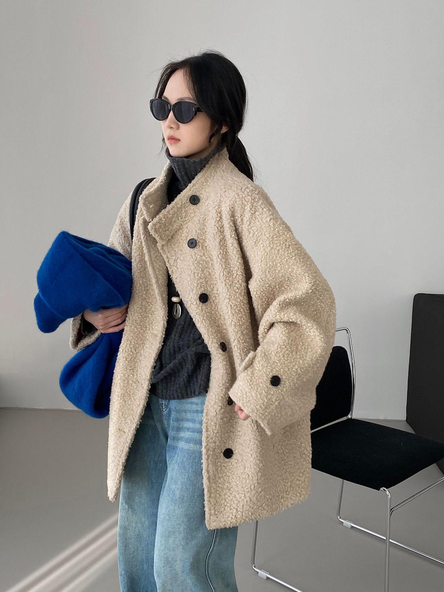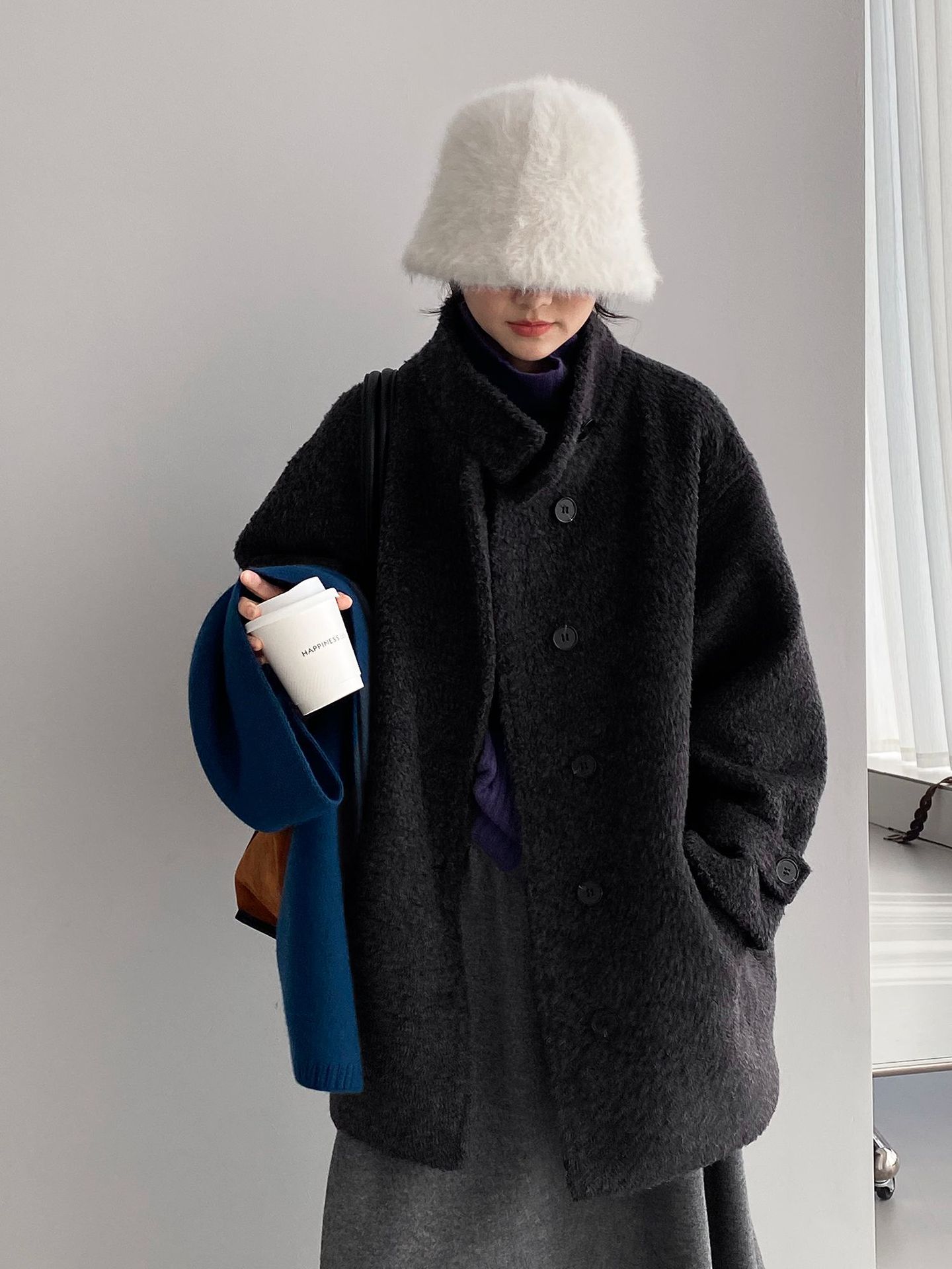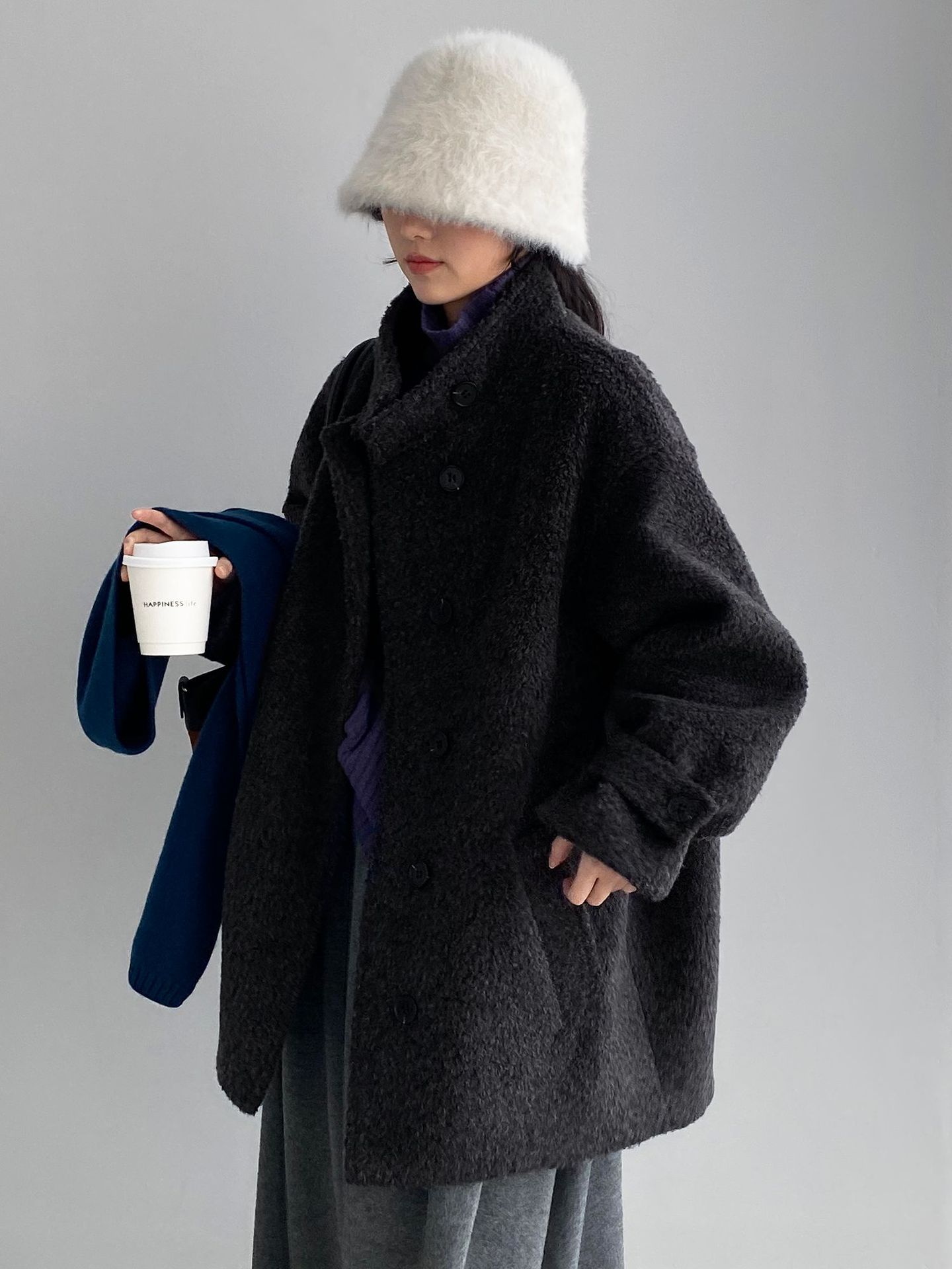 여성용 코트는 고급스럽고 나른한 느낌, 스탠드칼라 모직 코트라 따뜻하고 두툼한 탑