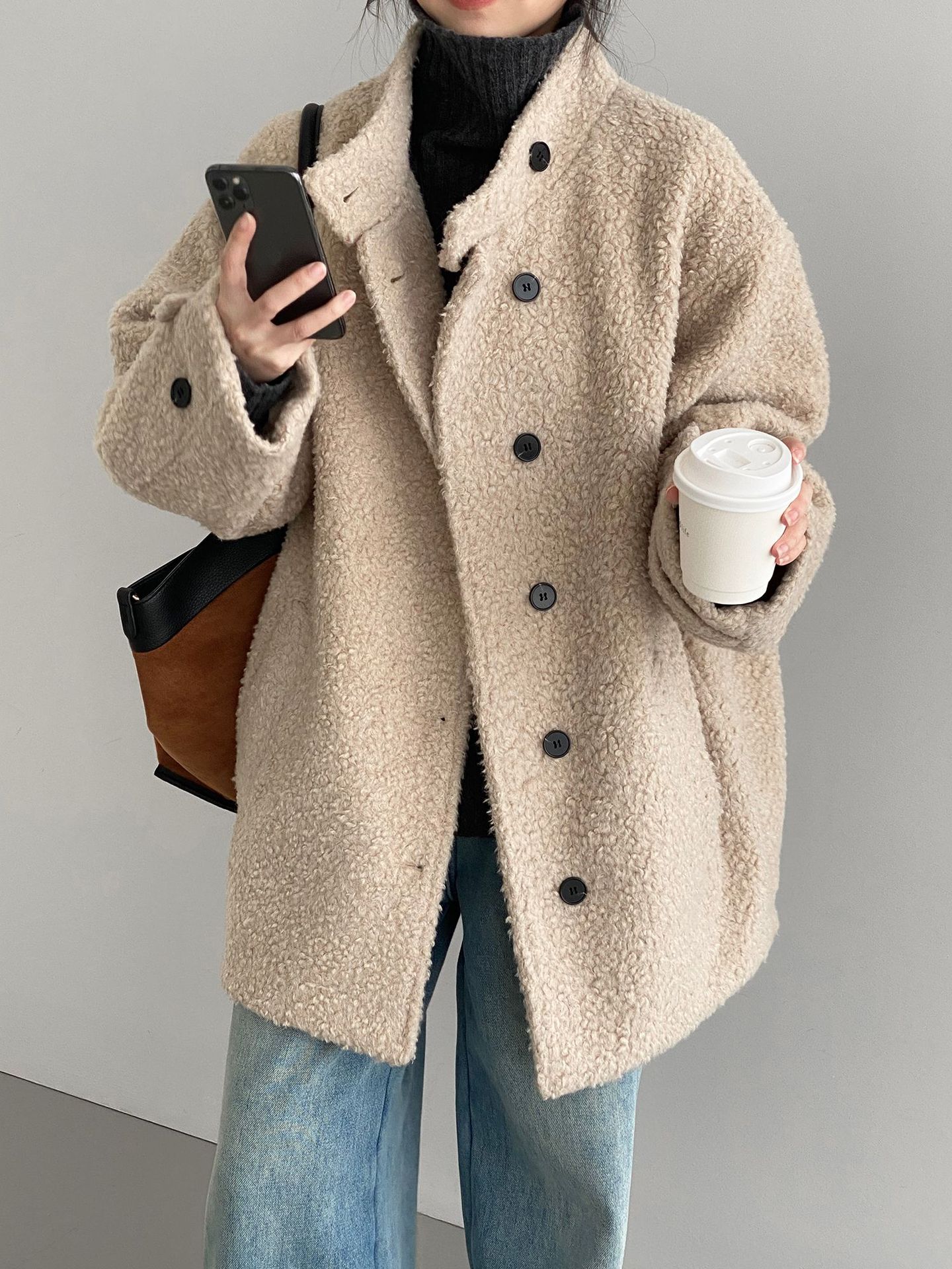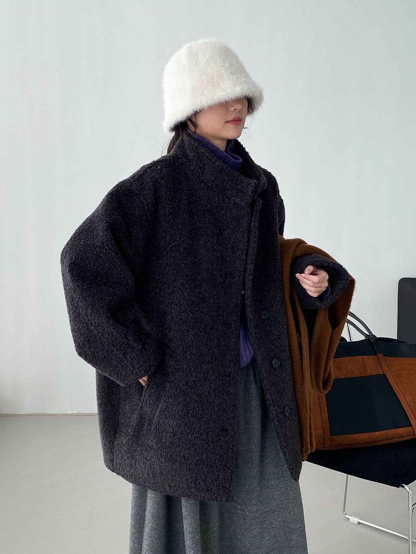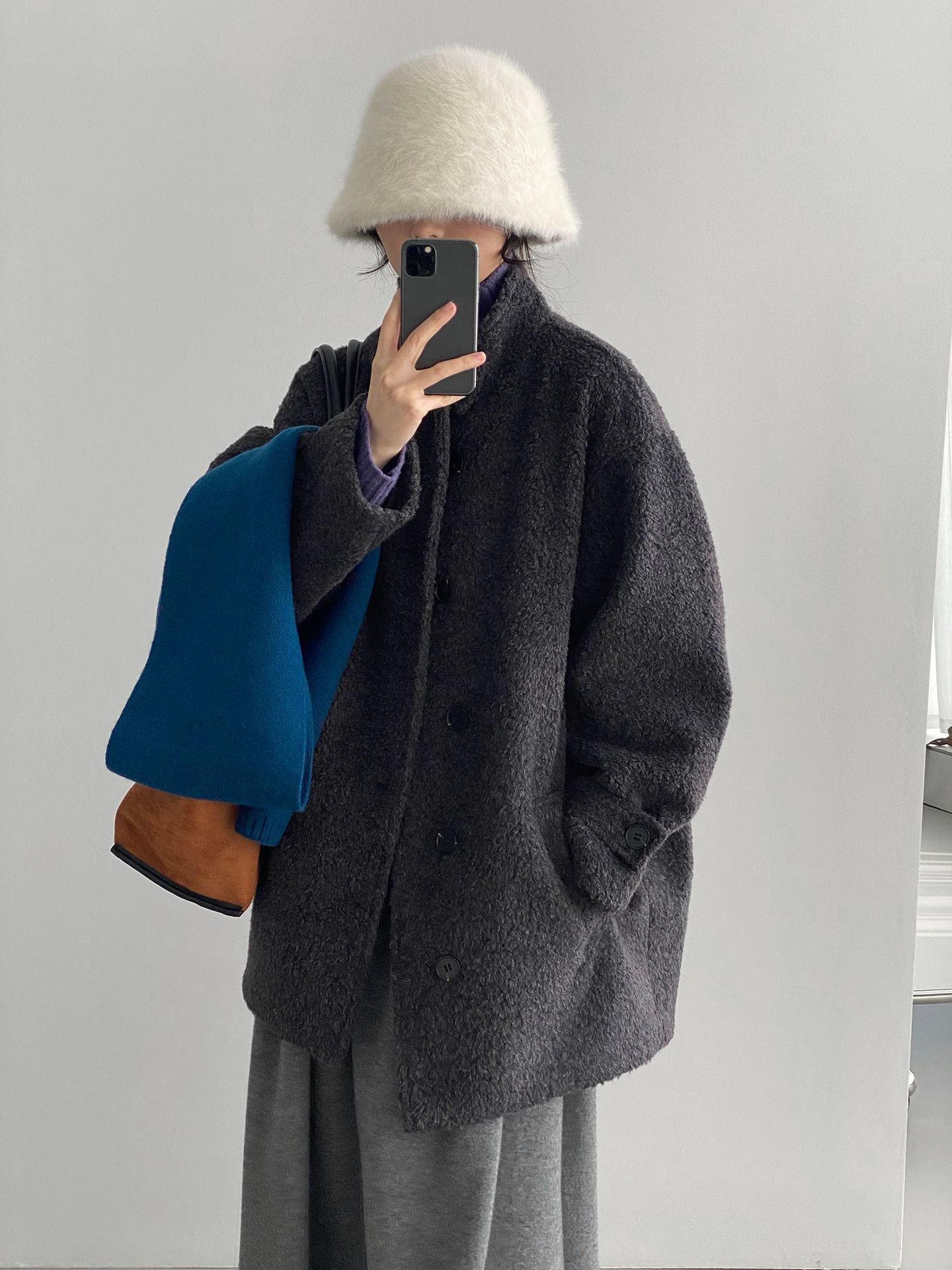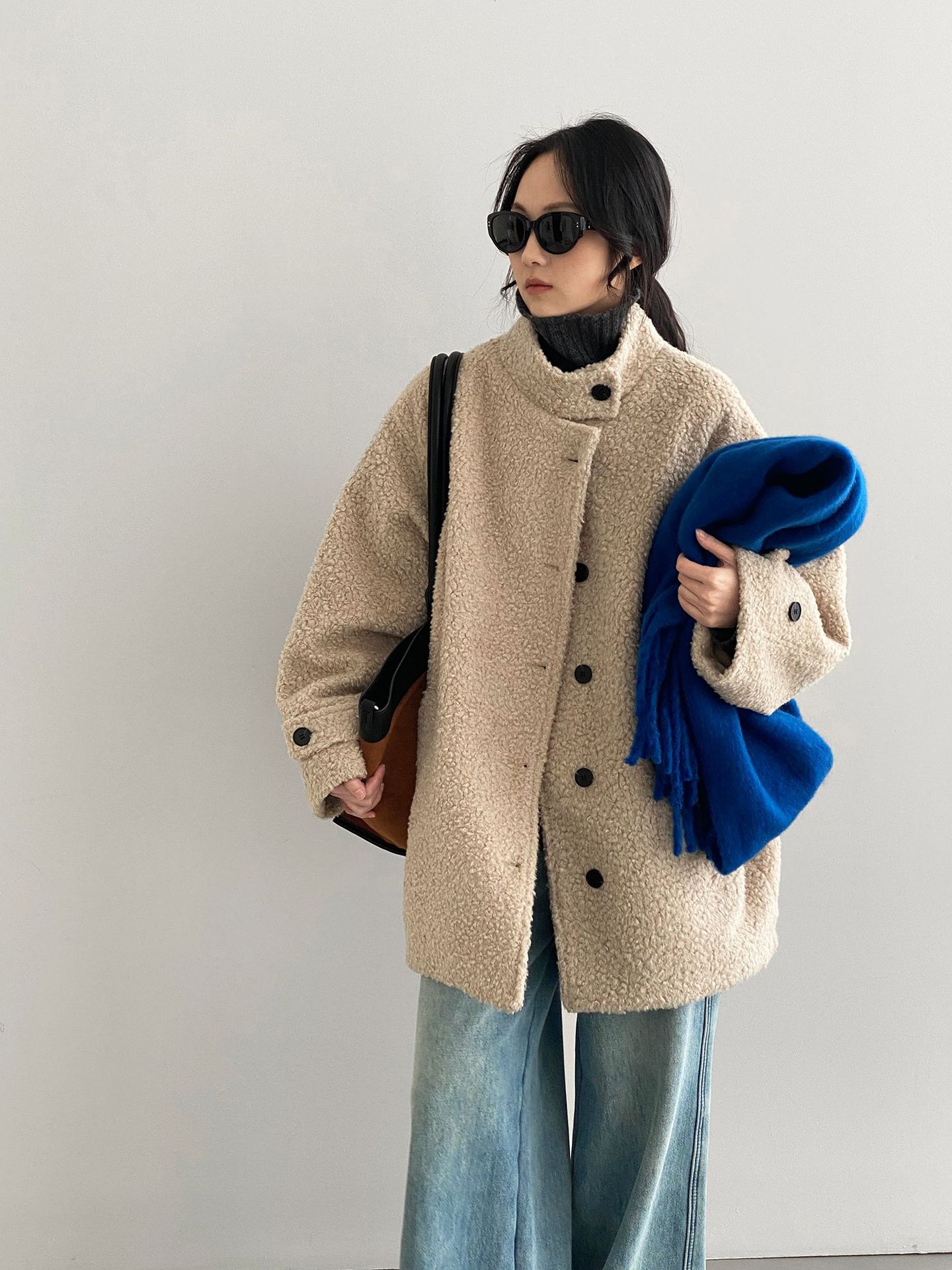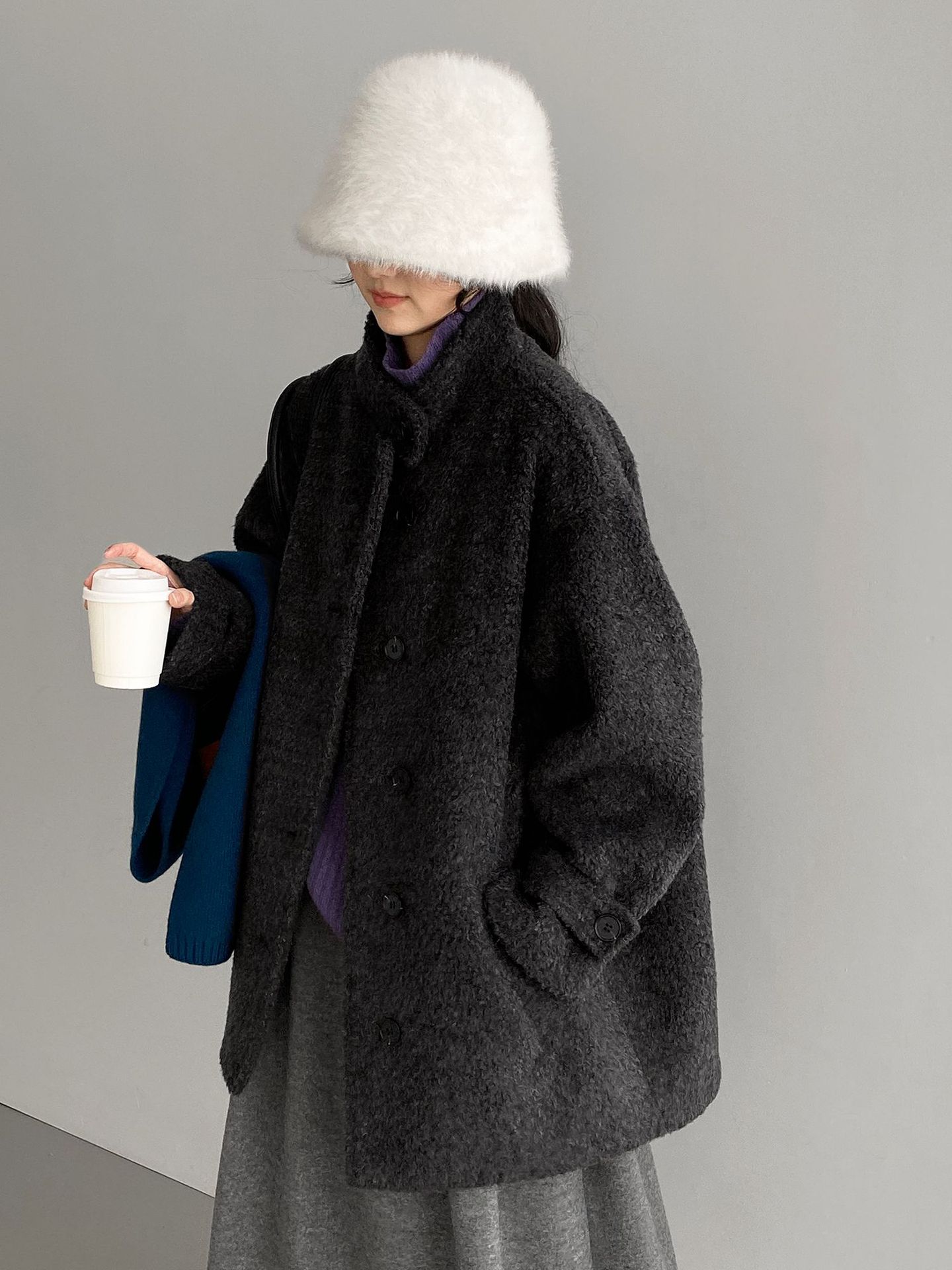 여성용 코트는 고급스럽고 나른한 느낌, 스탠드칼라 모직 코트라 따뜻하고 두툼한 탑