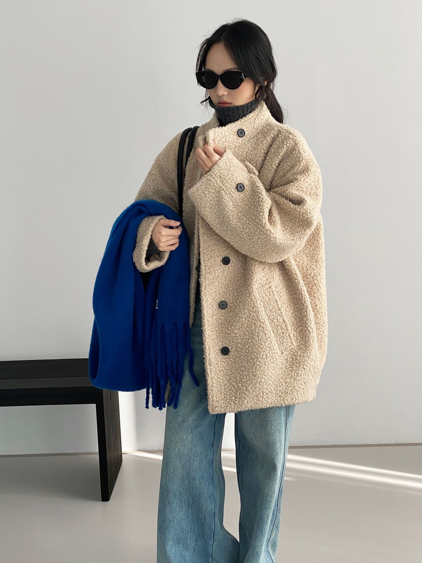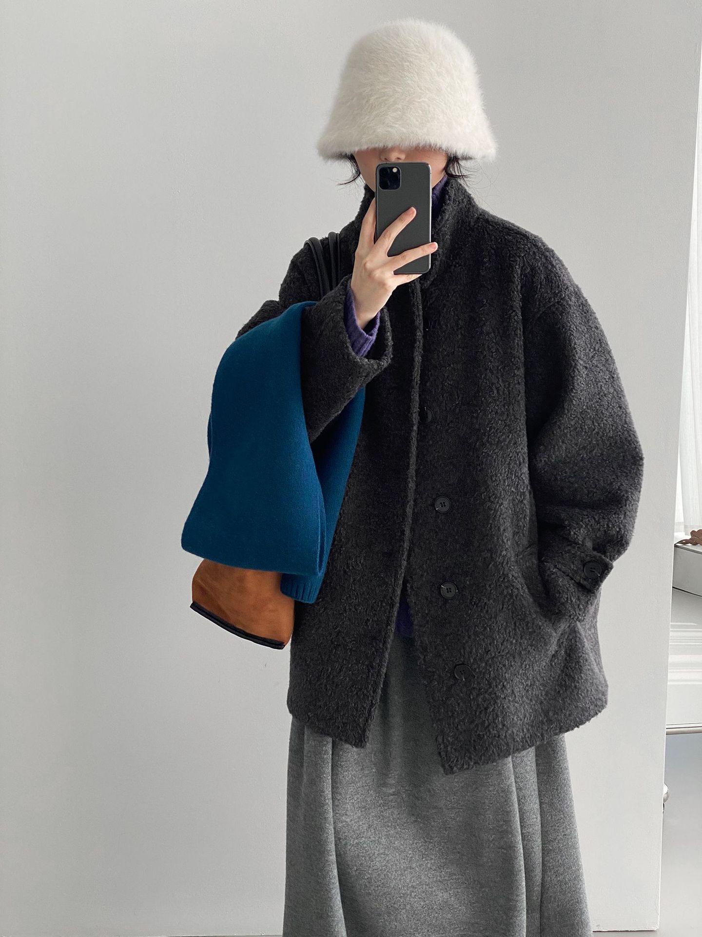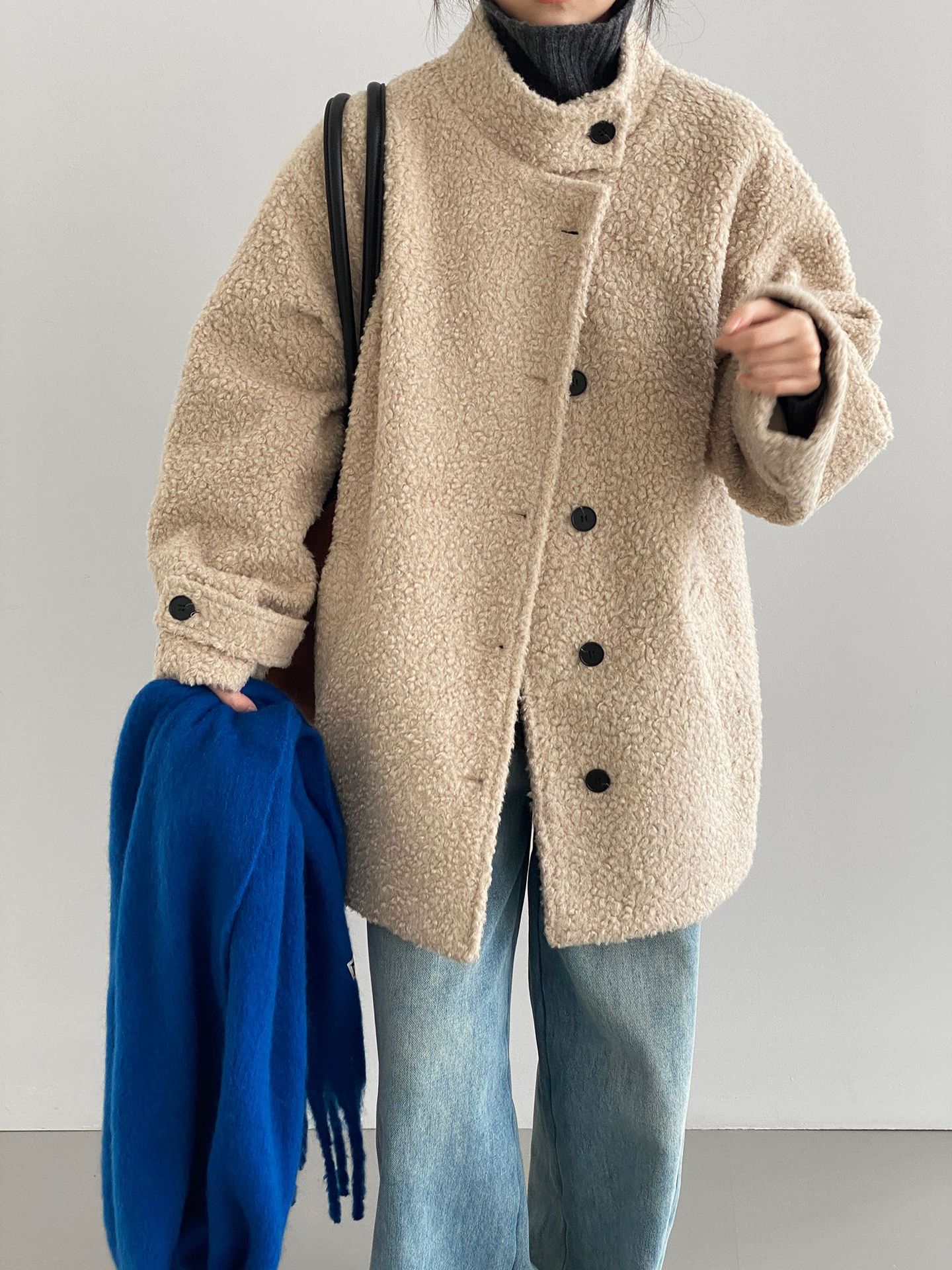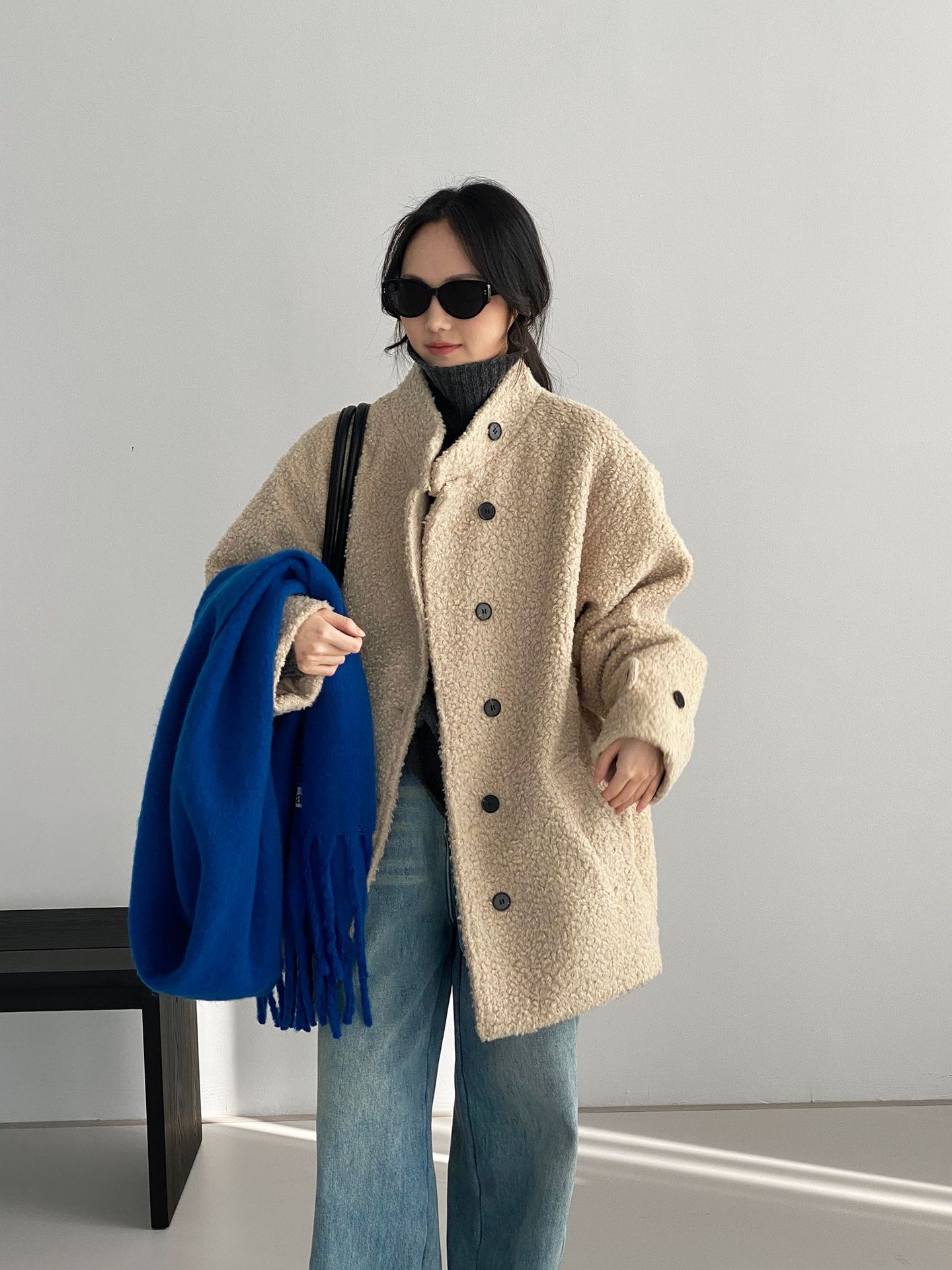 여성용 코트는 고급스럽고 나른한 느낌, 스탠드칼라 모직 코트라 따뜻하고 두툼한 탑