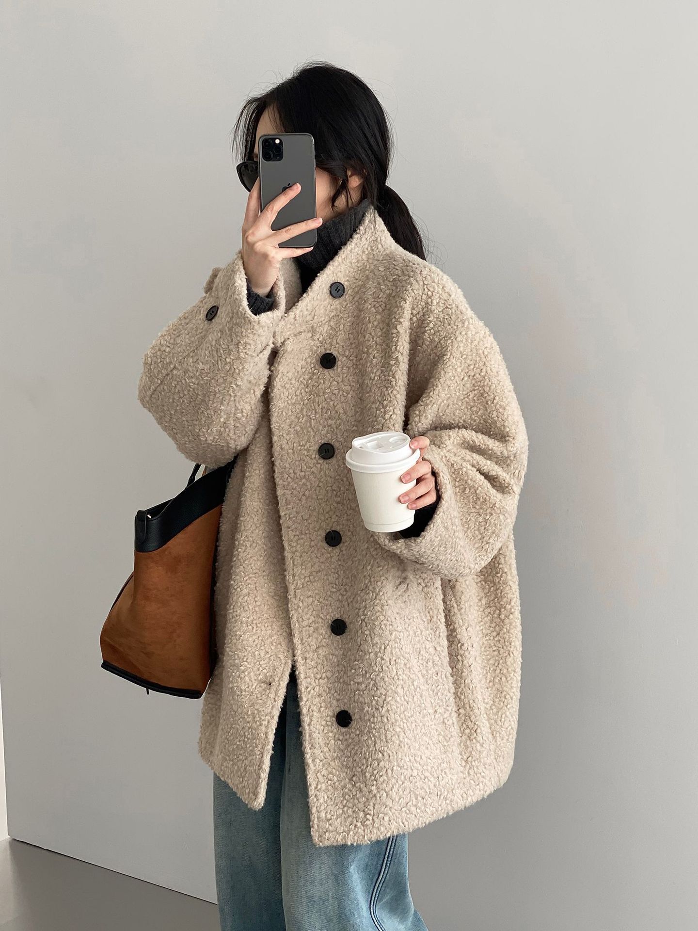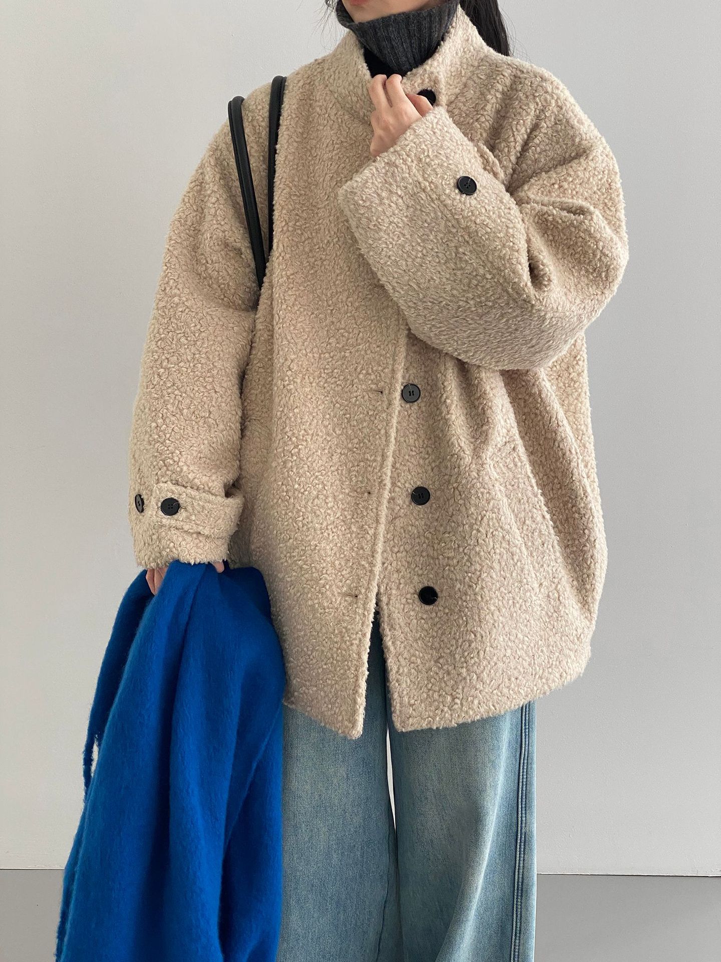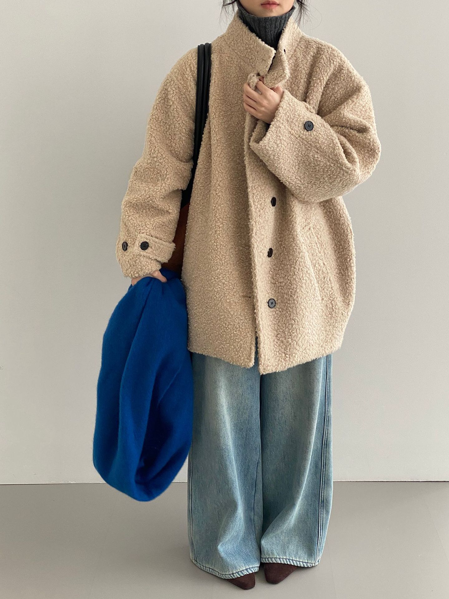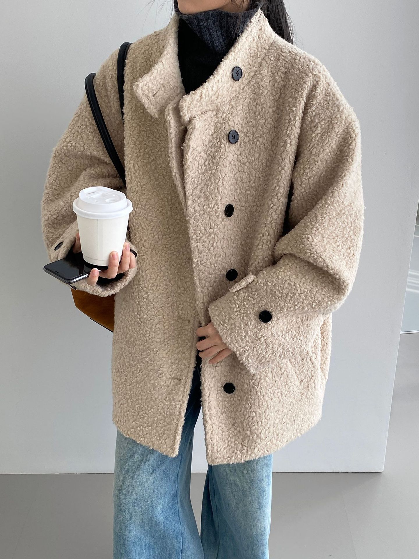 여성용 코트는 고급스럽고 나른한 느낌, 스탠드칼라 모직 코트라 따뜻하고 두툼한 탑
