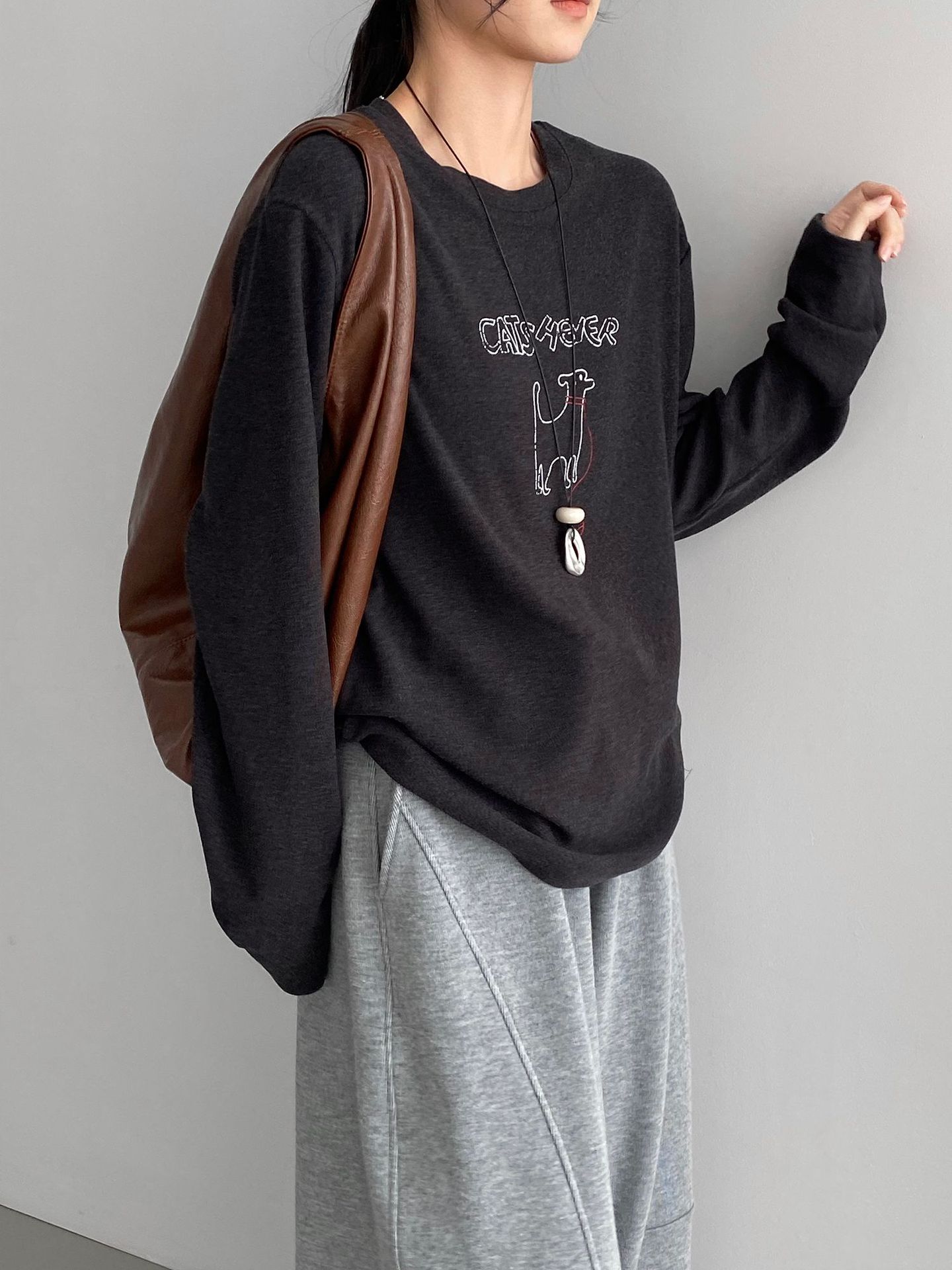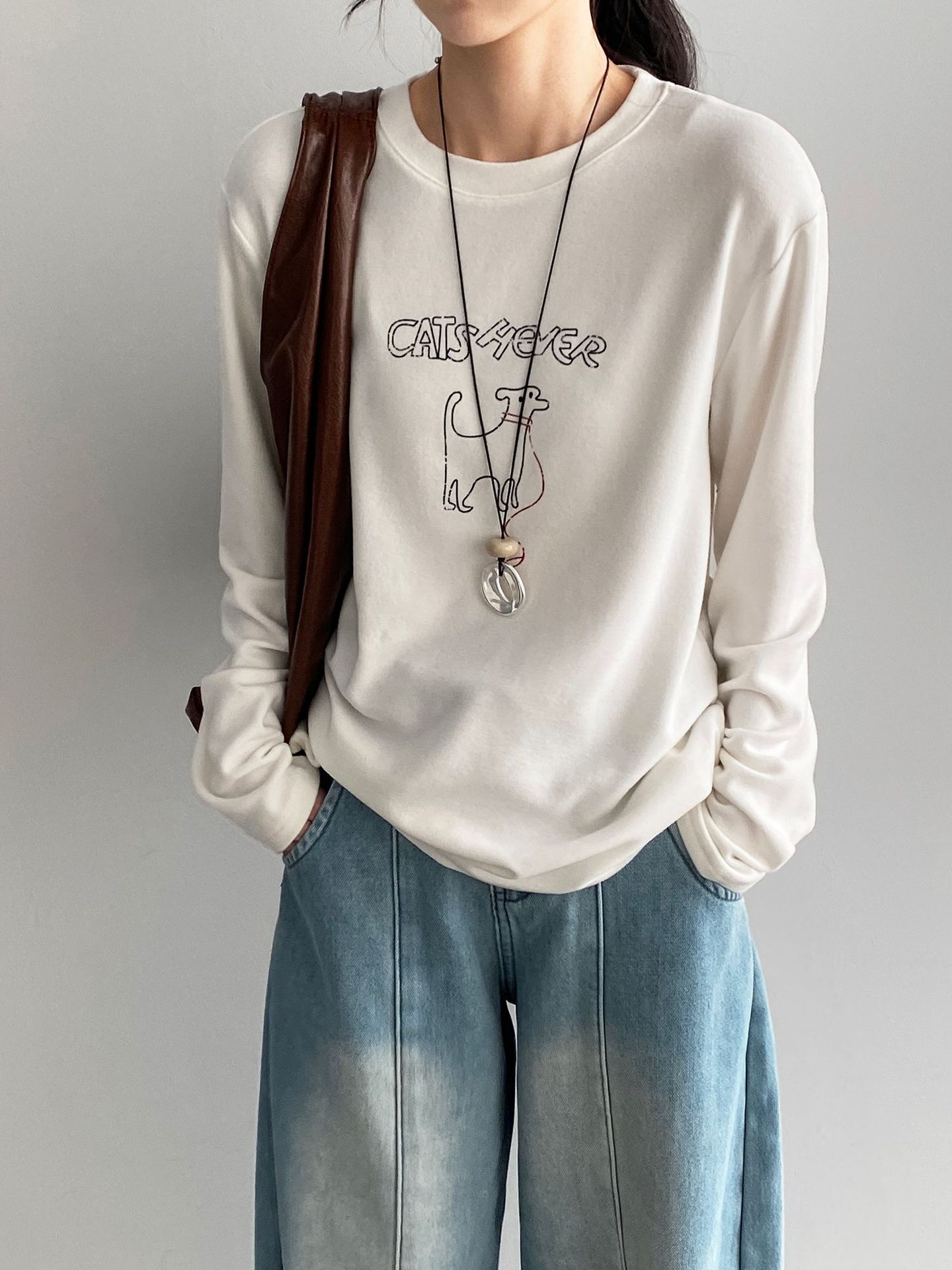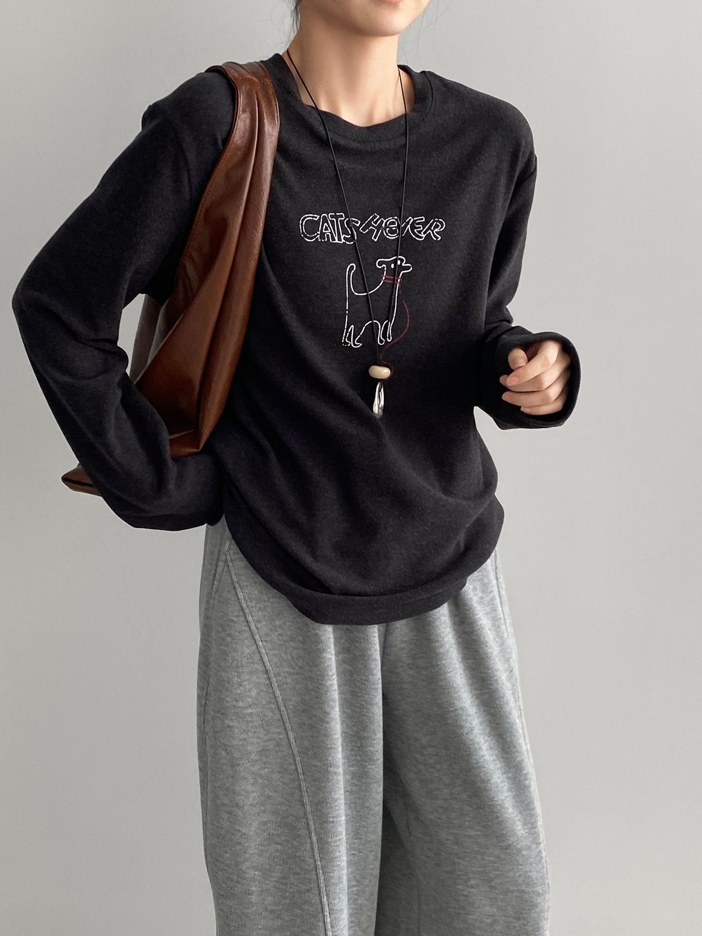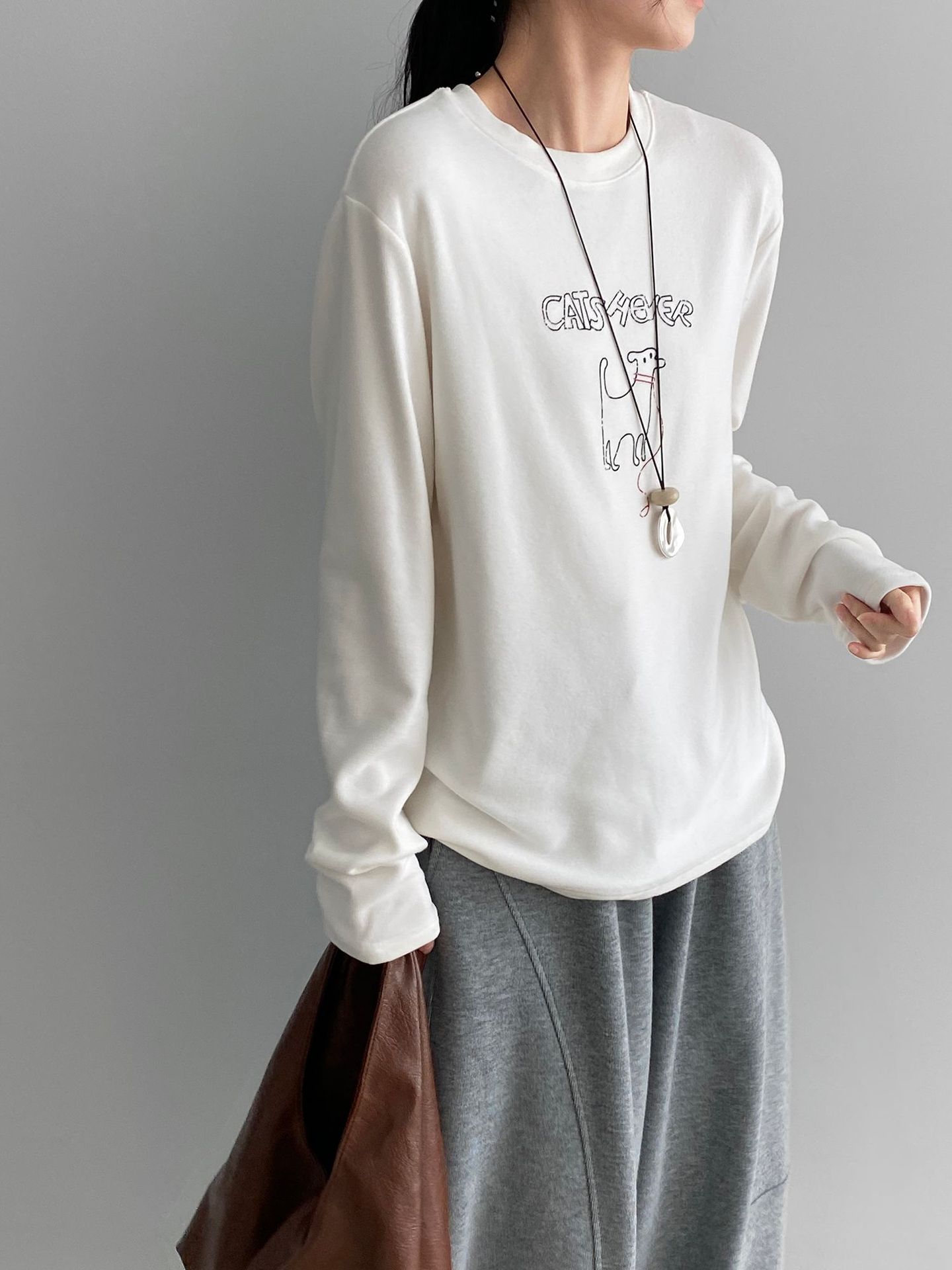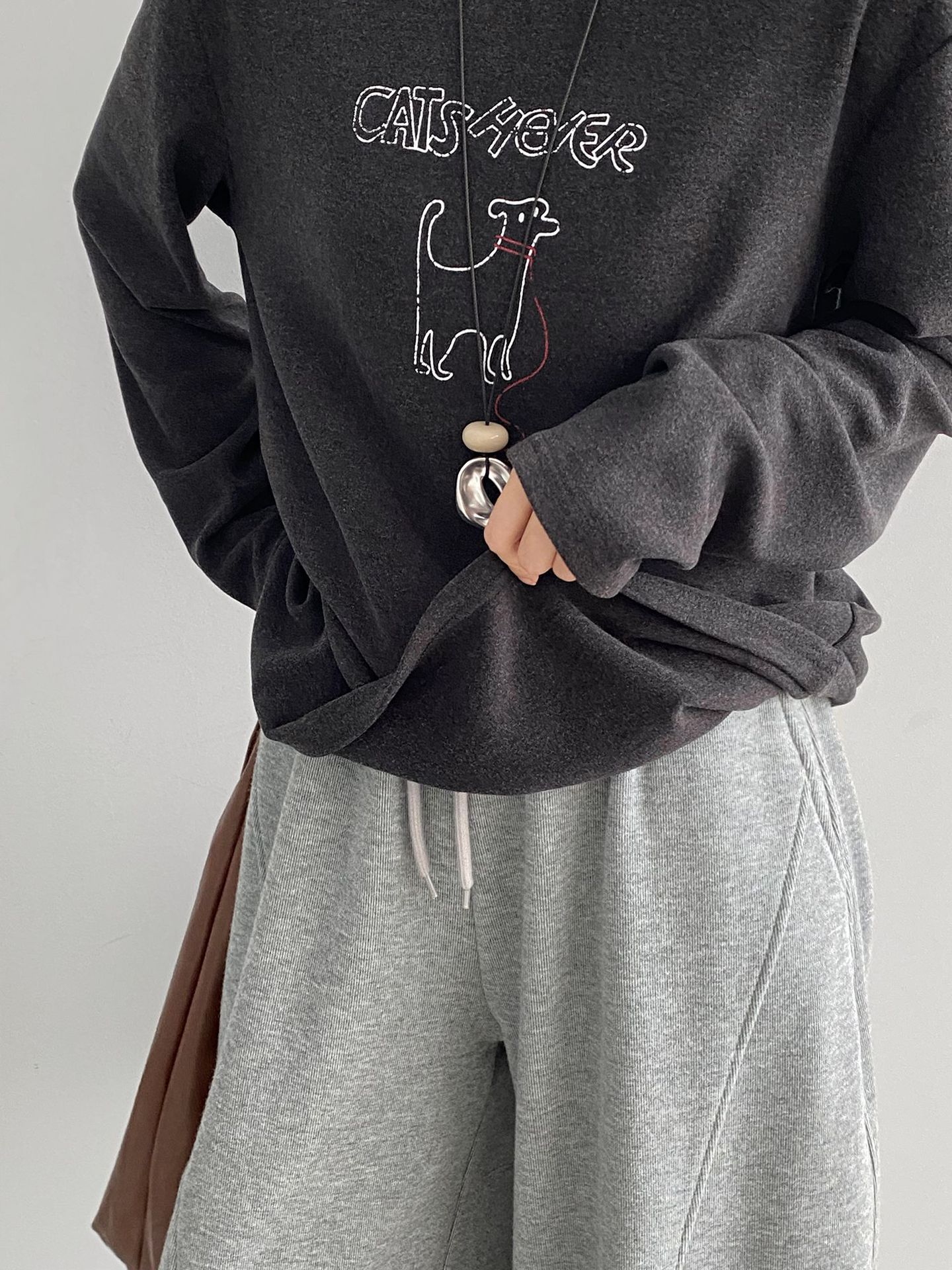 한청 감령 캐릭터 강아지 퍼머 기모 티셔츠 여성 라운드 프린팅은 긴팔 이너로 코디하기 좋습니다