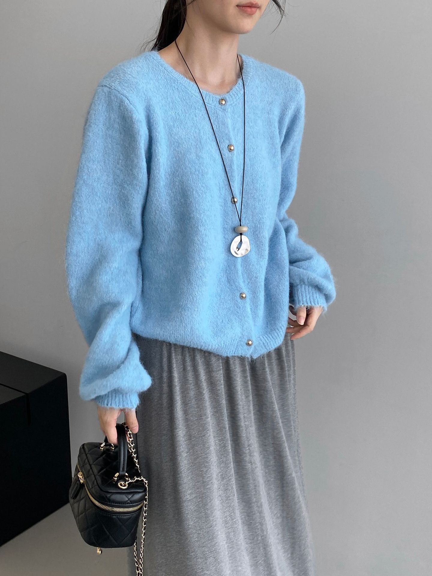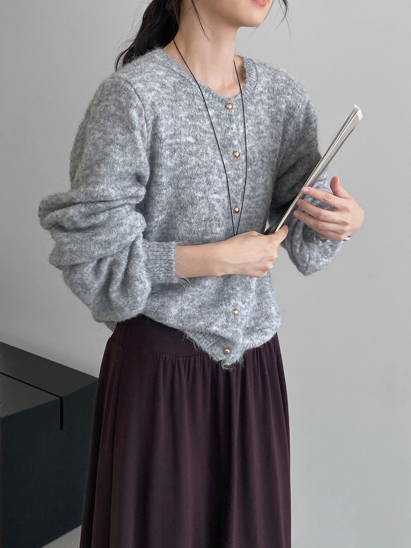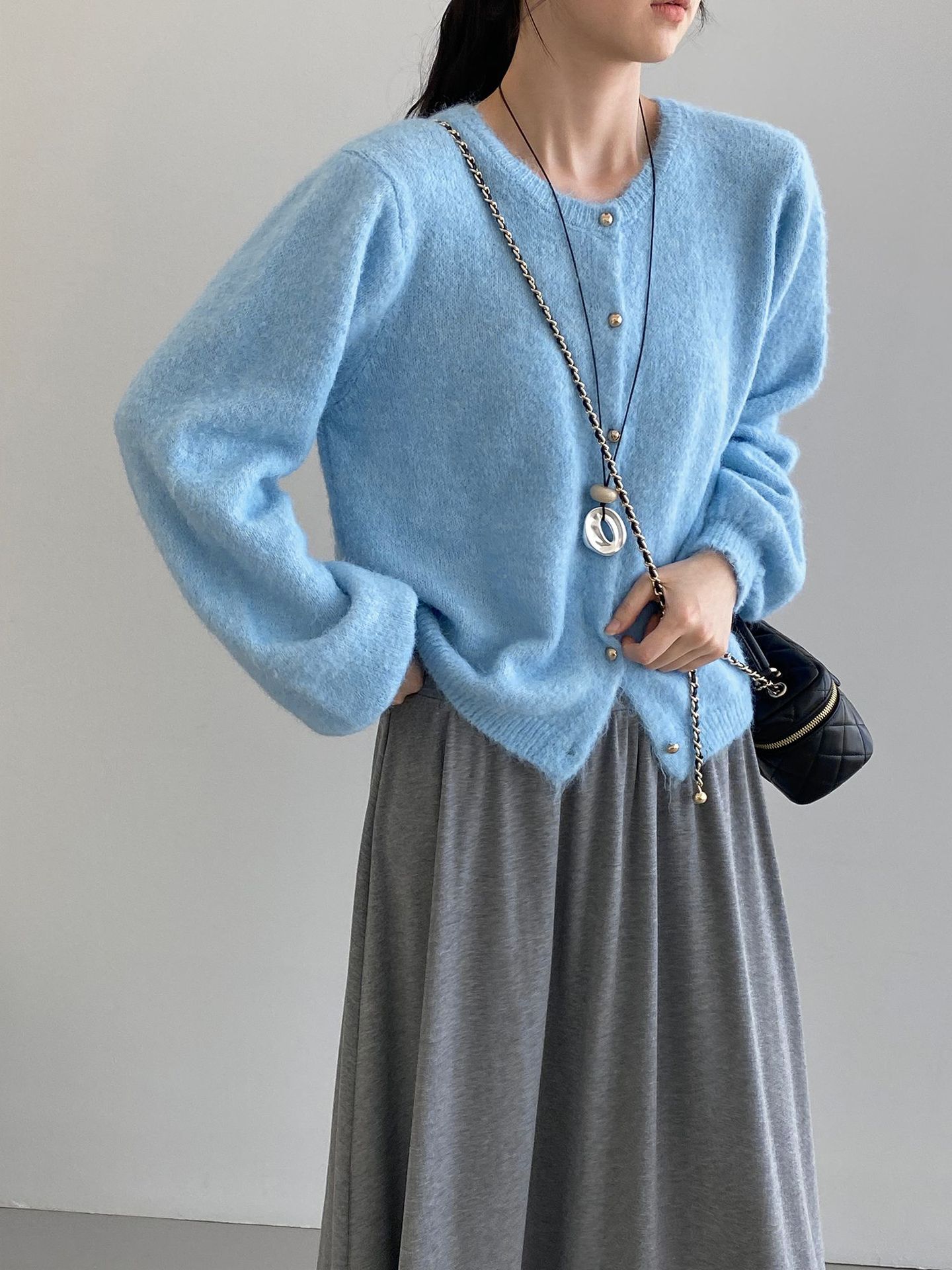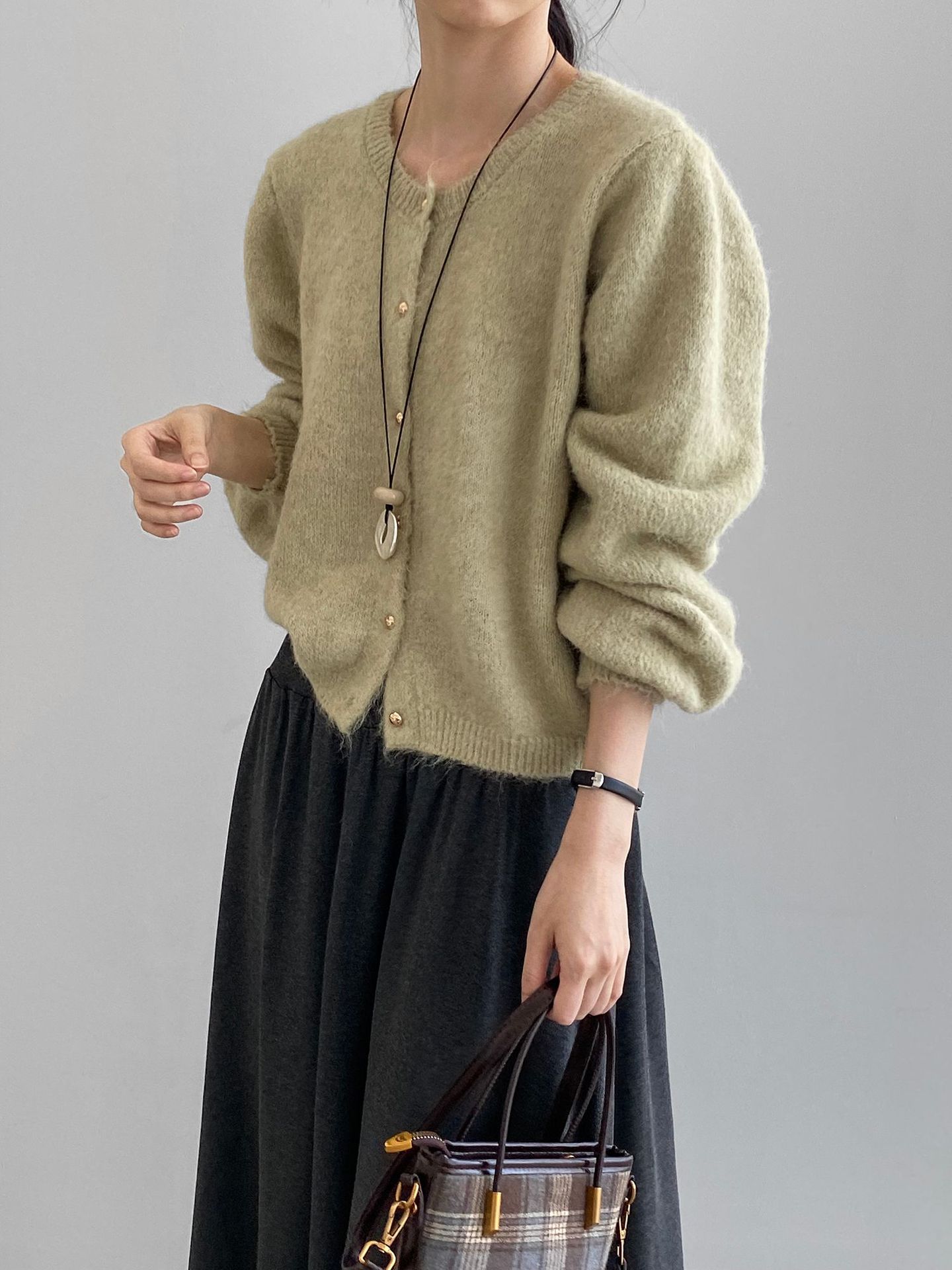 10 울 부드러운 초롱 소매 니트 여성 라운드 칼라 단추 찰밥 스웨터