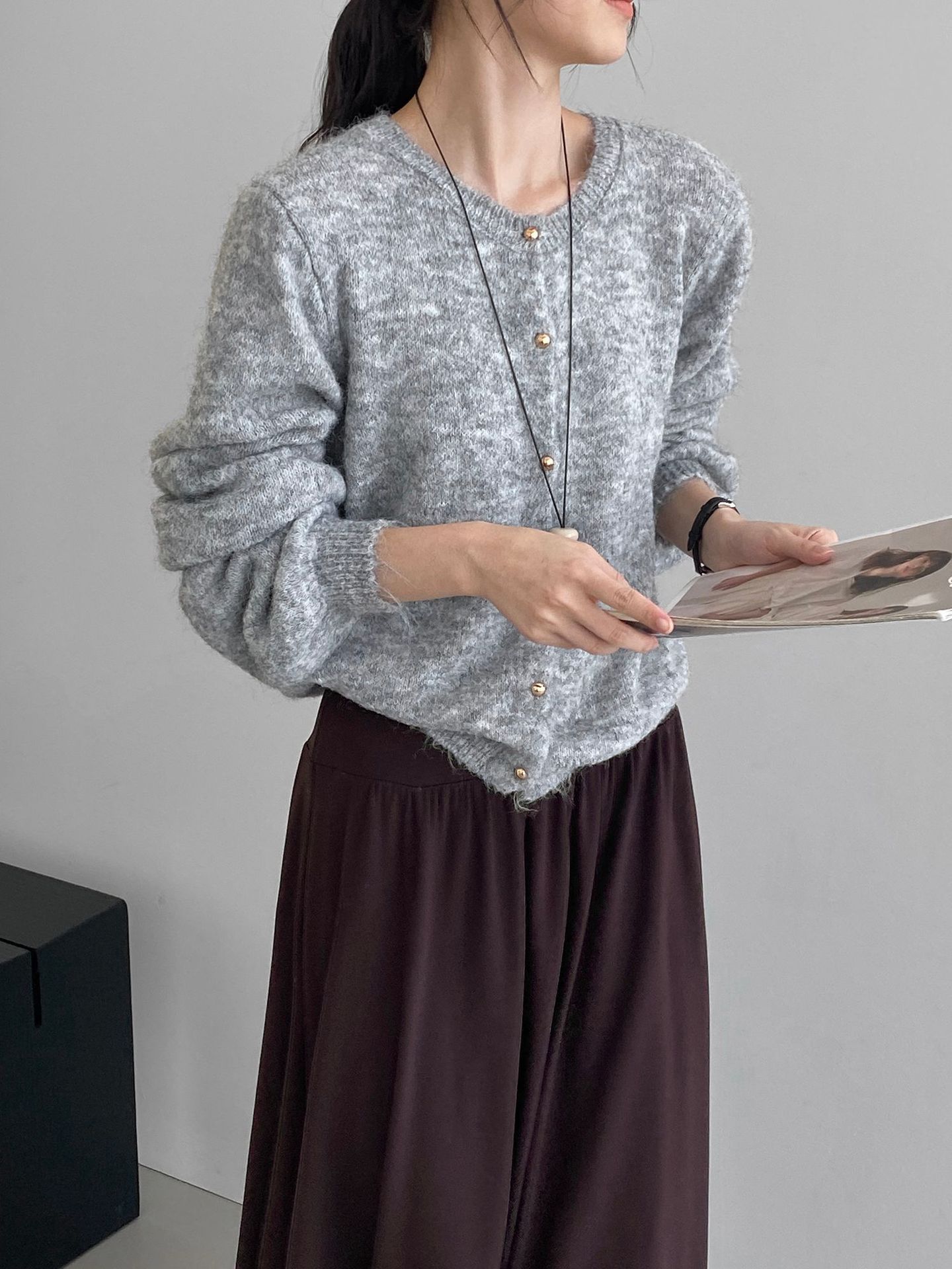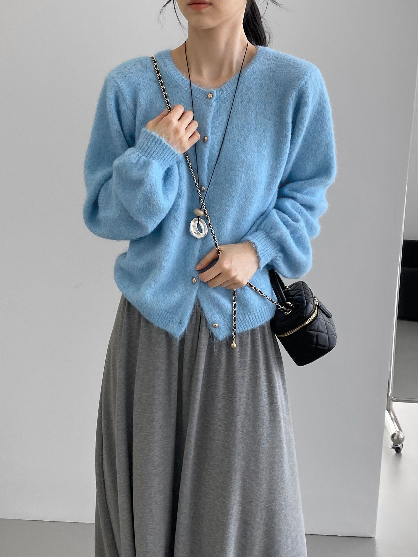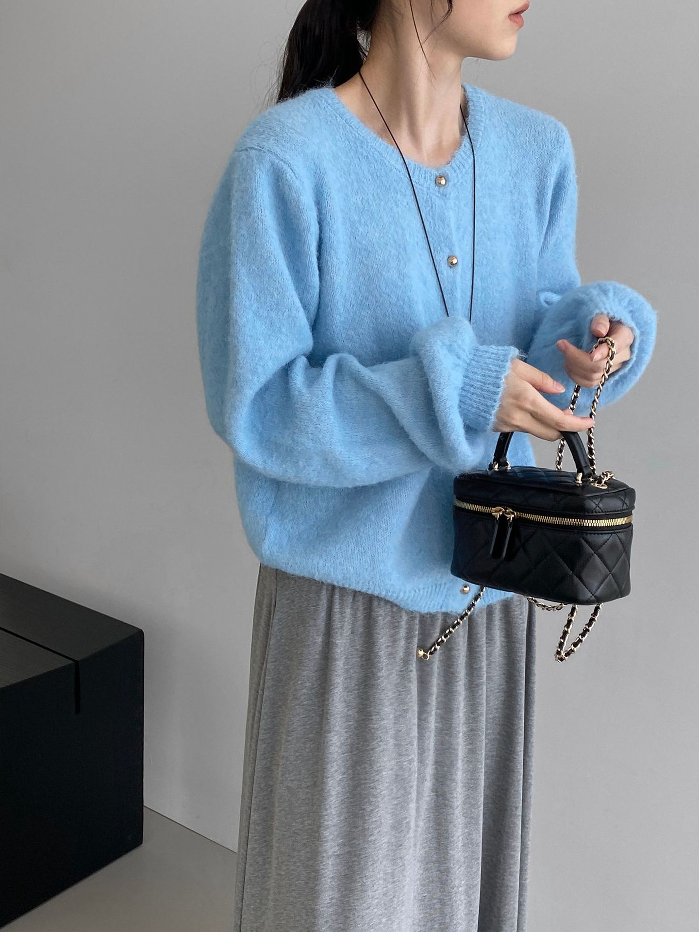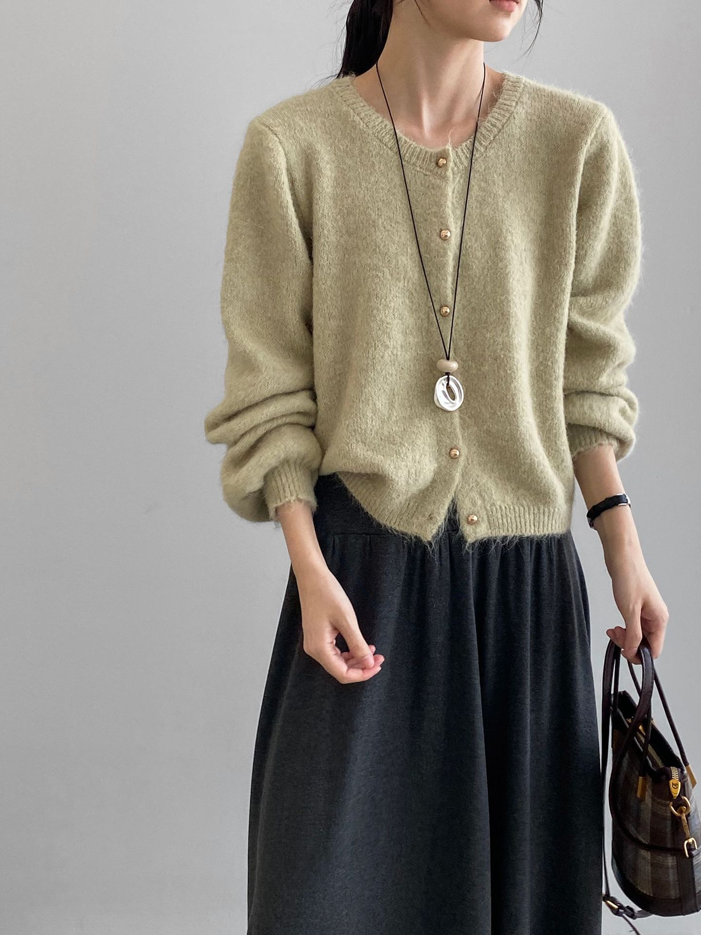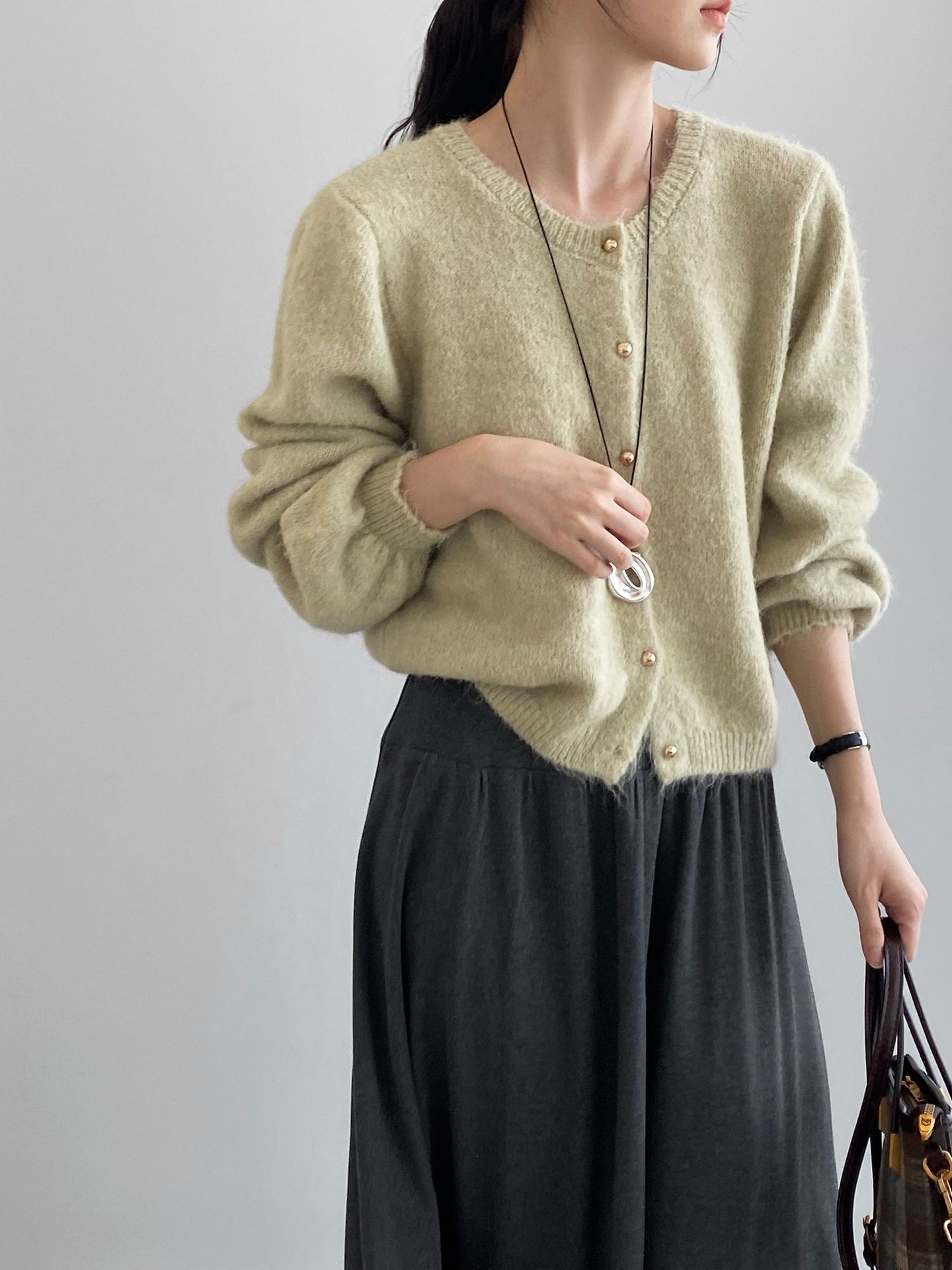 10 울 부드러운 초롱 소매 니트 여성 라운드 칼라 단추 찰밥 스웨터