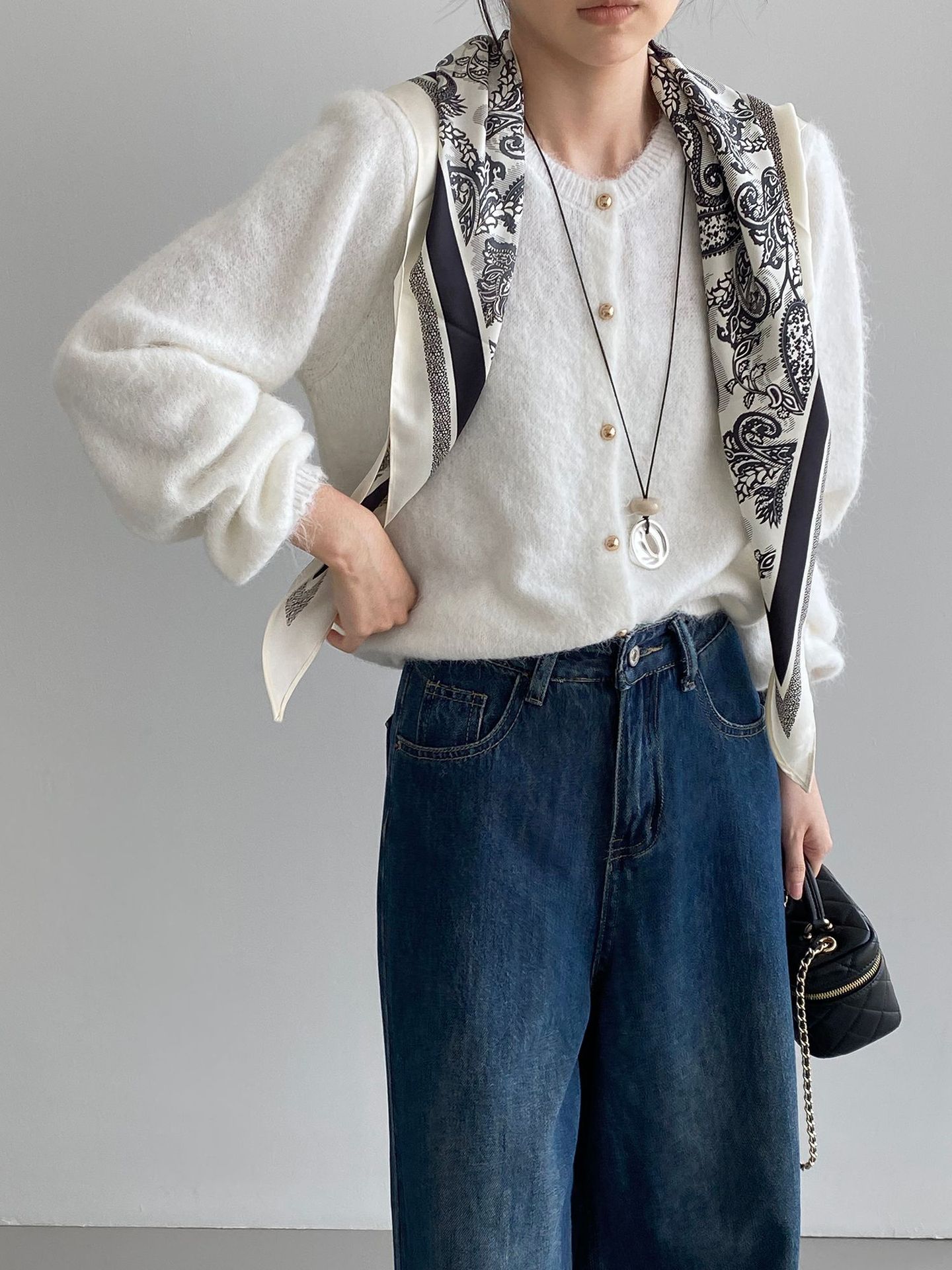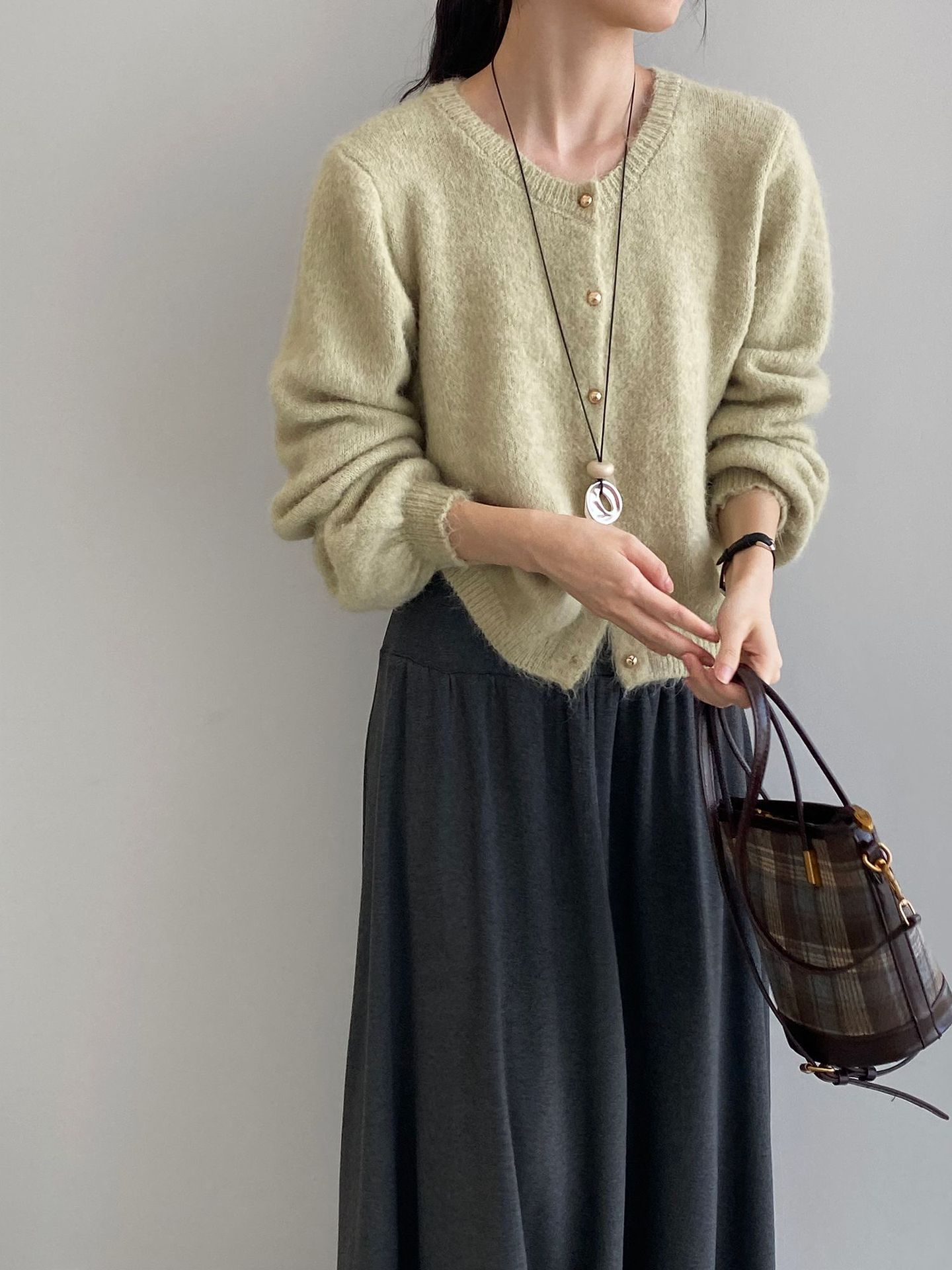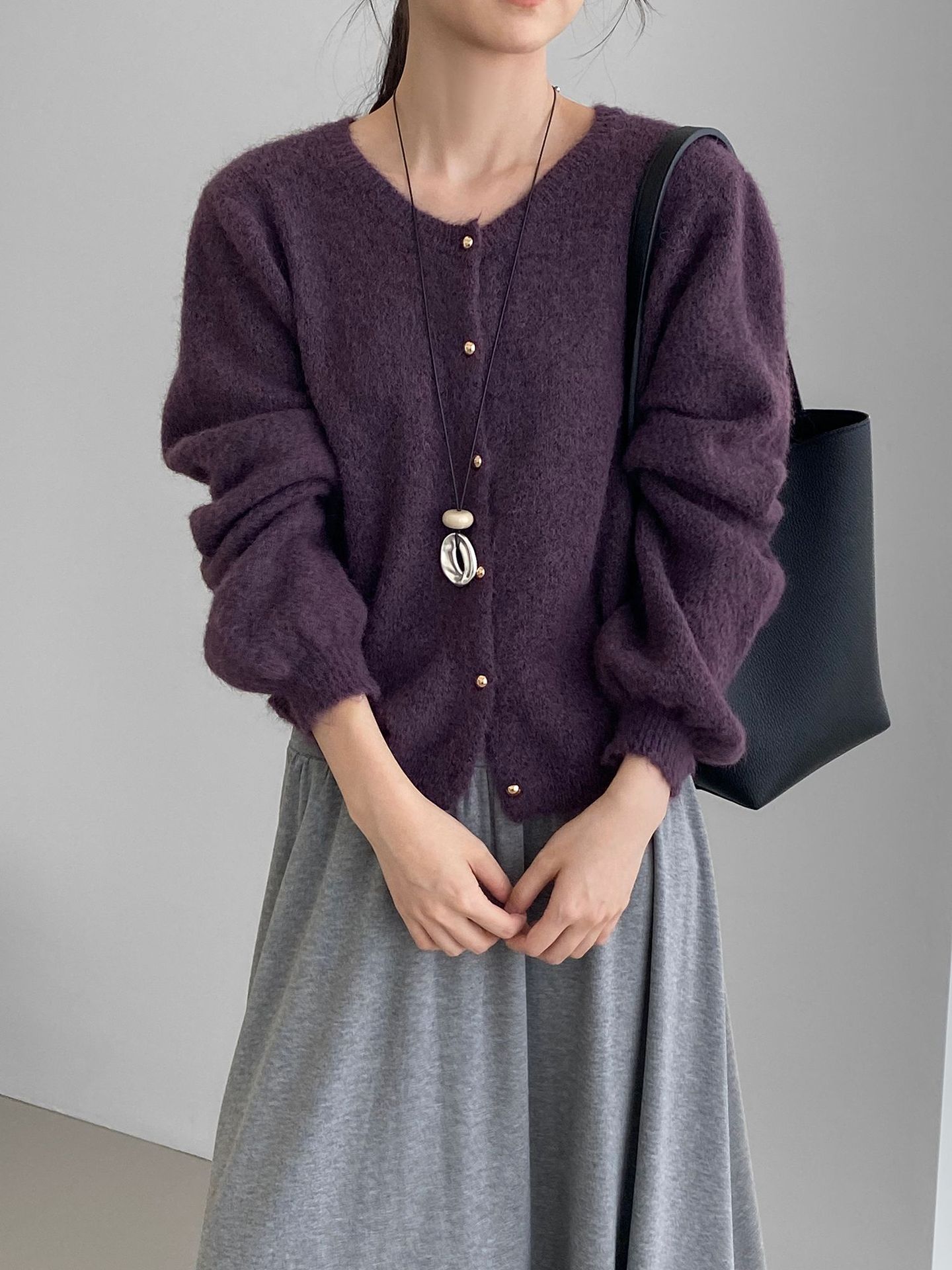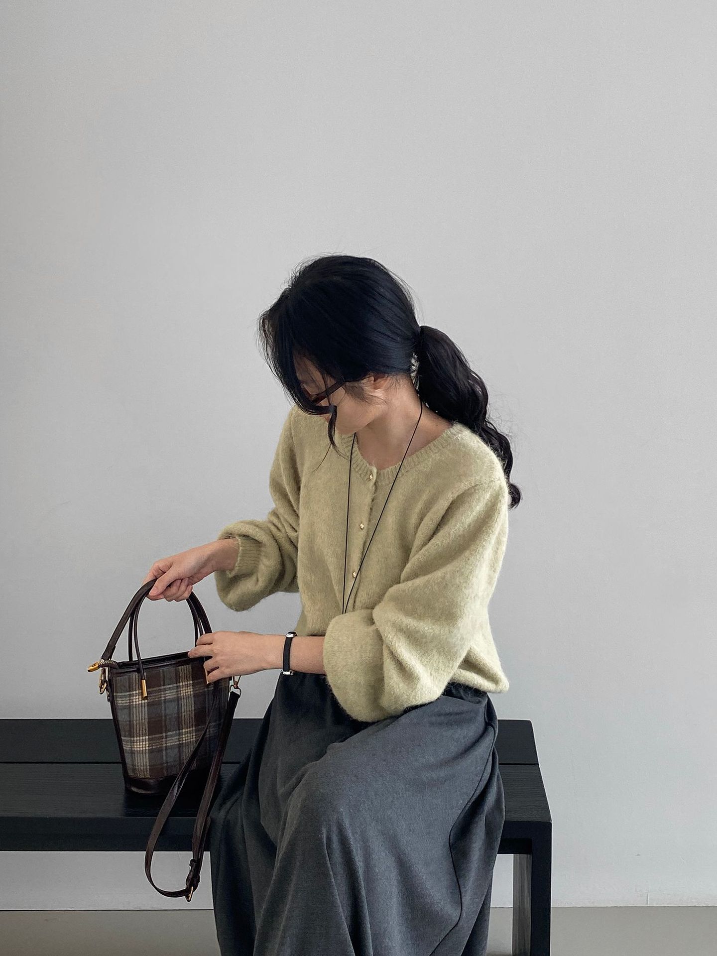 10 울 부드러운 초롱 소매 니트 여성 라운드 칼라 단추 찰밥 스웨터