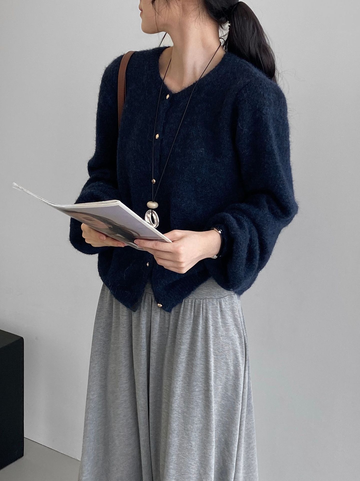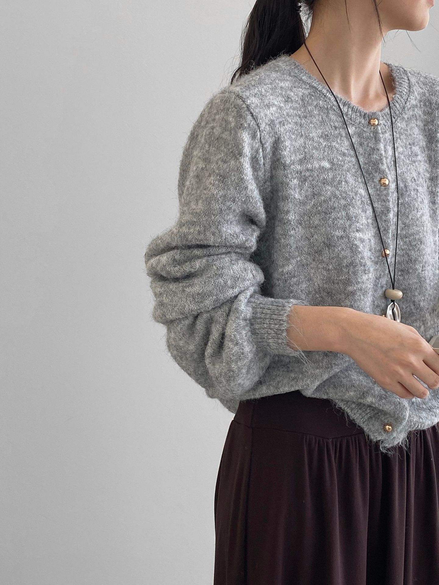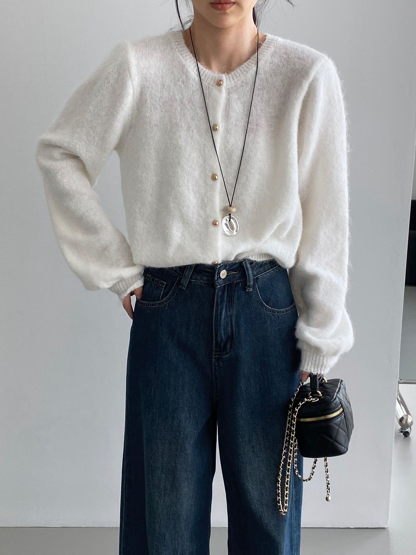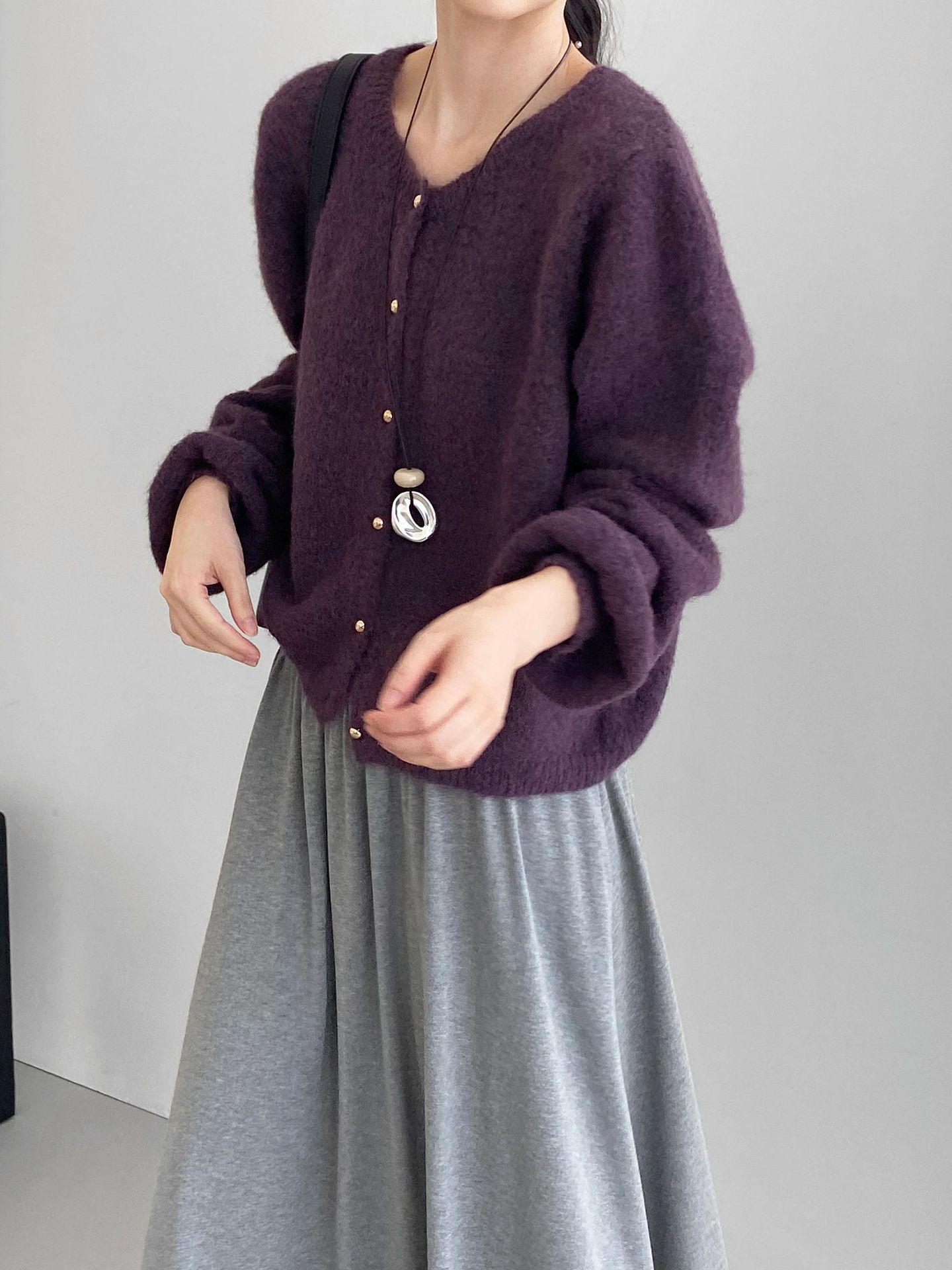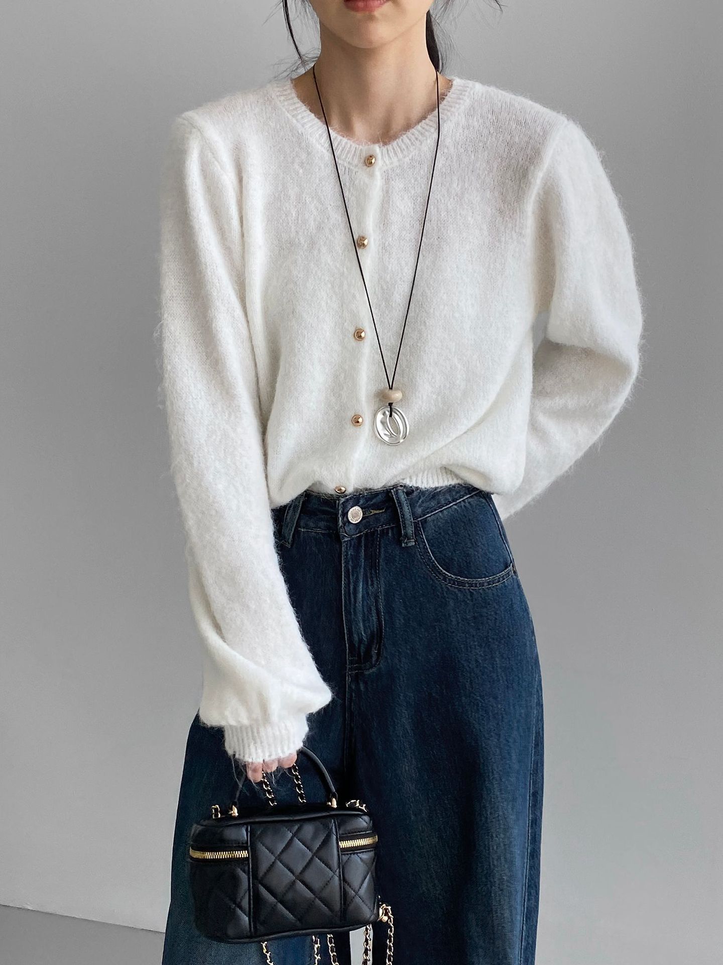 10 울 부드러운 초롱 소매 니트 여성 라운드 칼라 단추 찰밥 스웨터