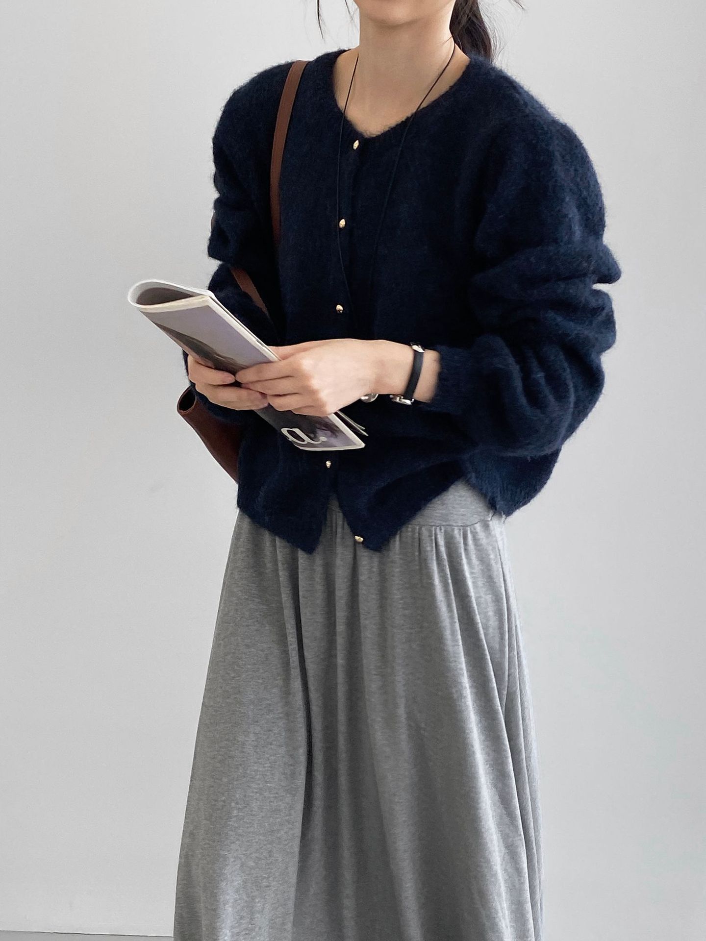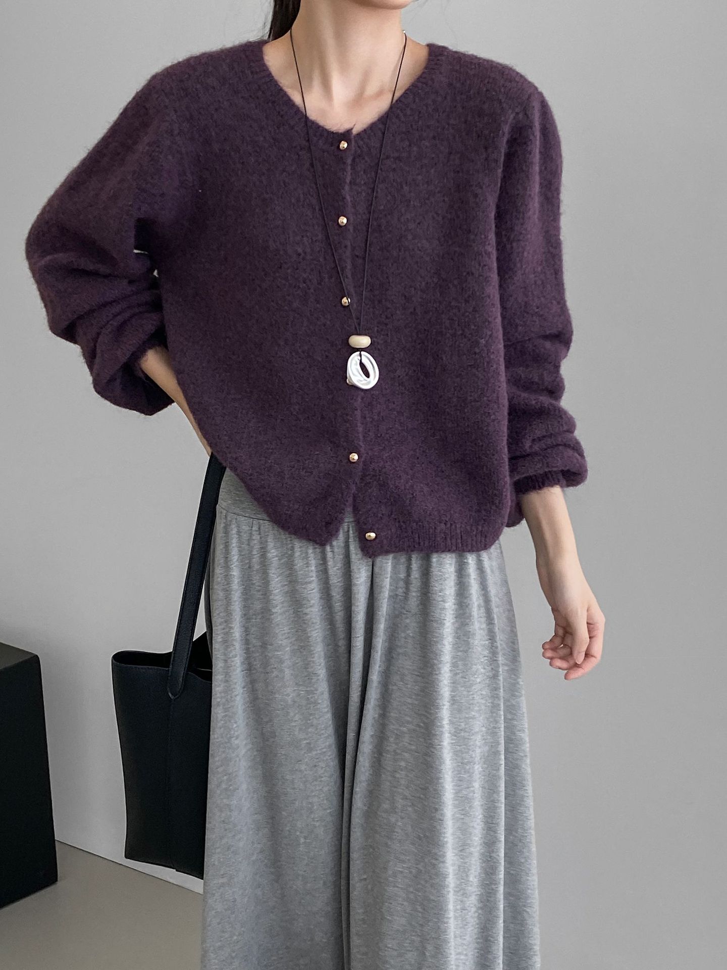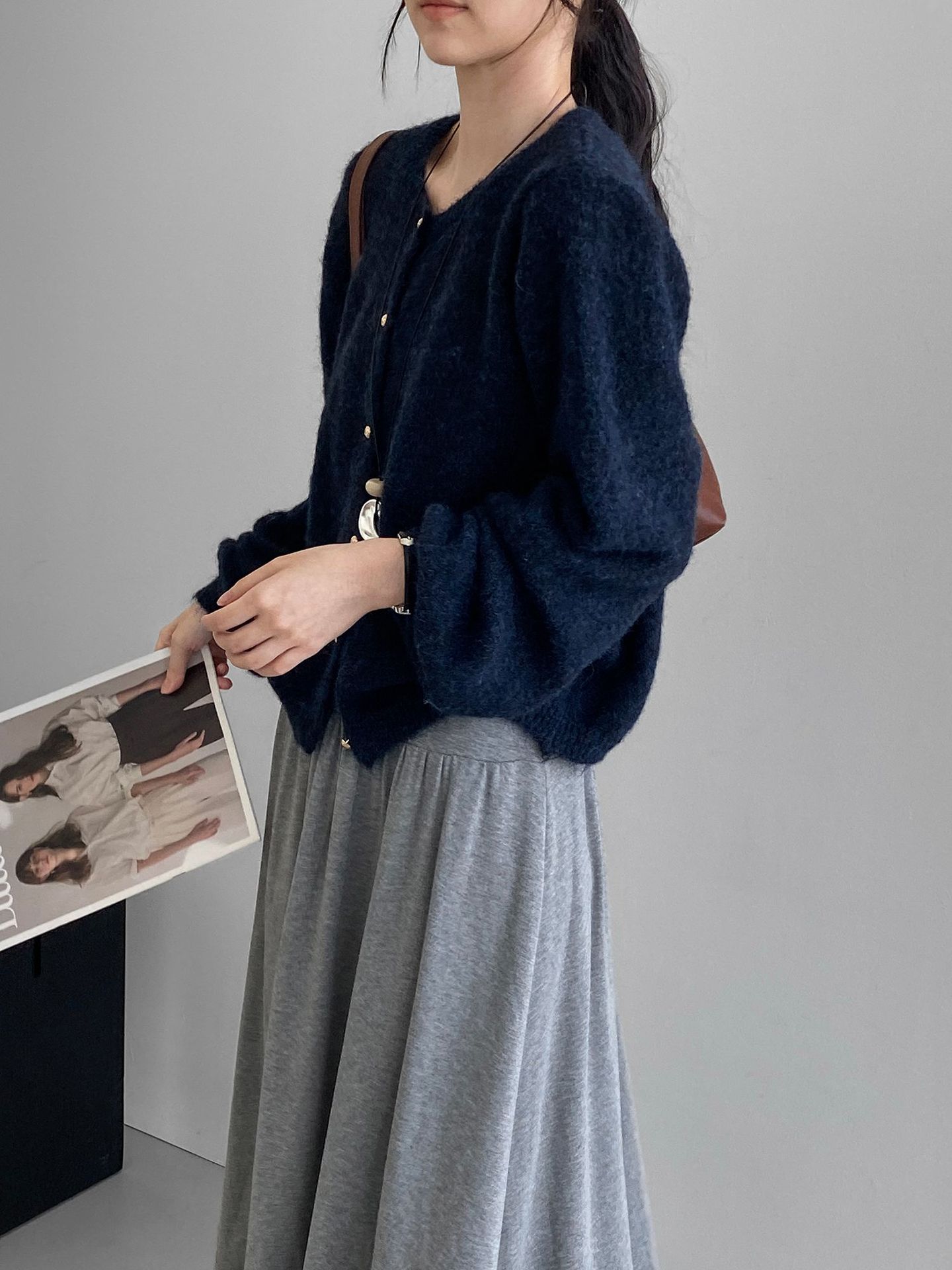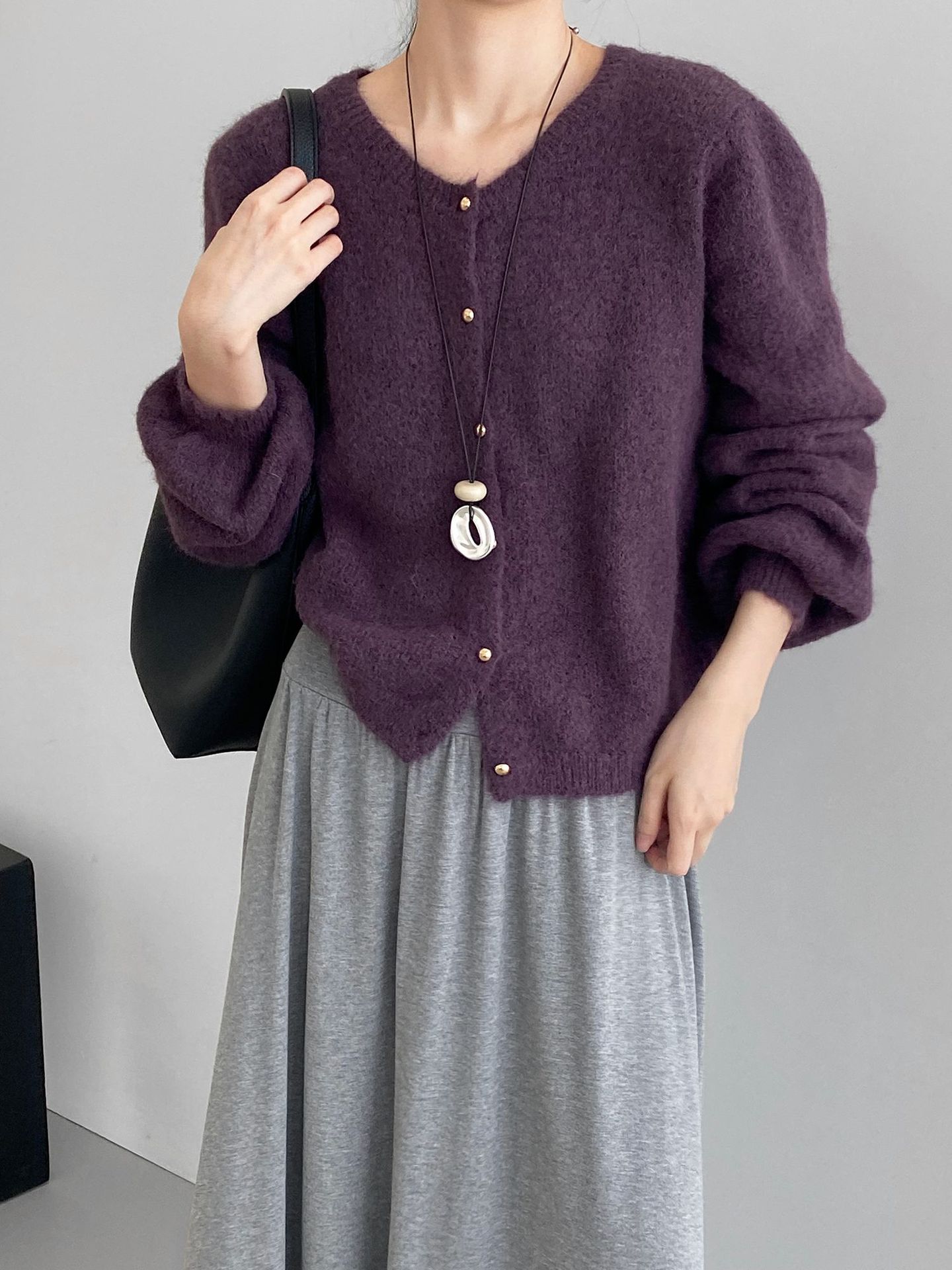 10 울 부드러운 초롱 소매 니트 여성 라운드 칼라 단추 찰밥 스웨터