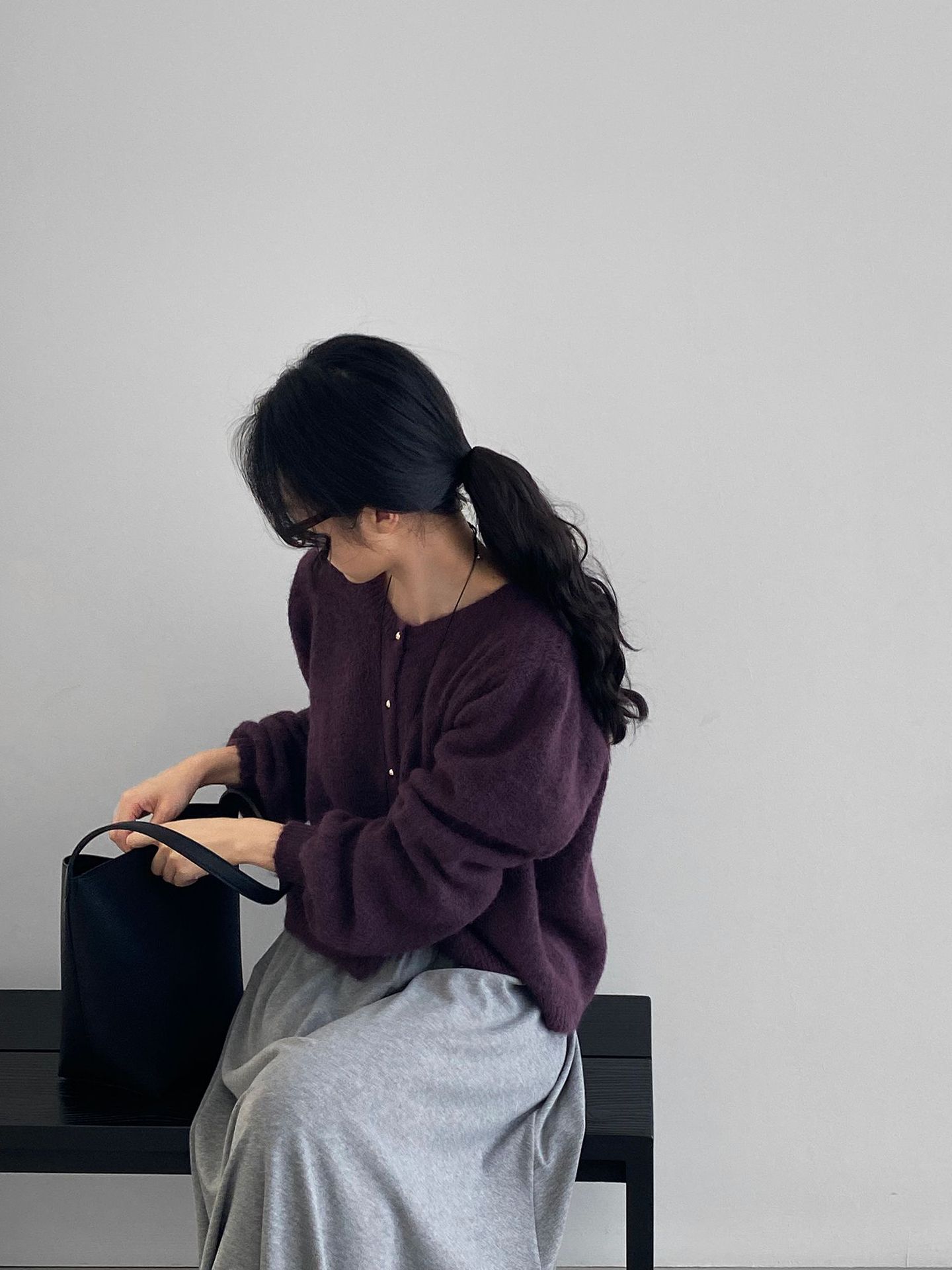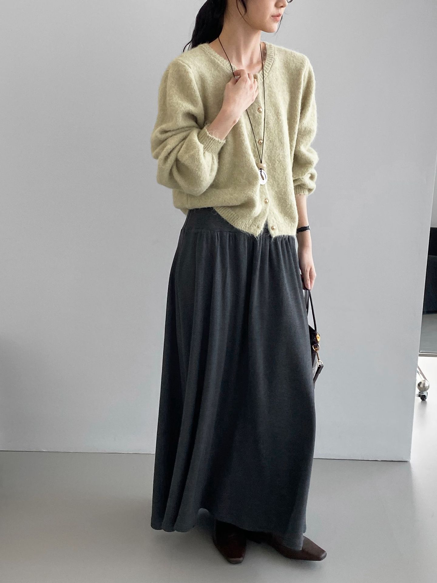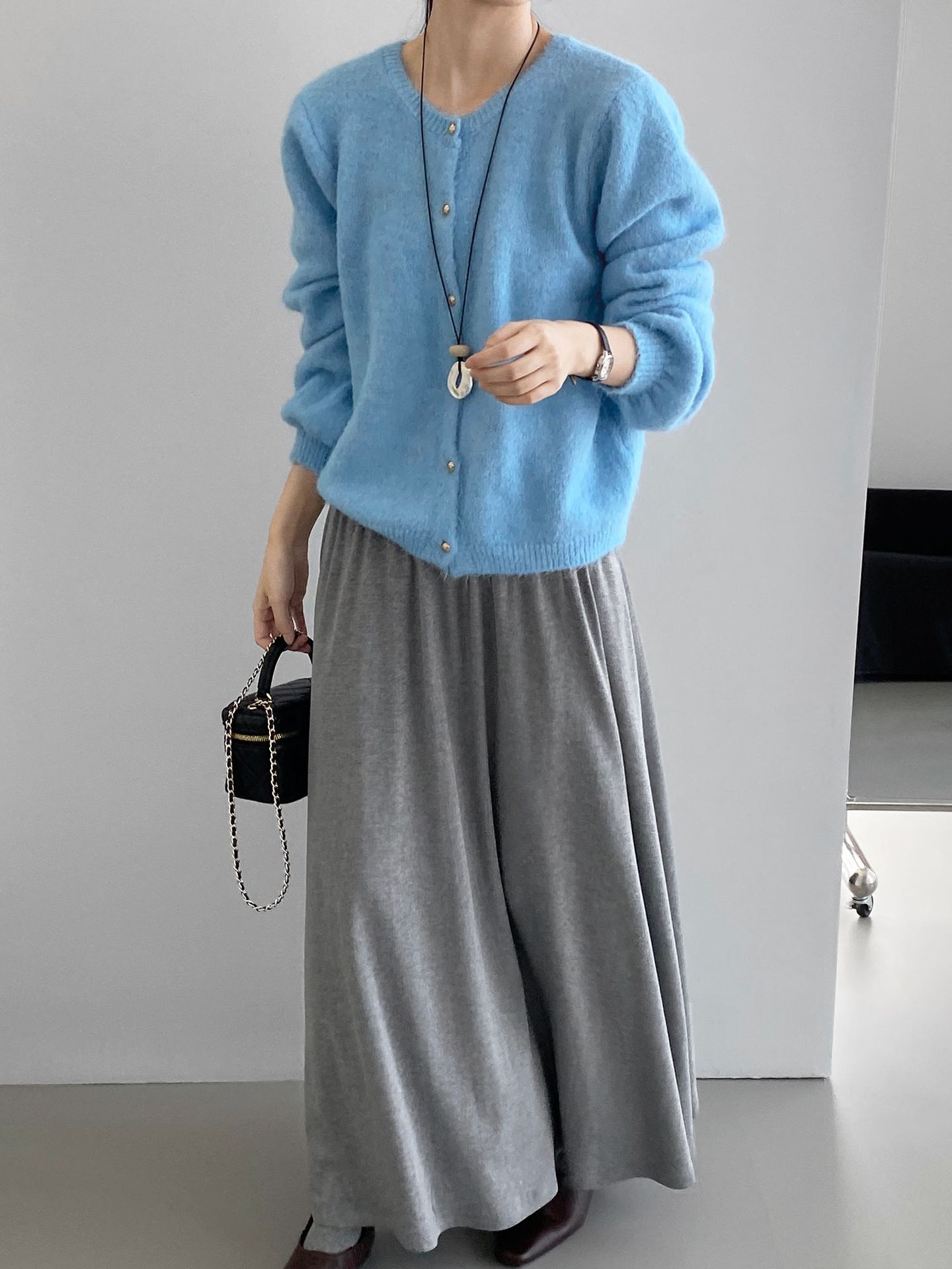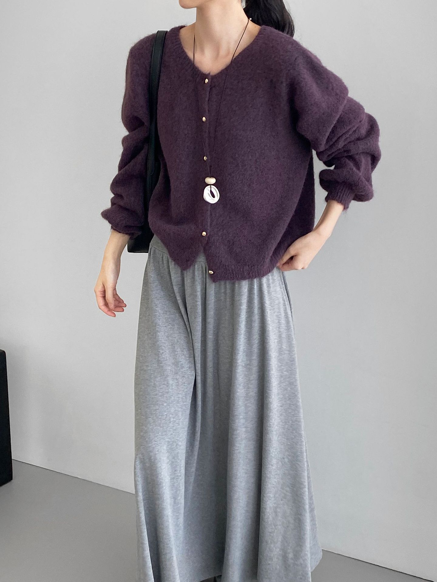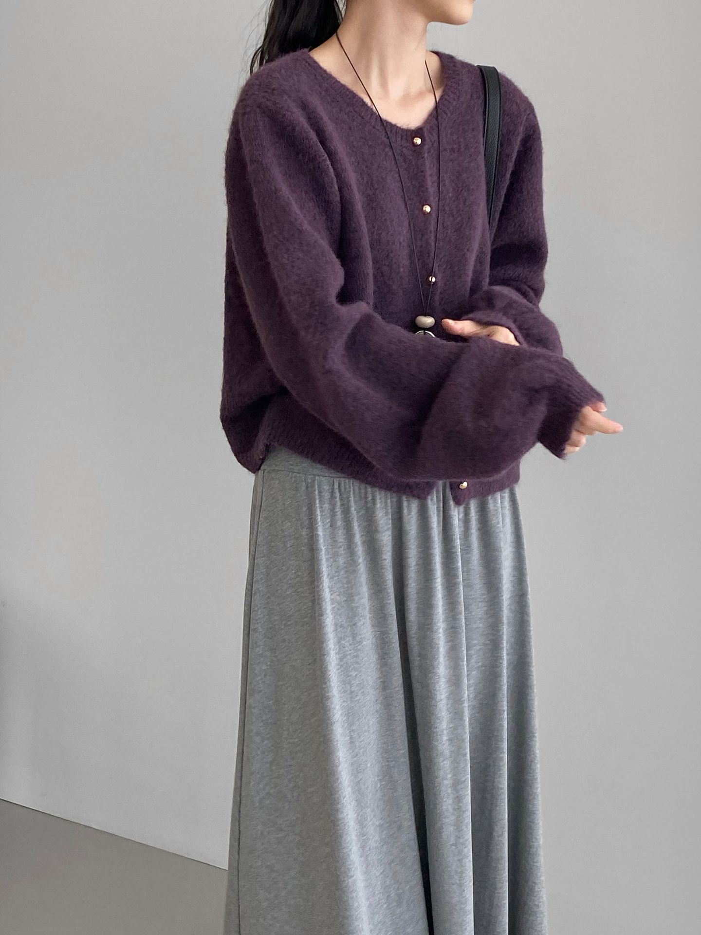 10 울 부드러운 초롱 소매 니트 여성 라운드 칼라 단추 찰밥 스웨터