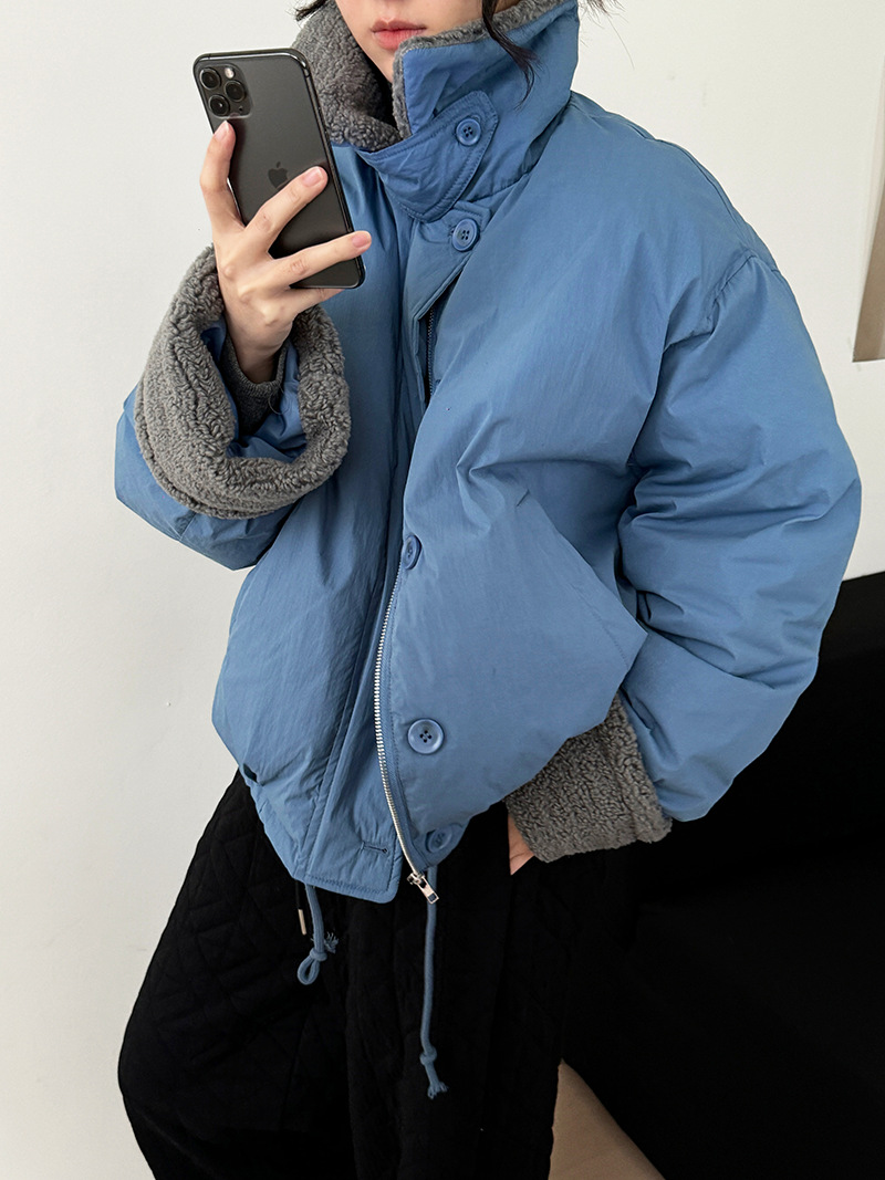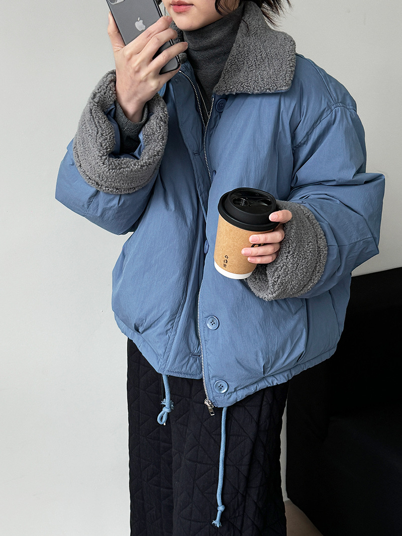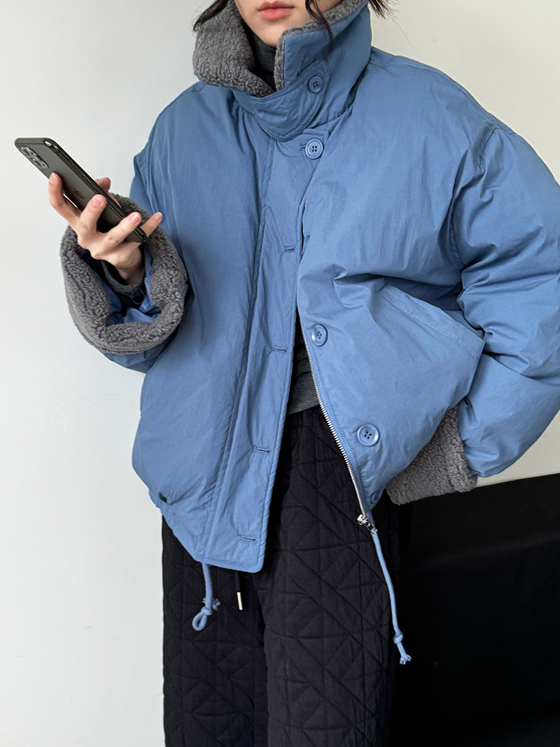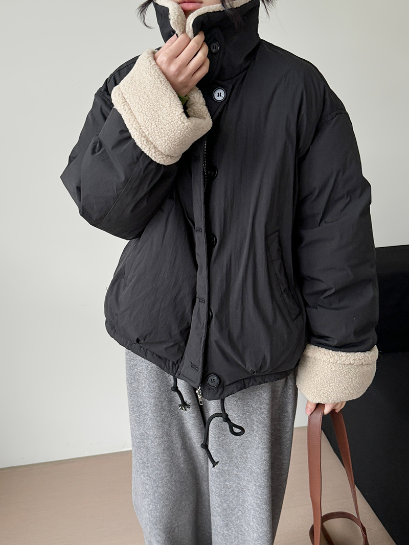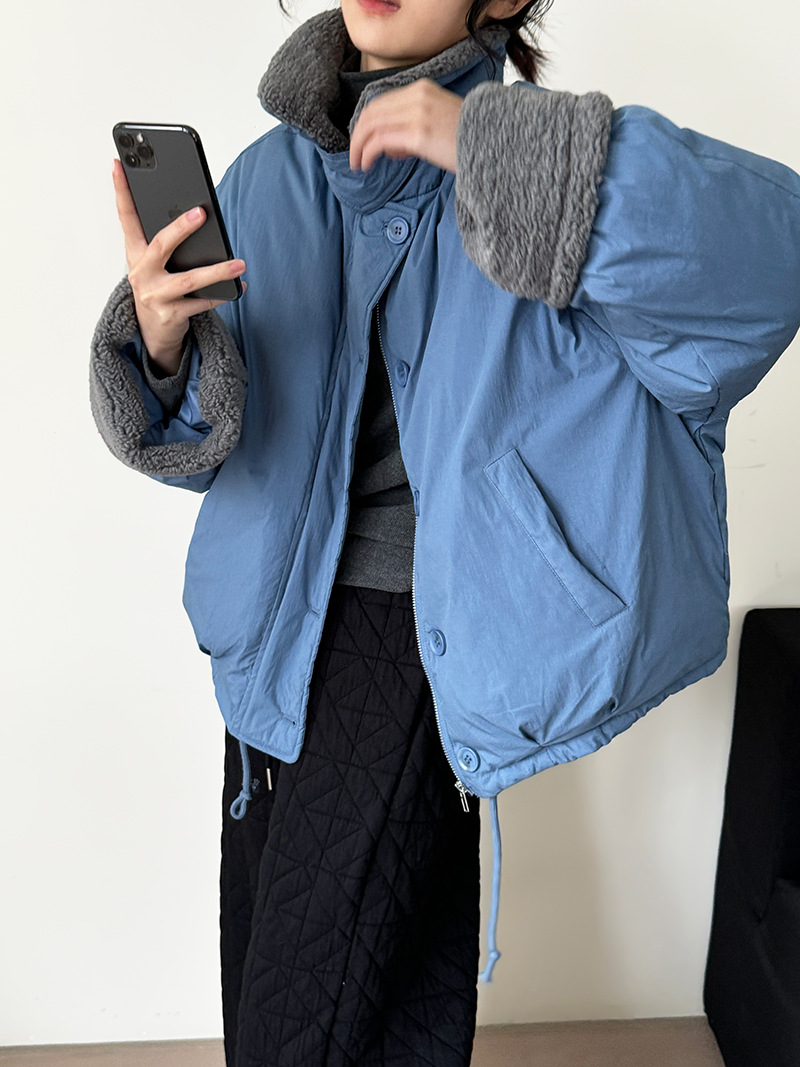 한계 90 화이트 오리털 점퍼 램스털 짜임 캐주얼 패딩
