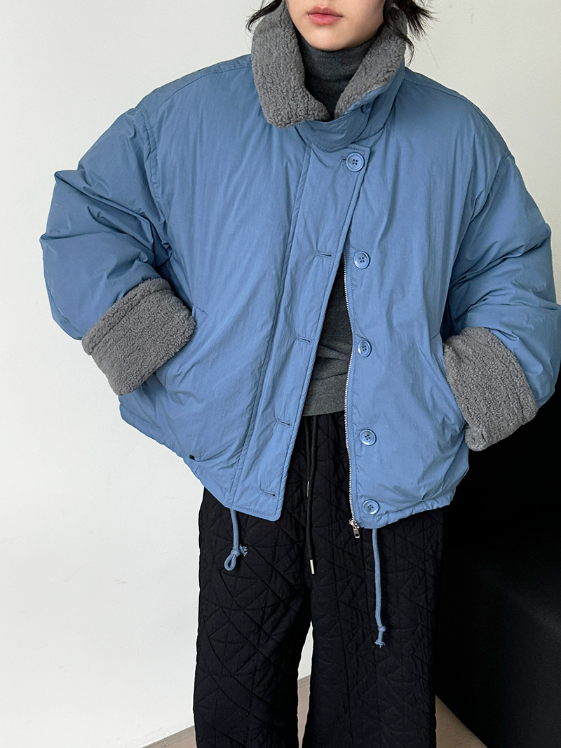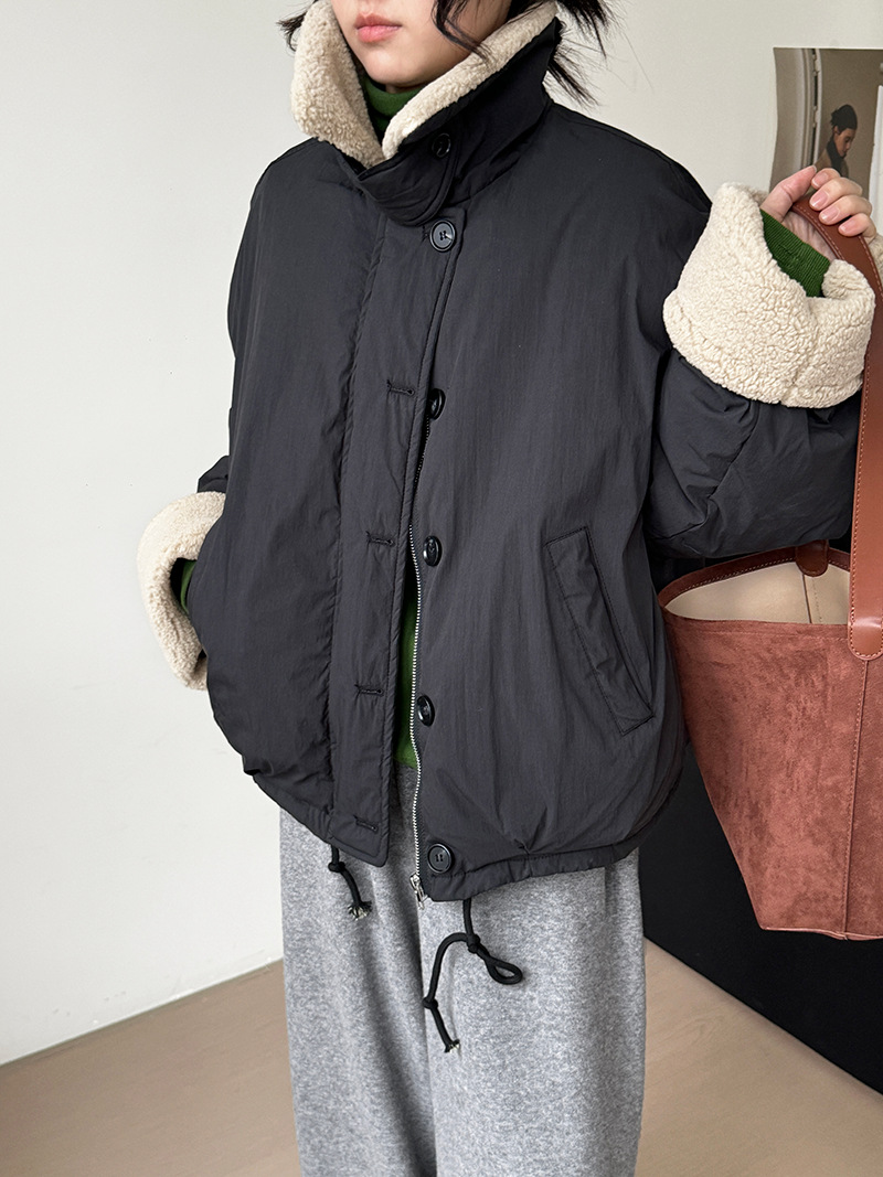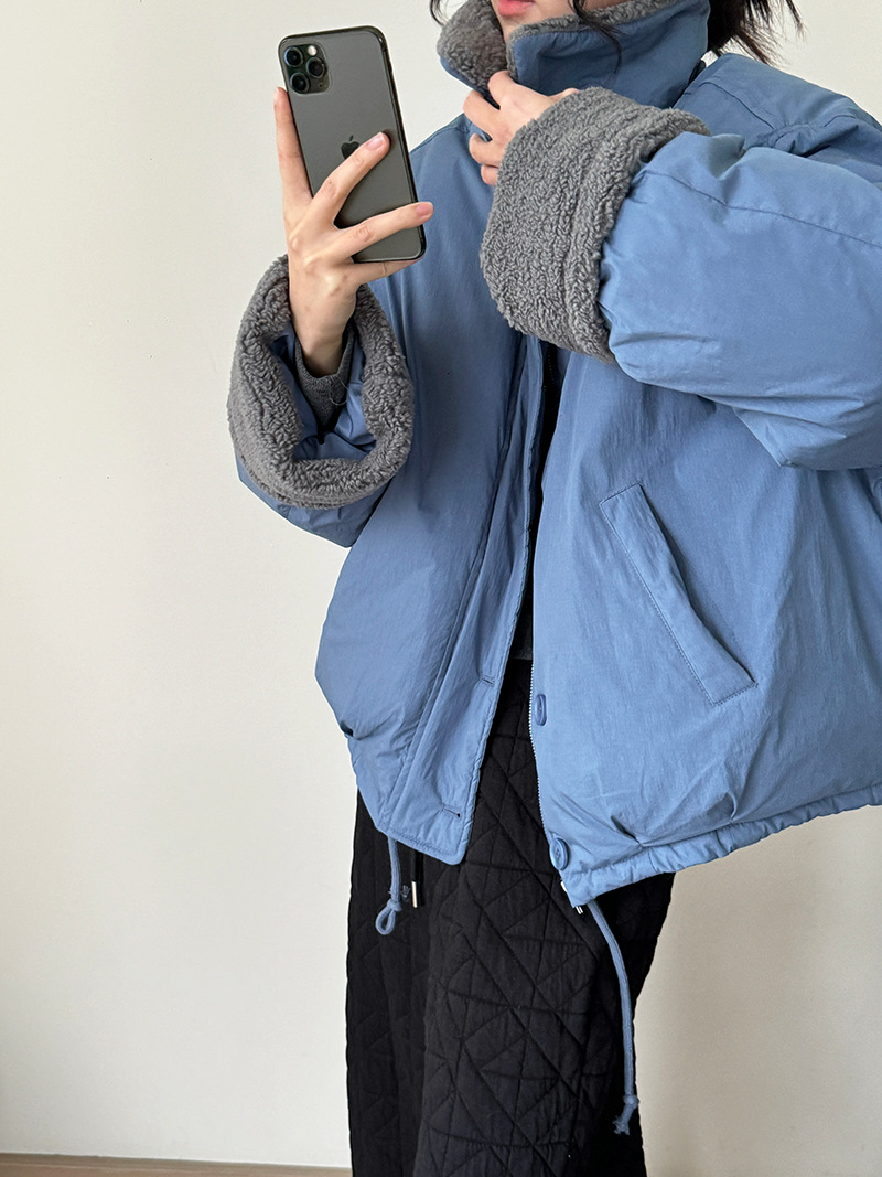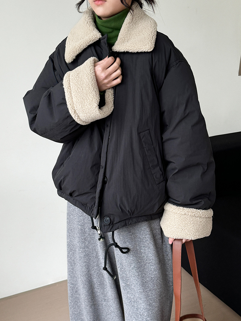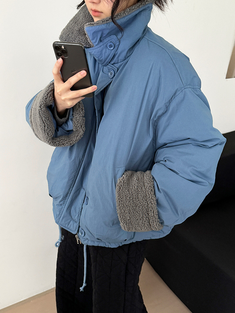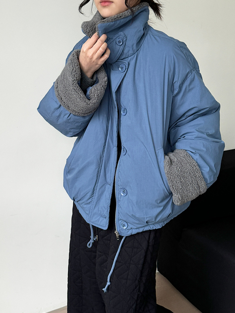 한계 90 화이트 오리털 점퍼 램스털 짜임 캐주얼 패딩