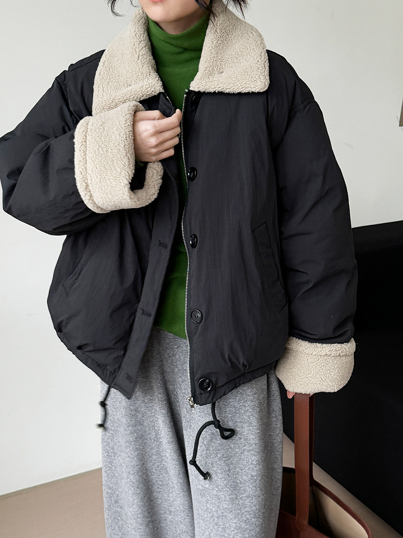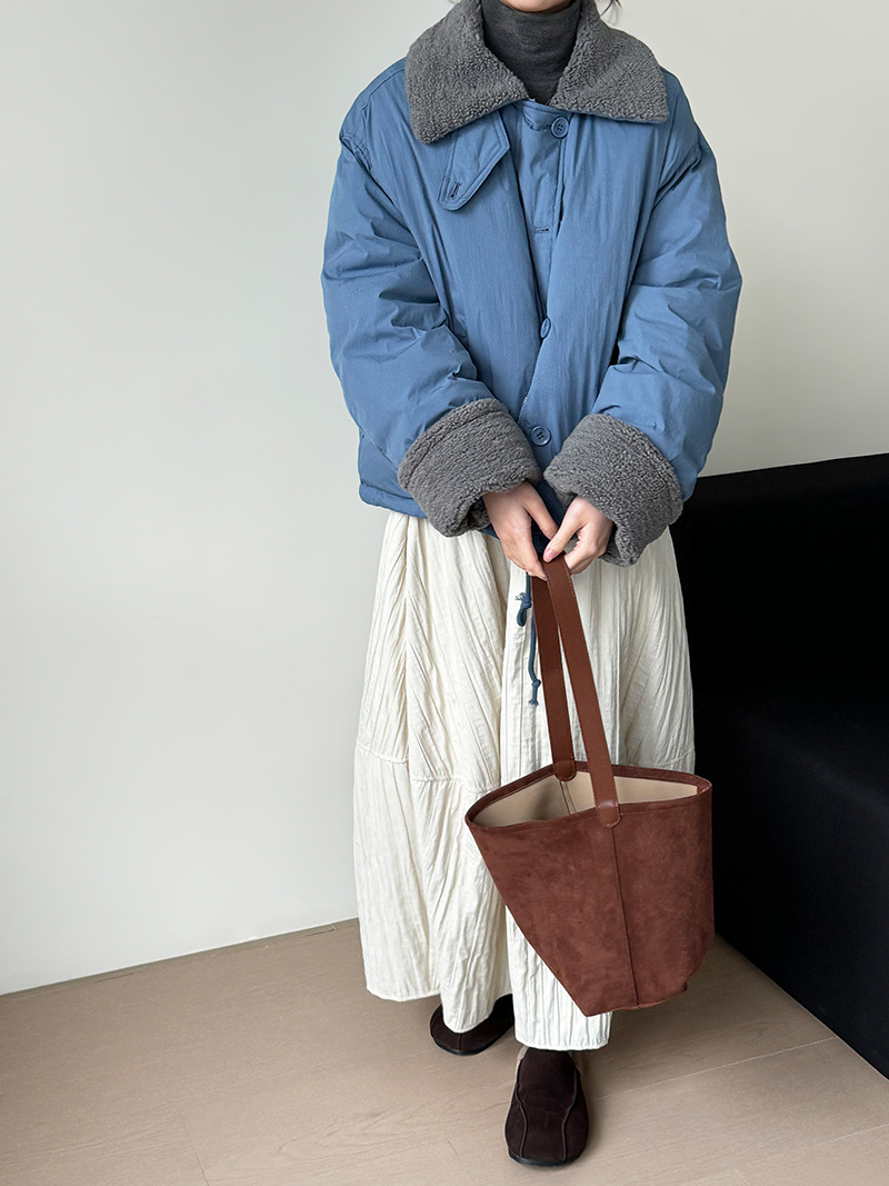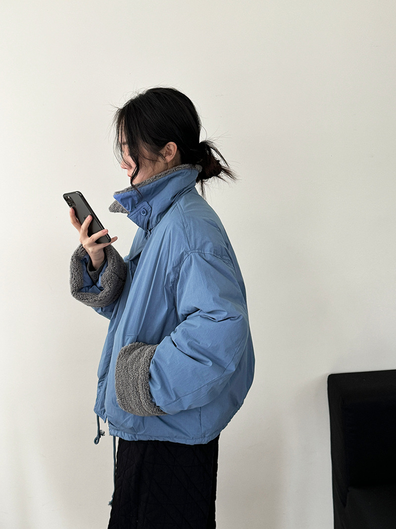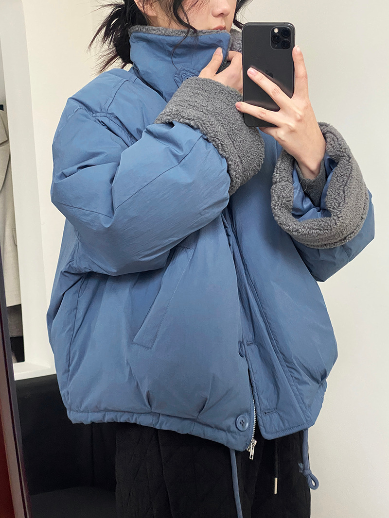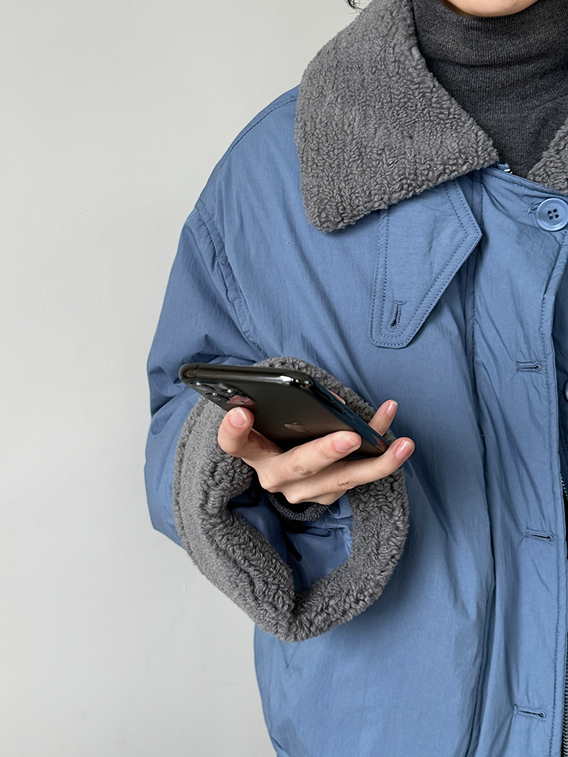 한계 90 화이트 오리털 점퍼 램스털 짜임 캐주얼 패딩