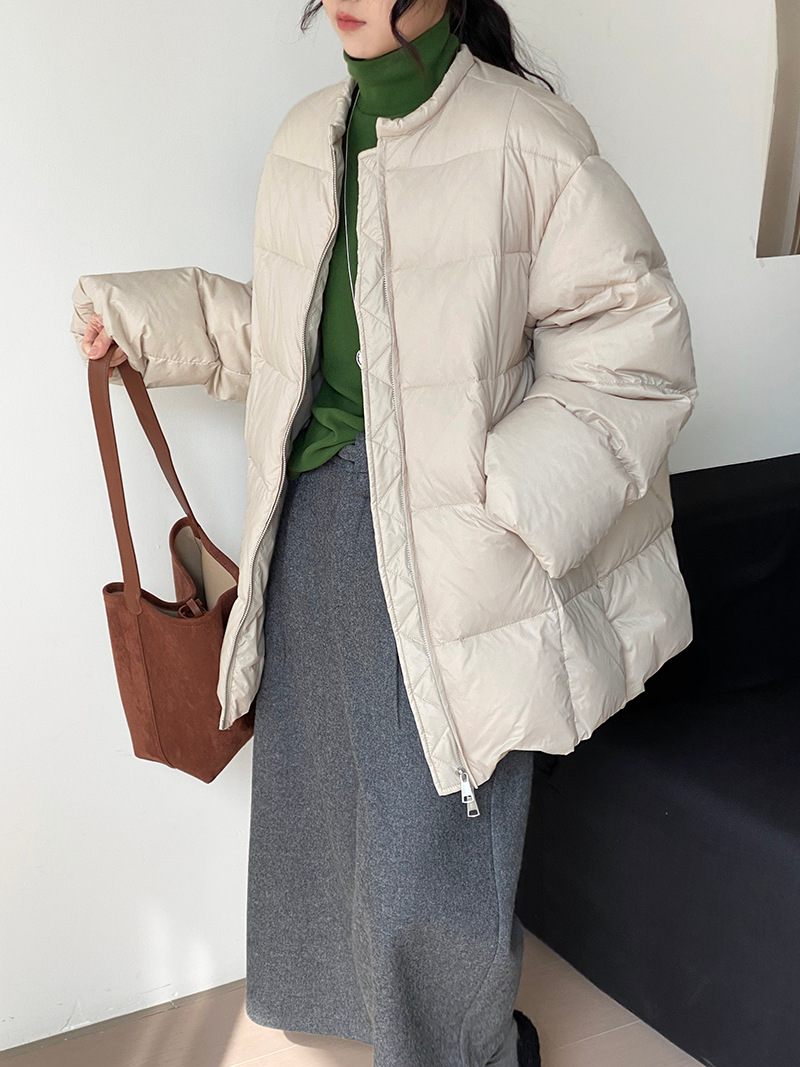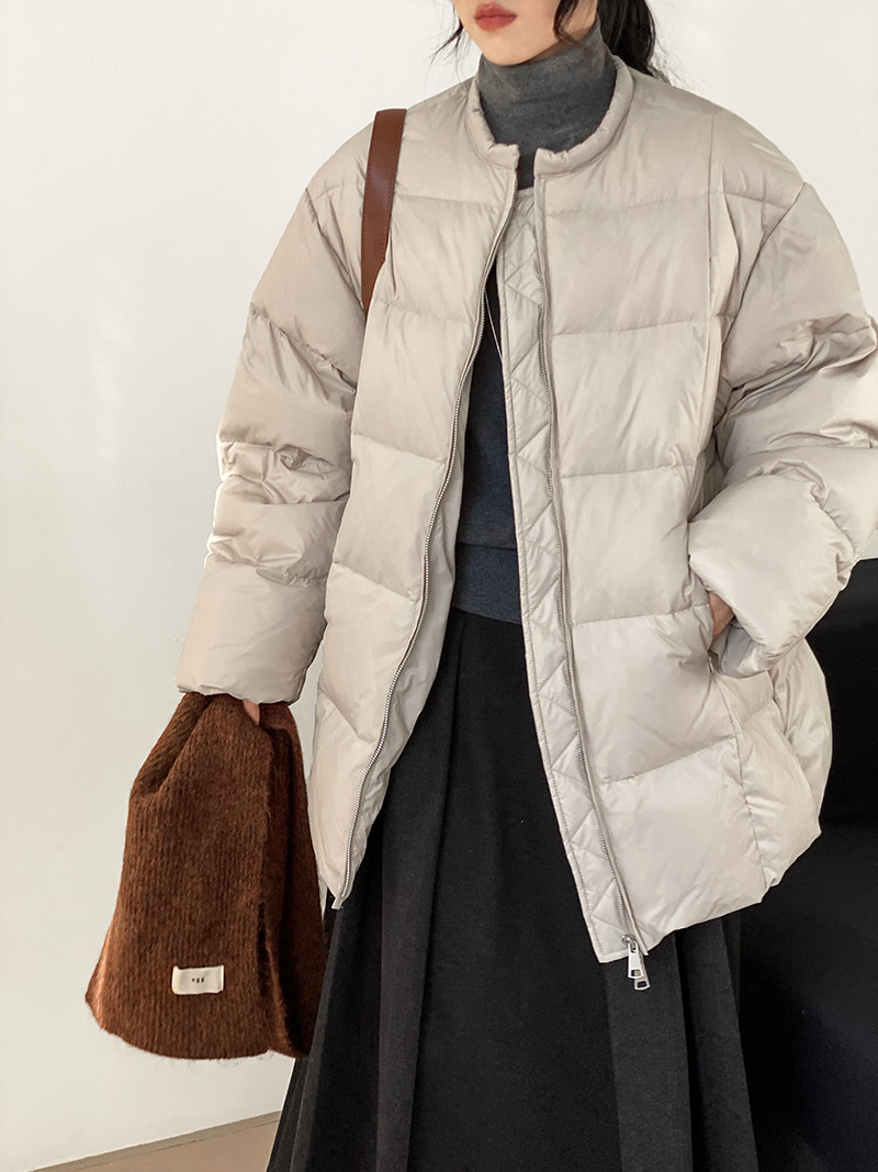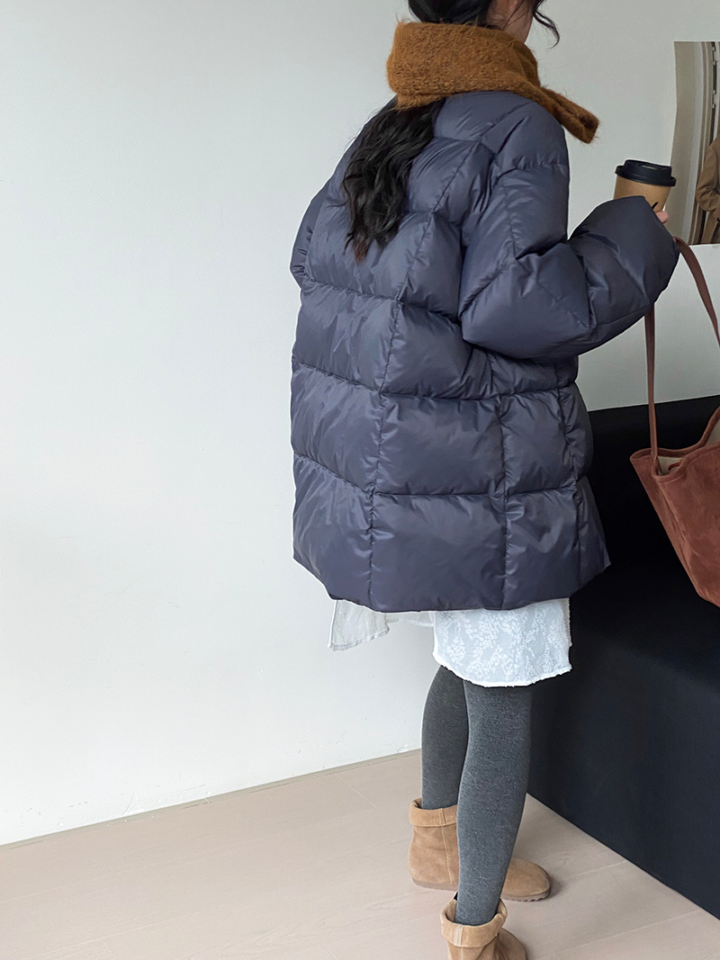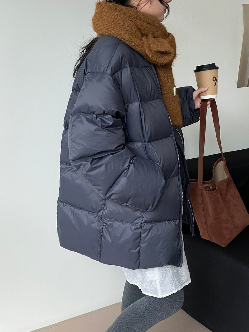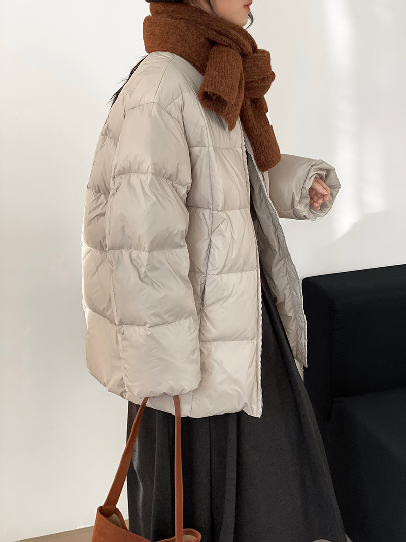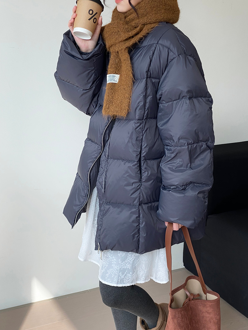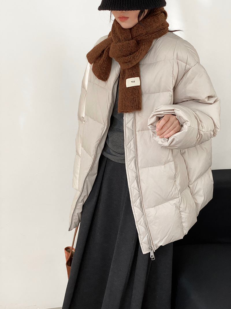 90 화이트 오리털 점퍼 한풍 체크 라운드 미디엄 패딩 점퍼 빵녀