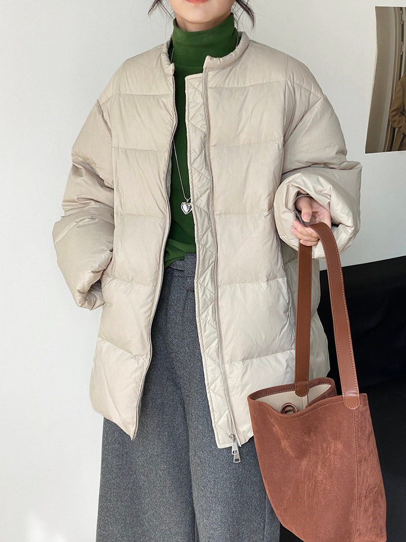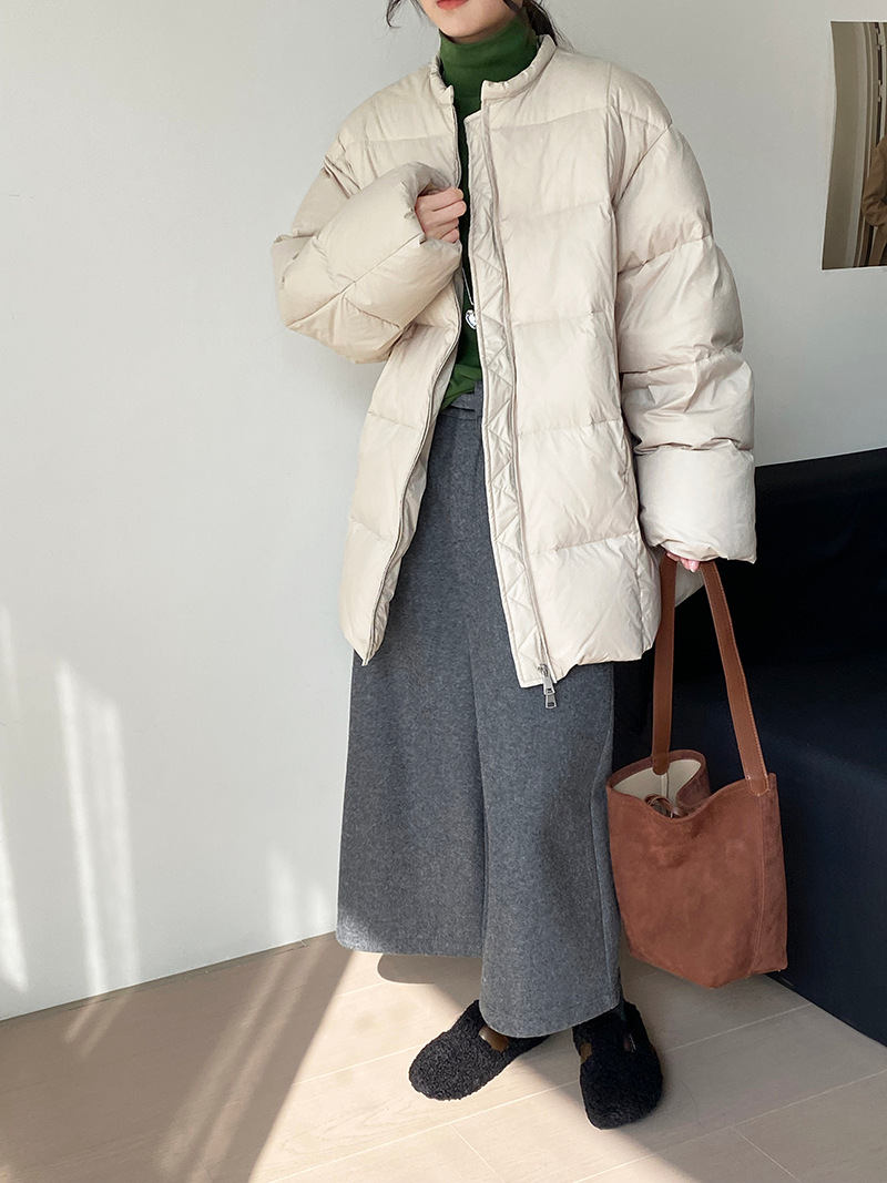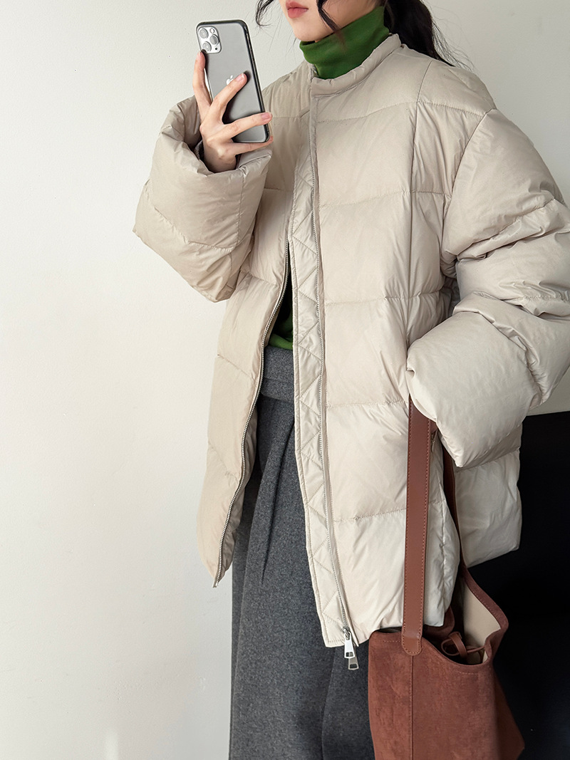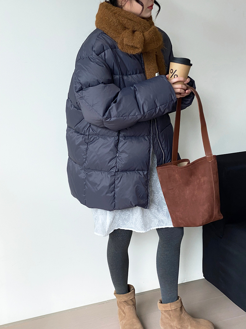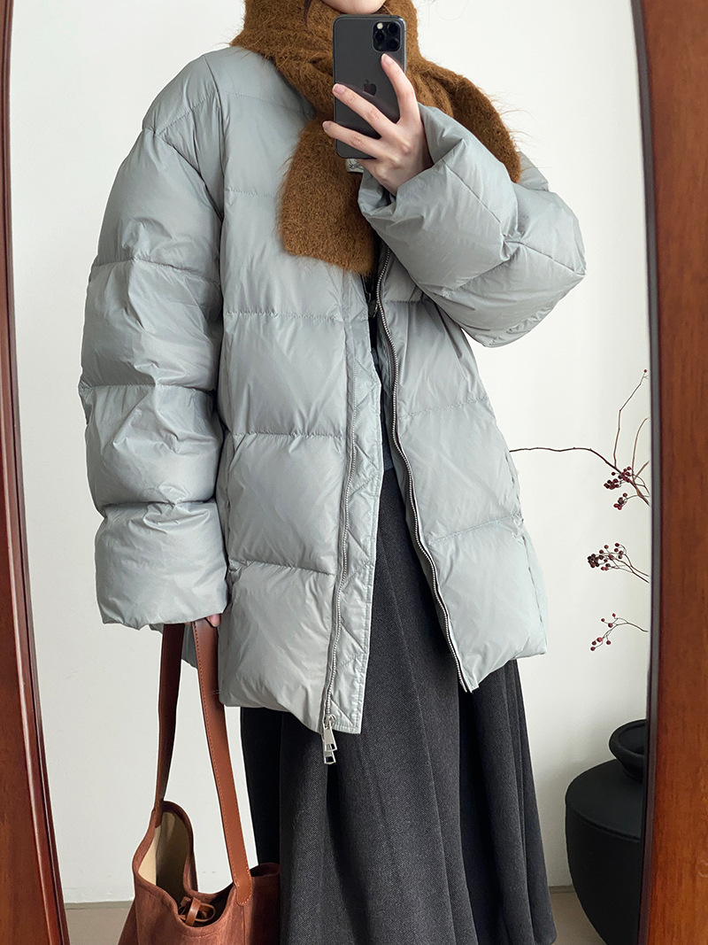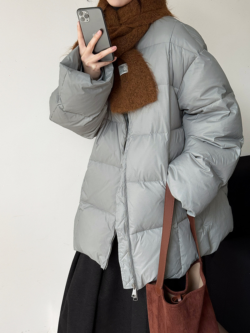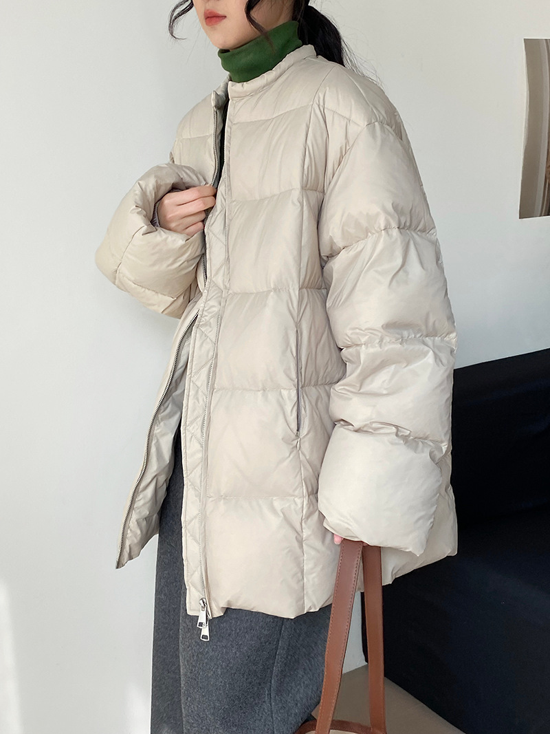 90 화이트 오리털 점퍼 한풍 체크 라운드 미디엄 패딩 점퍼 빵녀