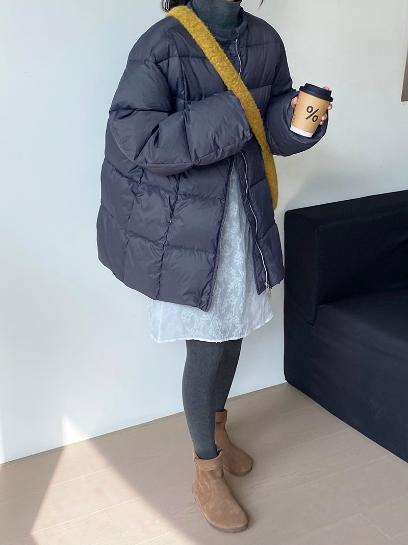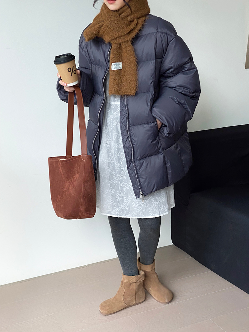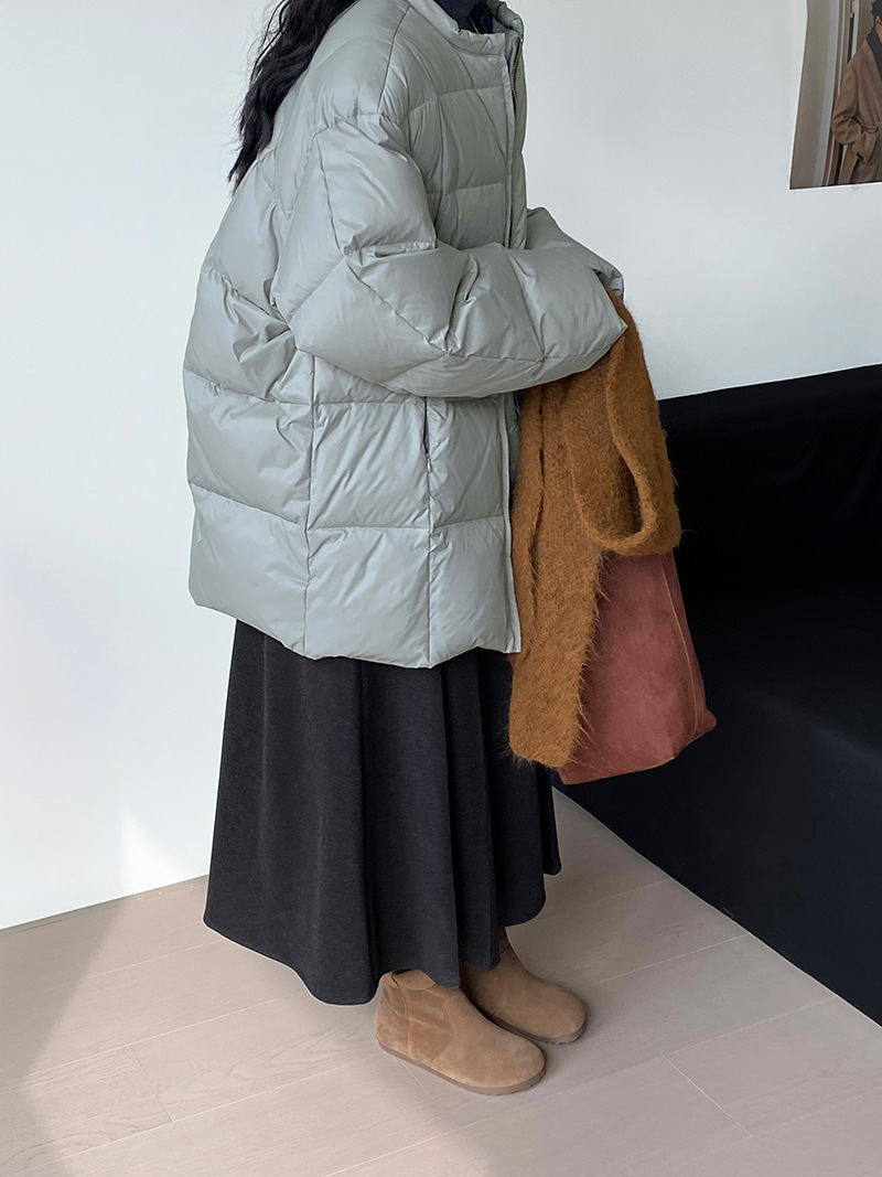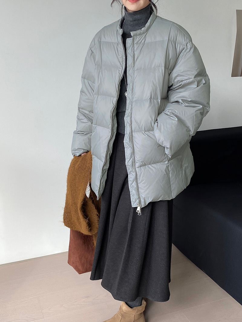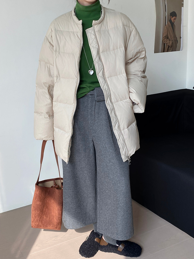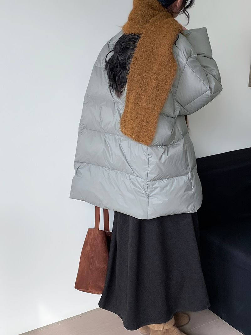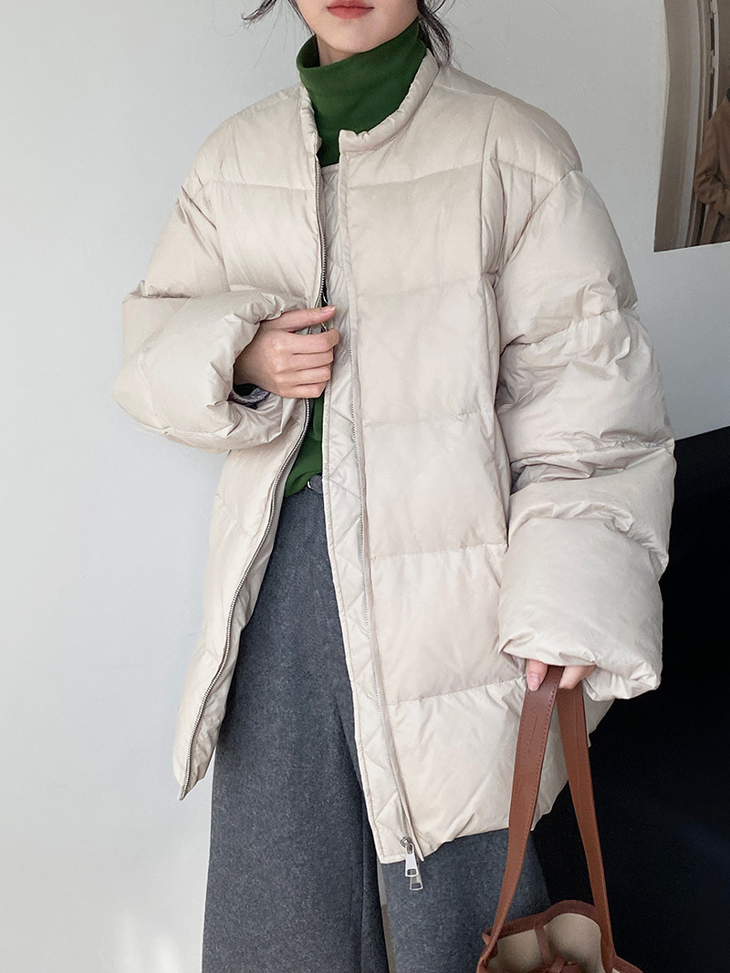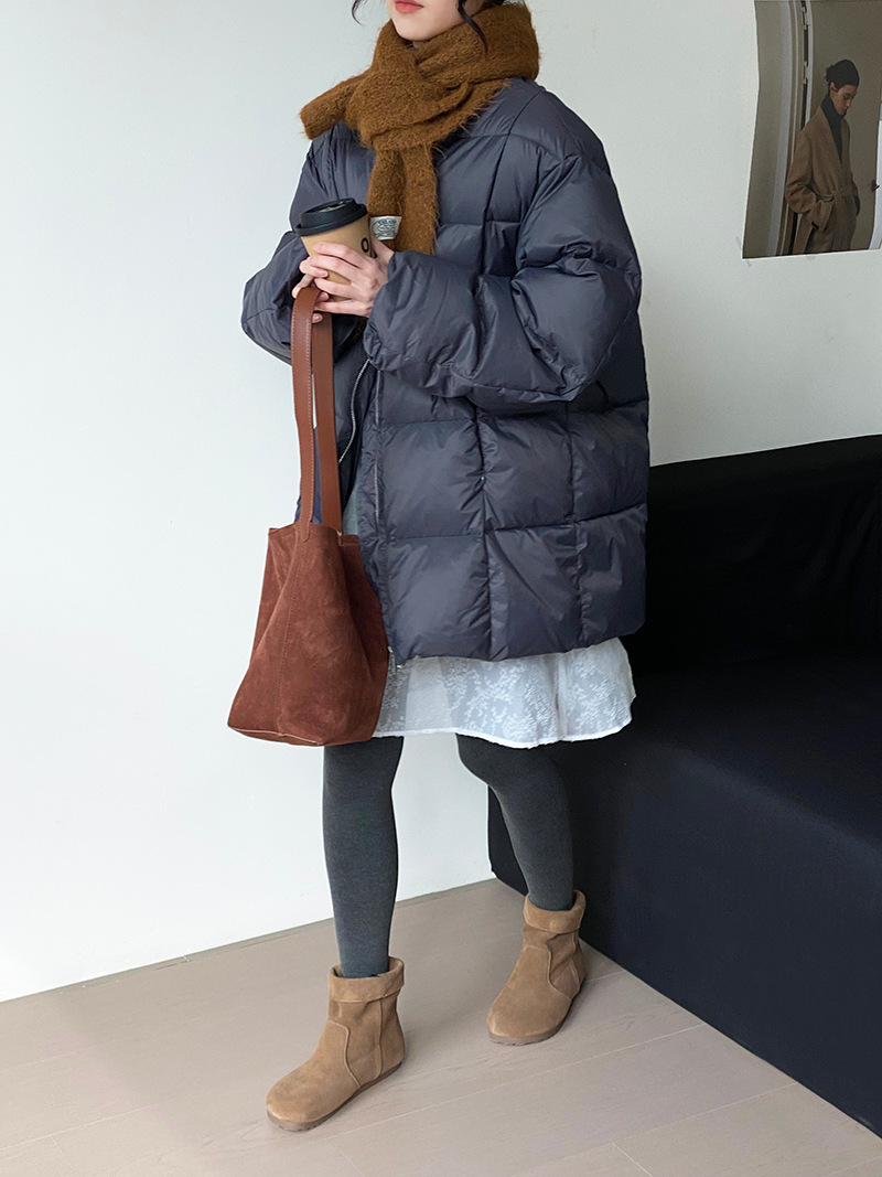 90 화이트 오리털 점퍼 한풍 체크 라운드 미디엄 패딩 점퍼 빵녀