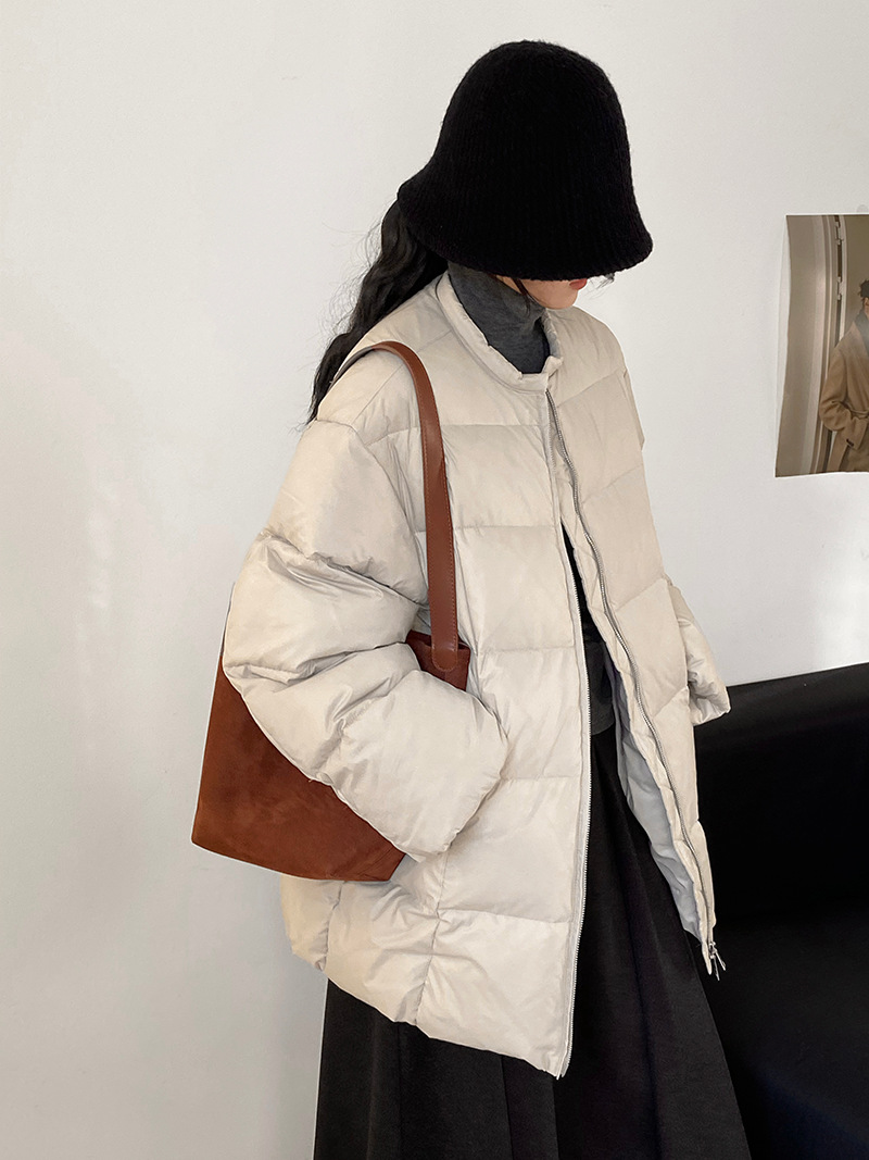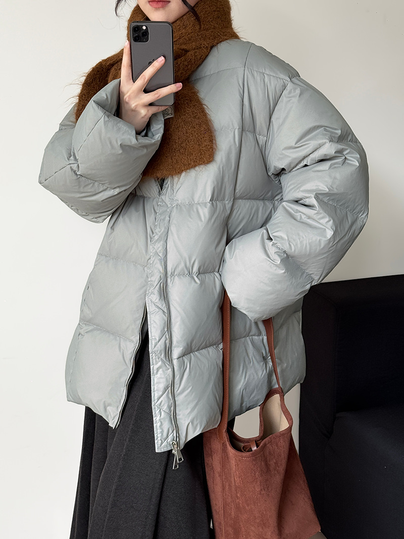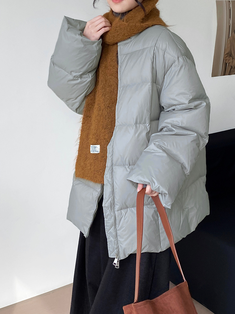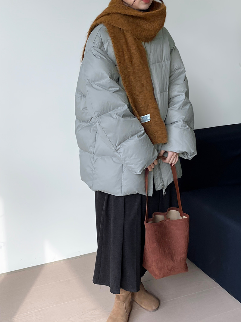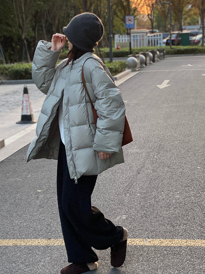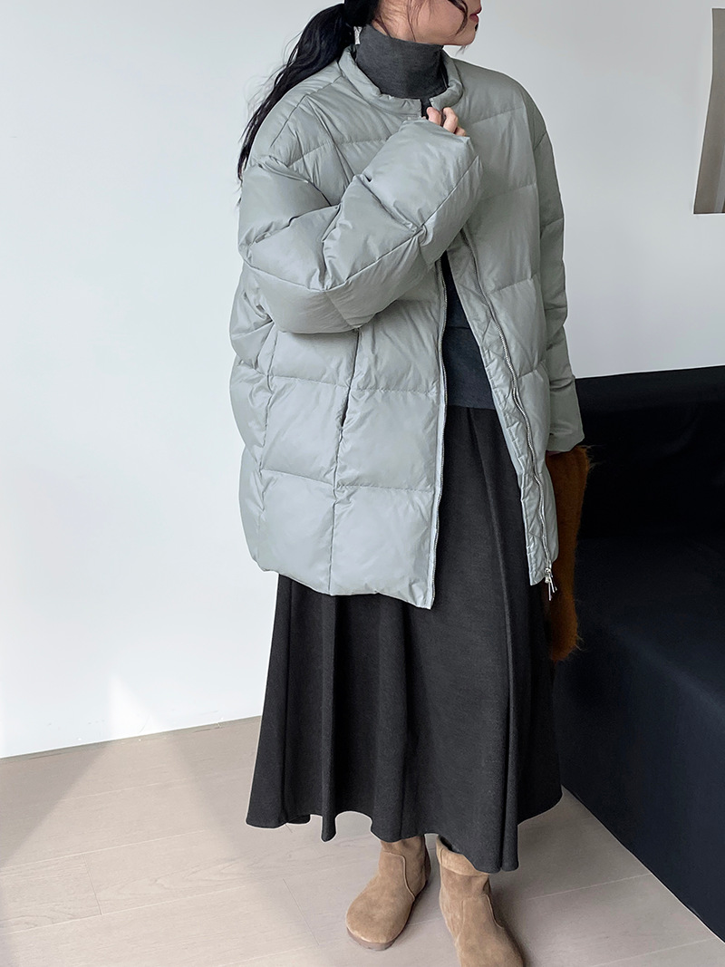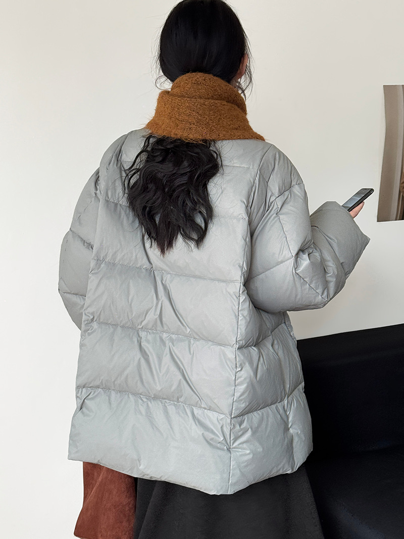 90 화이트 오리털 점퍼 한풍 체크 라운드 미디엄 패딩 점퍼 빵녀