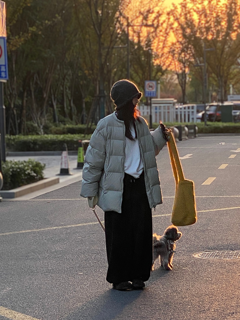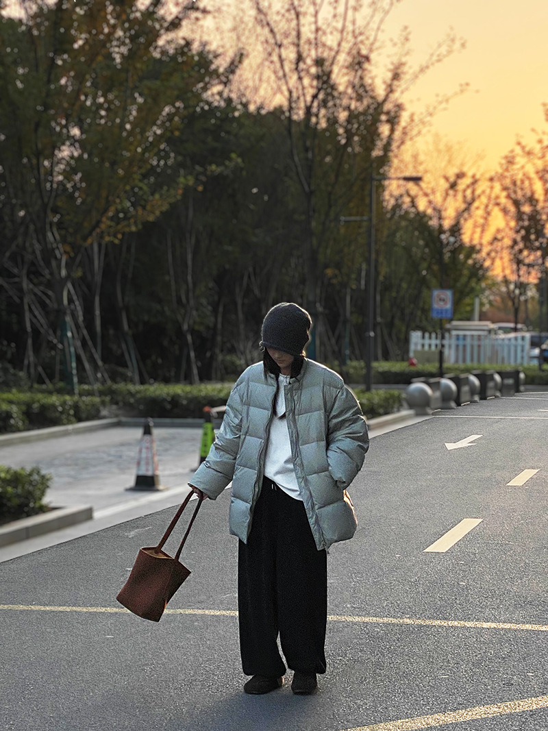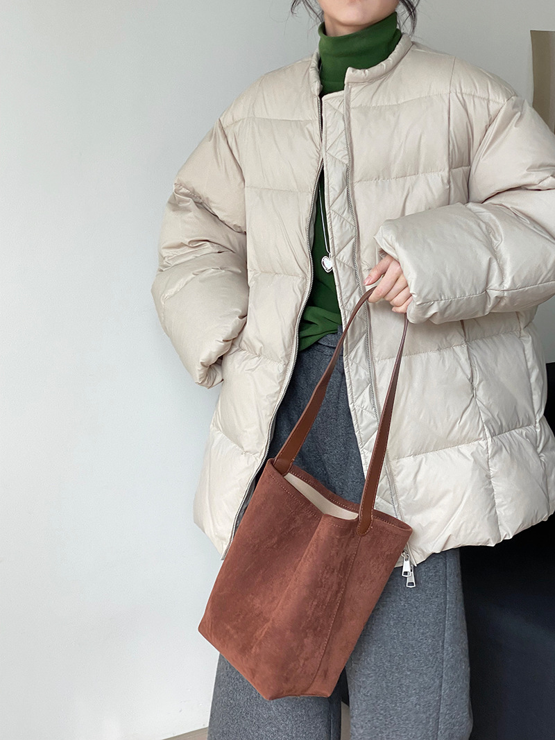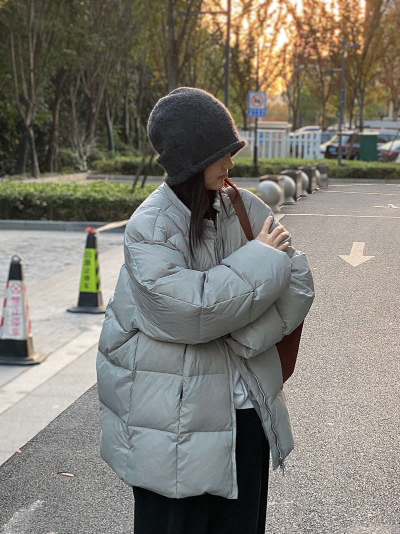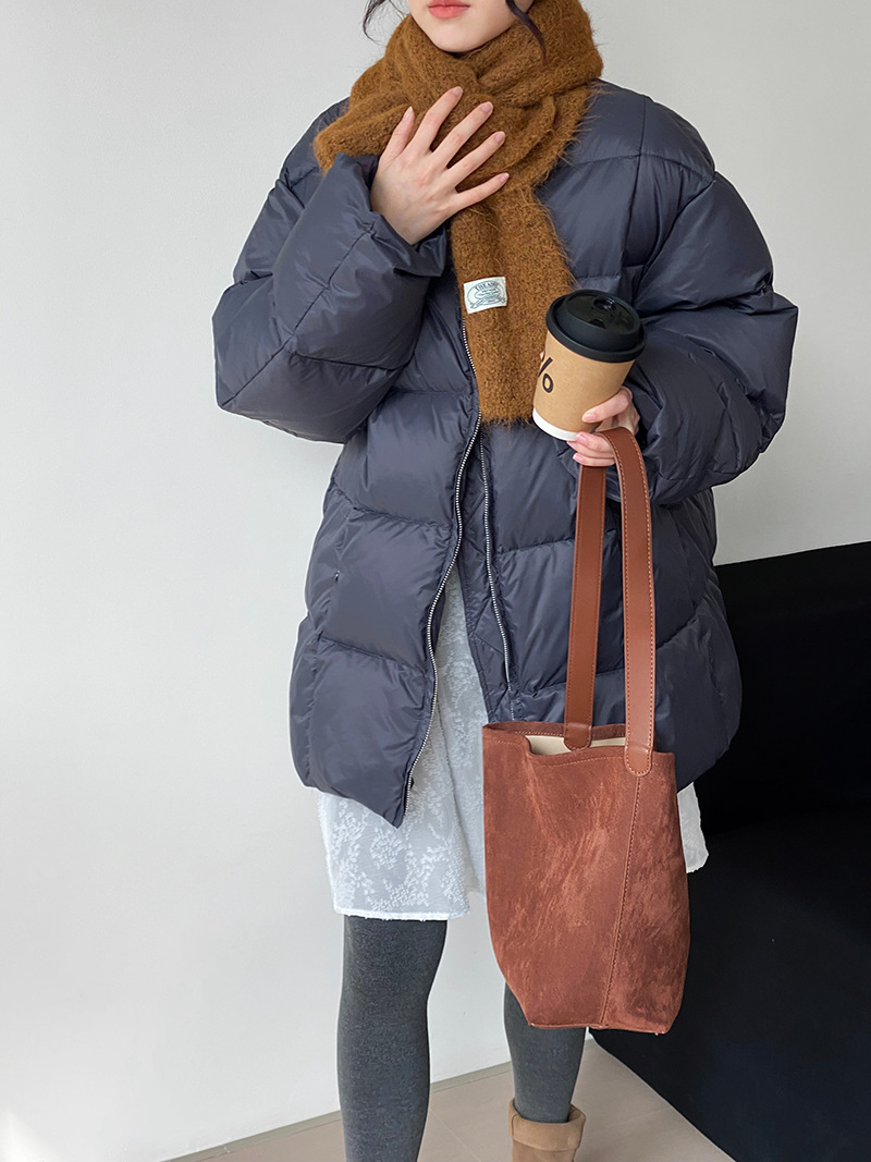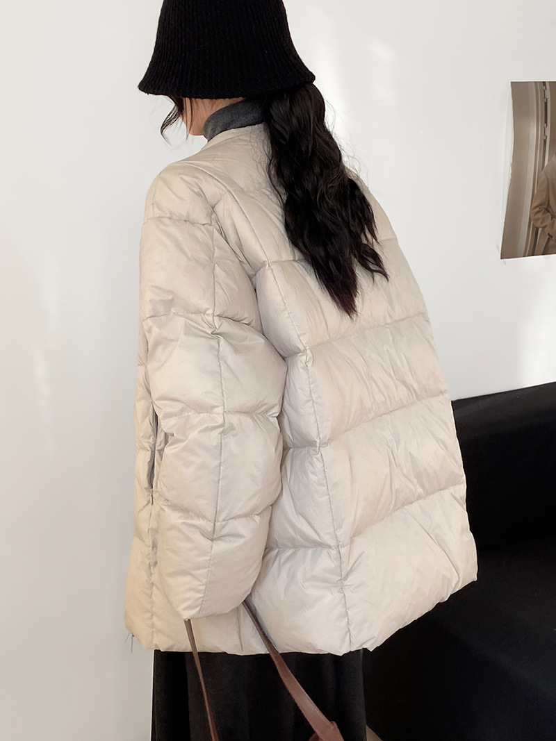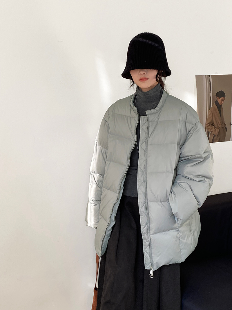 90 화이트 오리털 점퍼 한풍 체크 라운드 미디엄 패딩 점퍼 빵녀