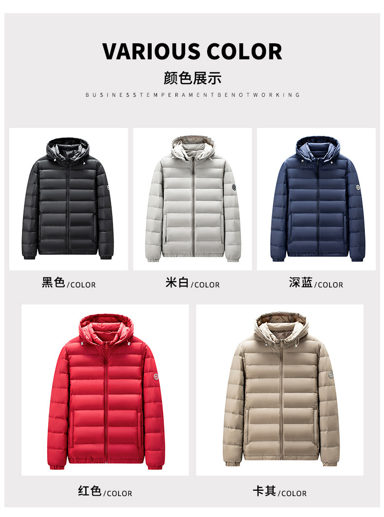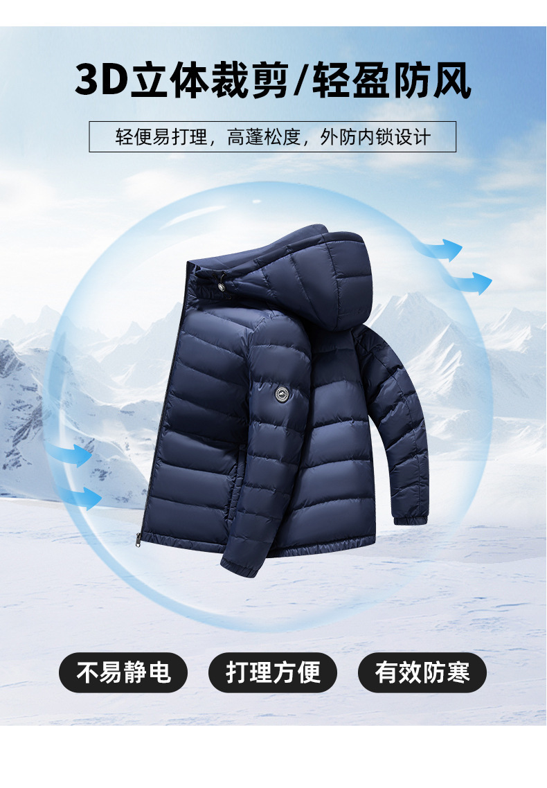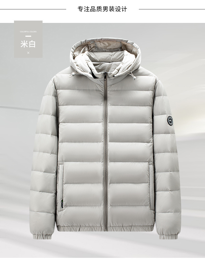 90 화이트 오리털 경량 패딩남 2025가을 겨울 신상 모자 탈부착 가능 방한 다운 점퍼