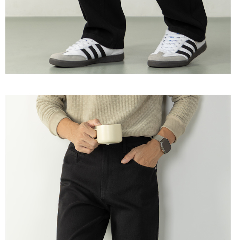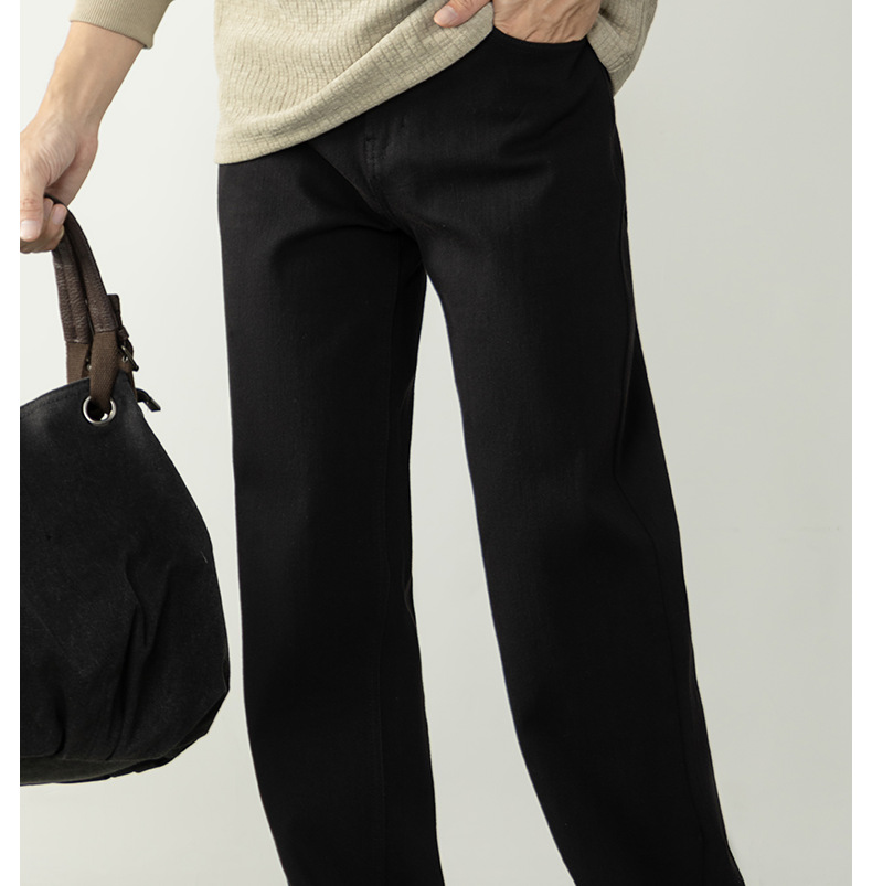 하이스트리트 워싱 블랙 통 진 남성 와이드 스판 롱 팬츠남