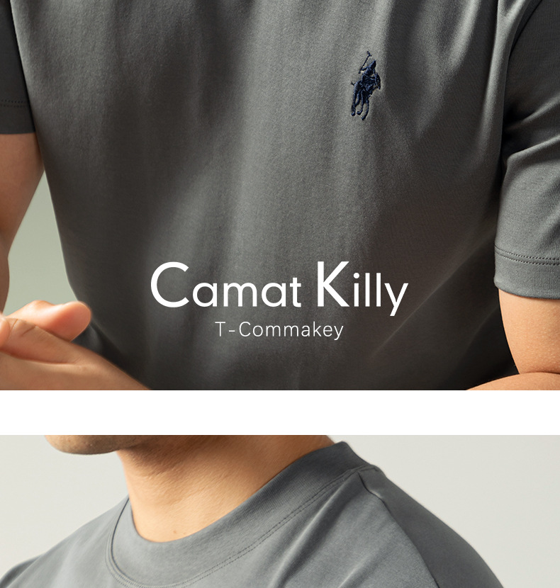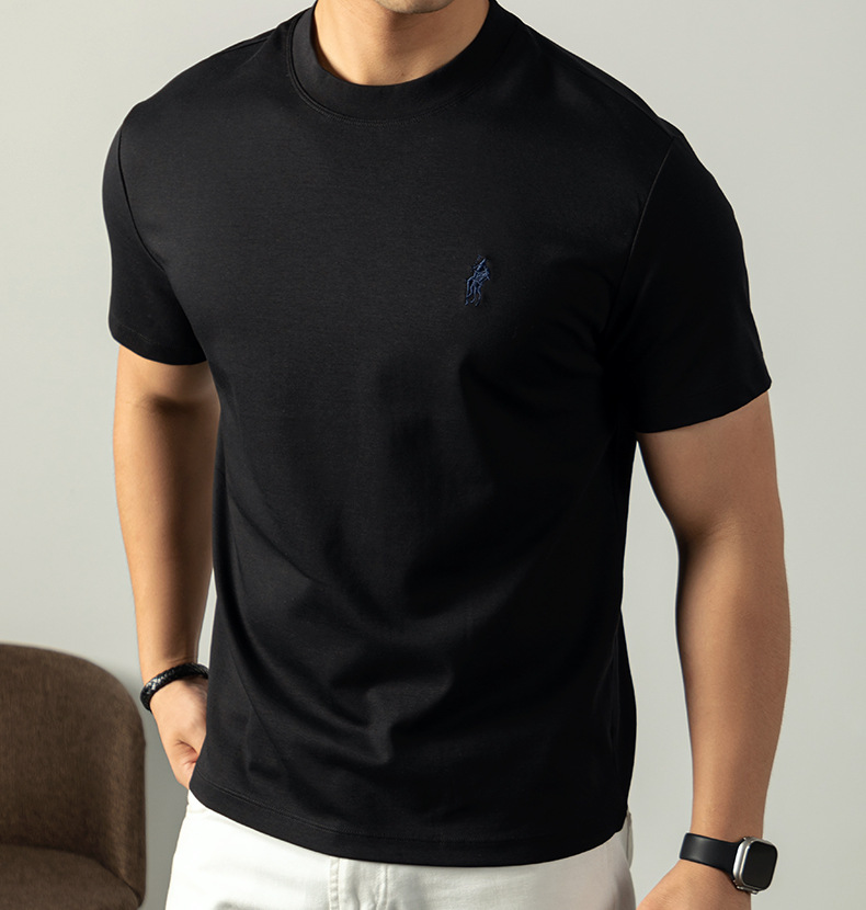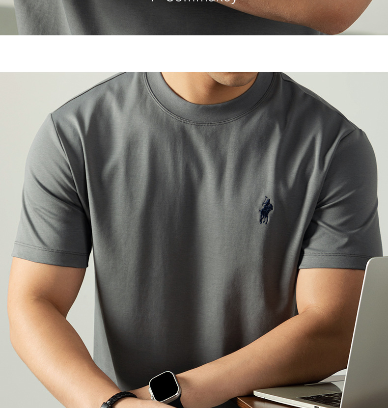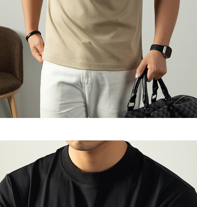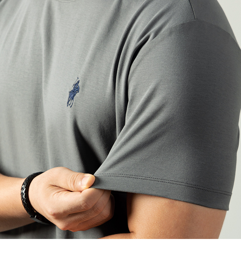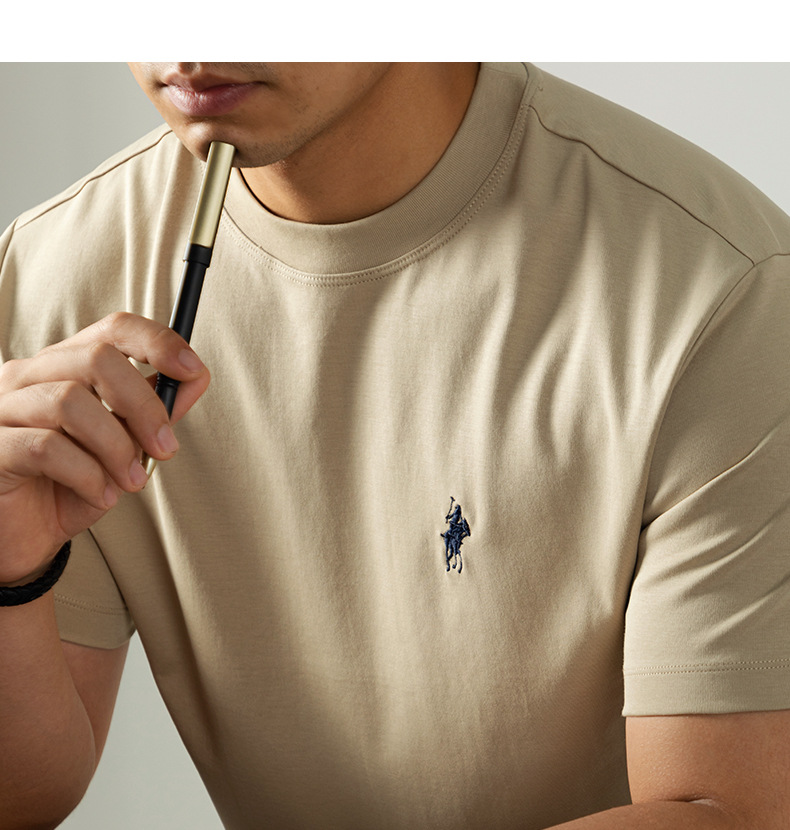 하이엔드 리퀴드 암모니아 실켓 남성 반팔 티셔츠 서머 라운드 칼라 올드 챈 자수 탑 남자