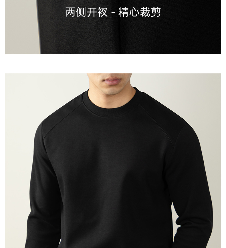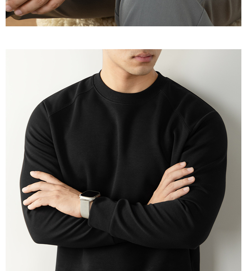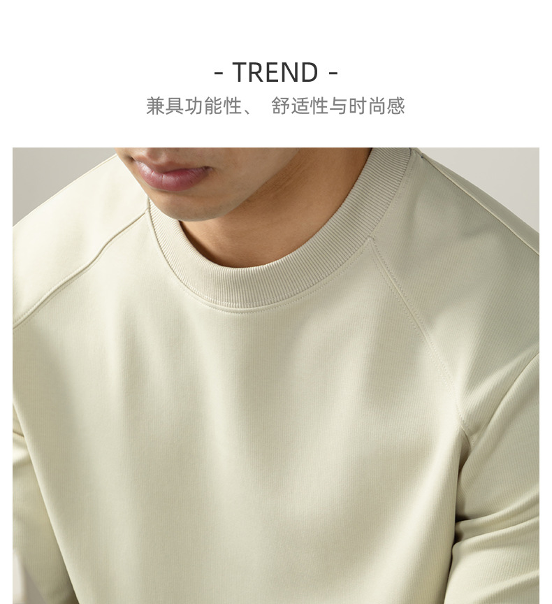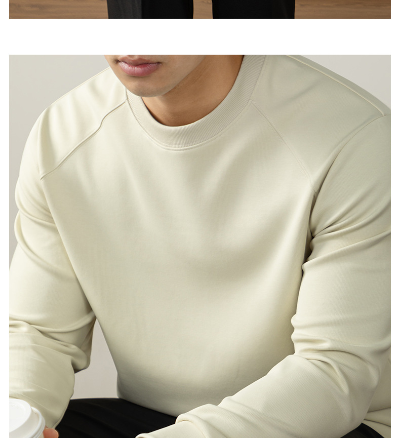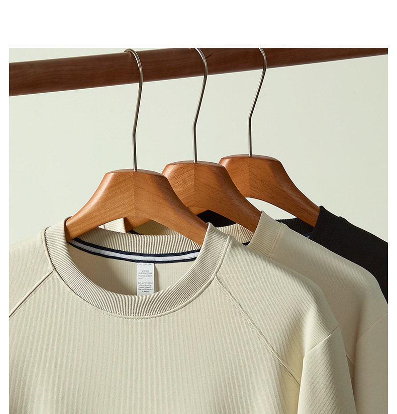 나른한 340 g 무게의 양면 잔주름 라운드 맨투맨 래글런 티셔츠 가을 겨울 남성용 고급스러움