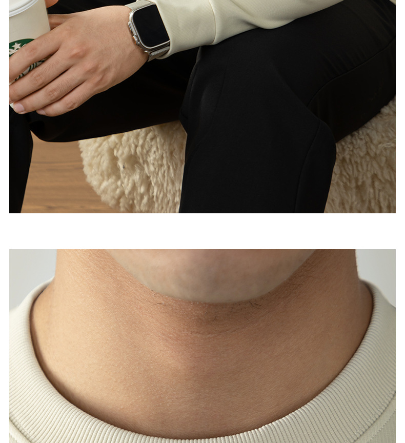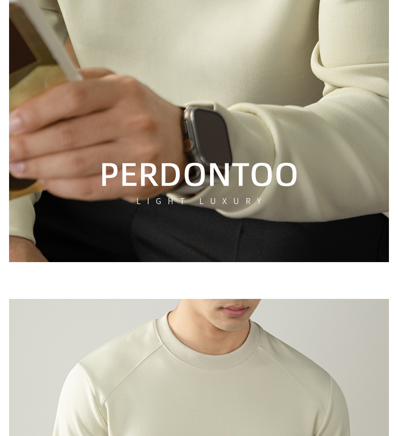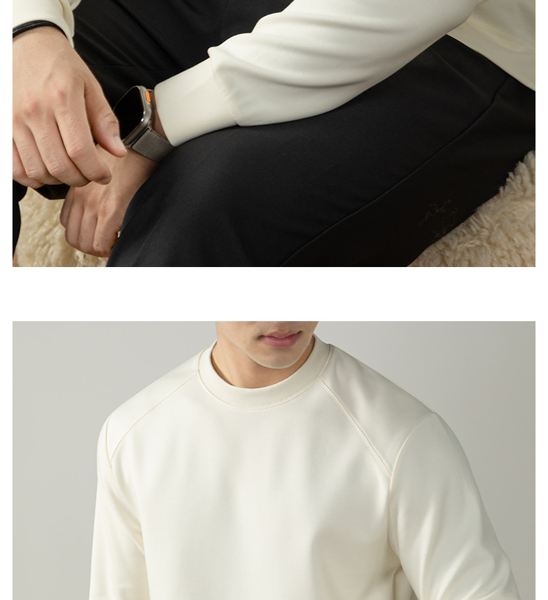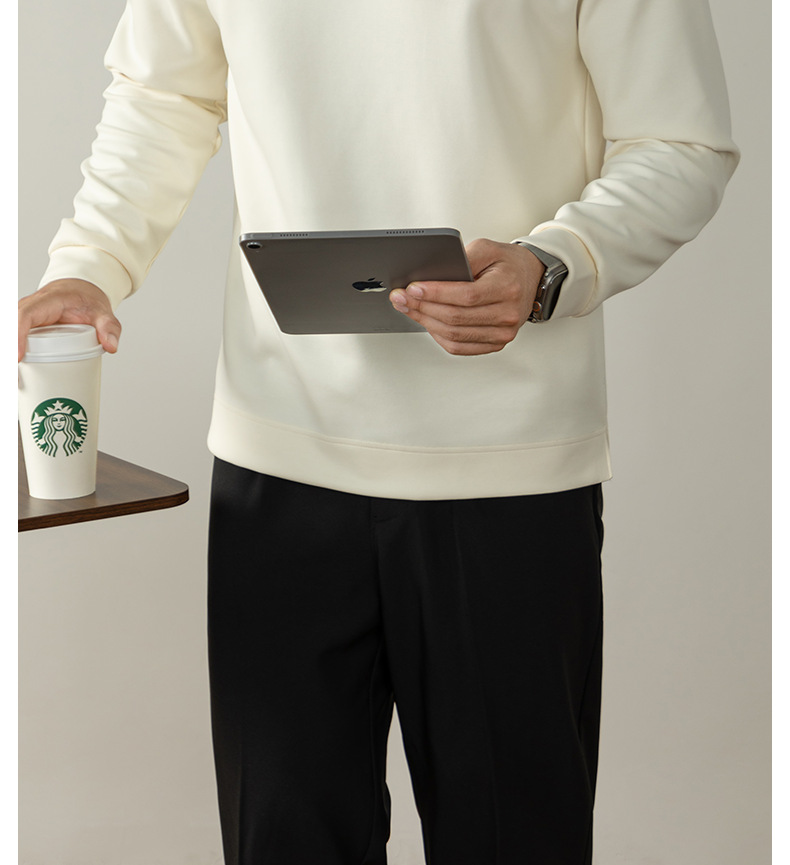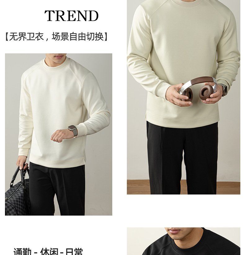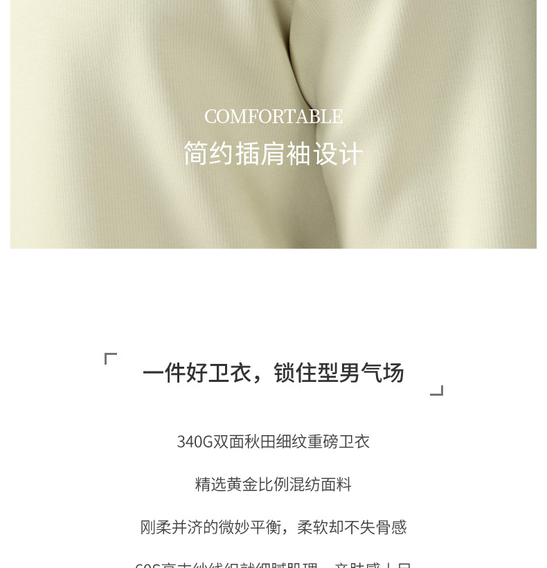 나른한 340 g 무게의 양면 잔주름 라운드 맨투맨 래글런 티셔츠 가을 겨울 남성용 고급스러움