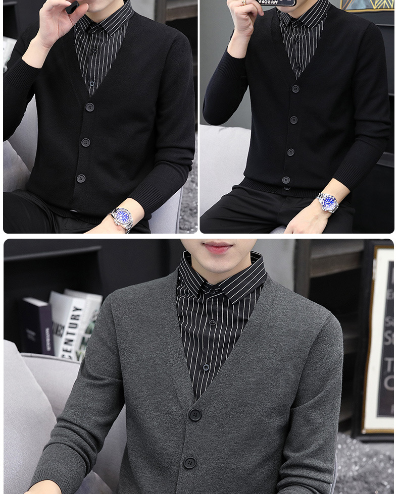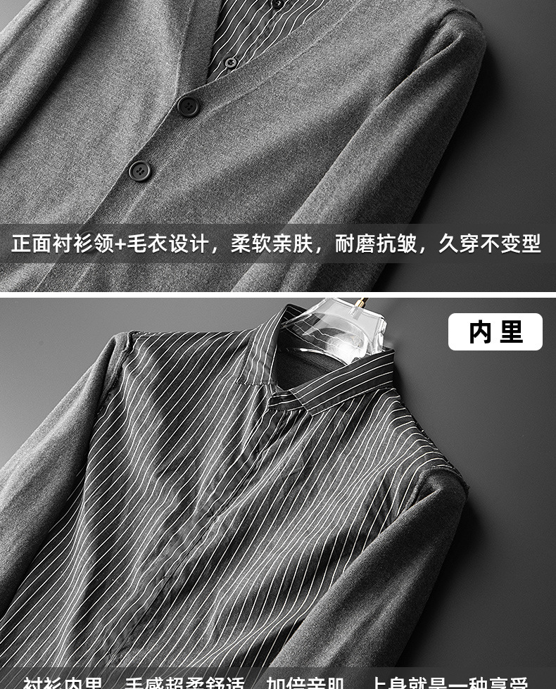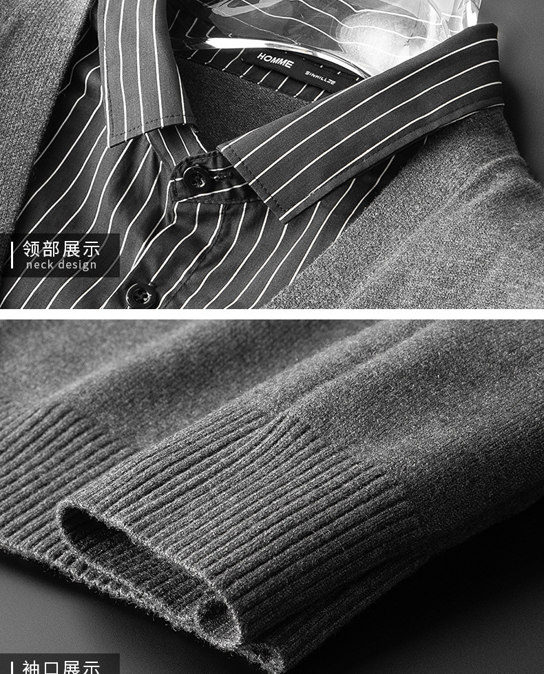 기모 두툼한 니트 패치 남성 셔츠 두 벌 칼라 캐주얼 니트 2025 스웨터 겨울 신상