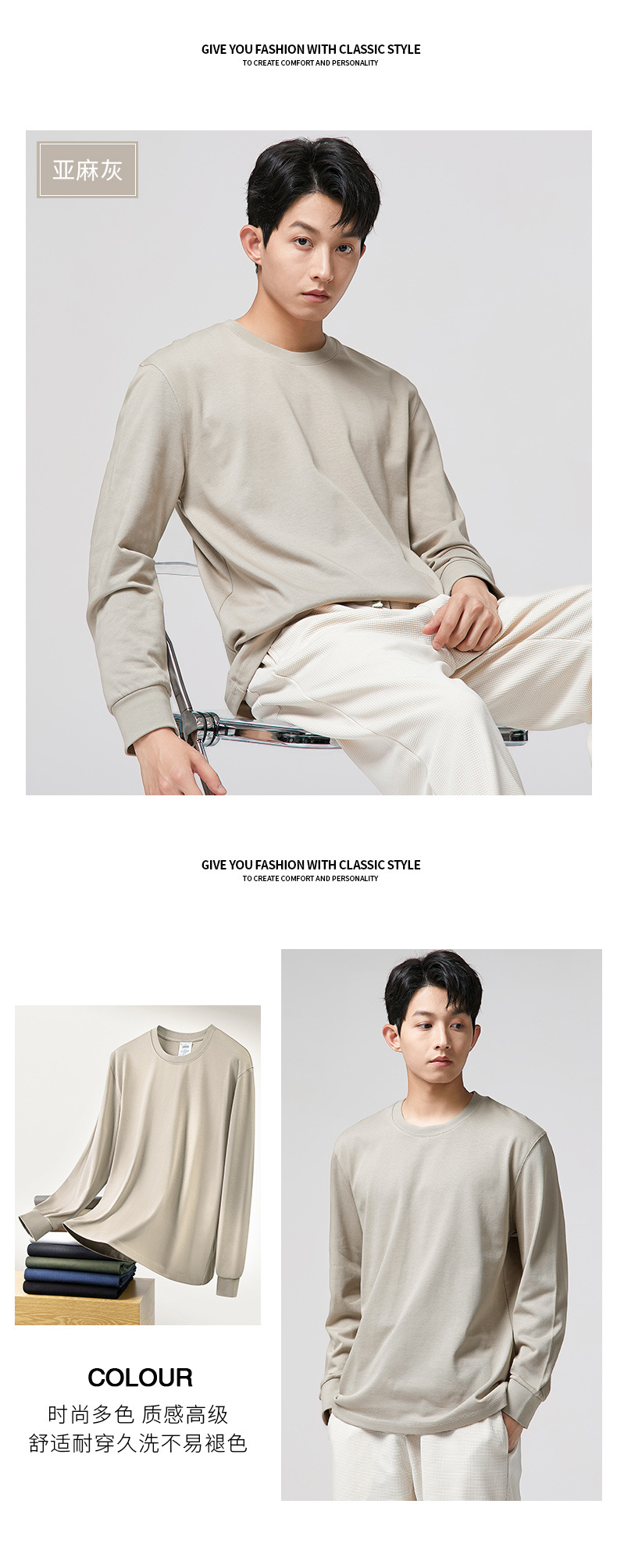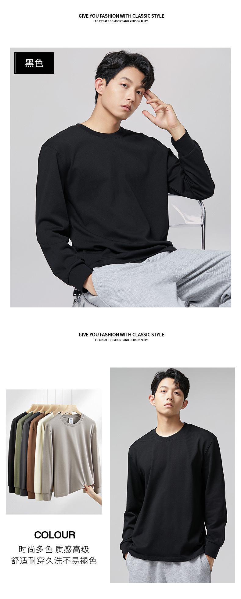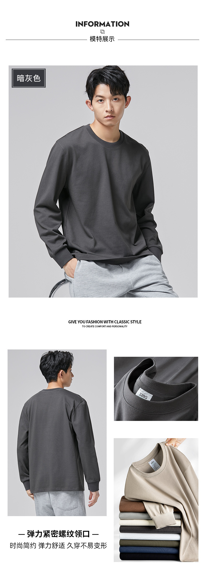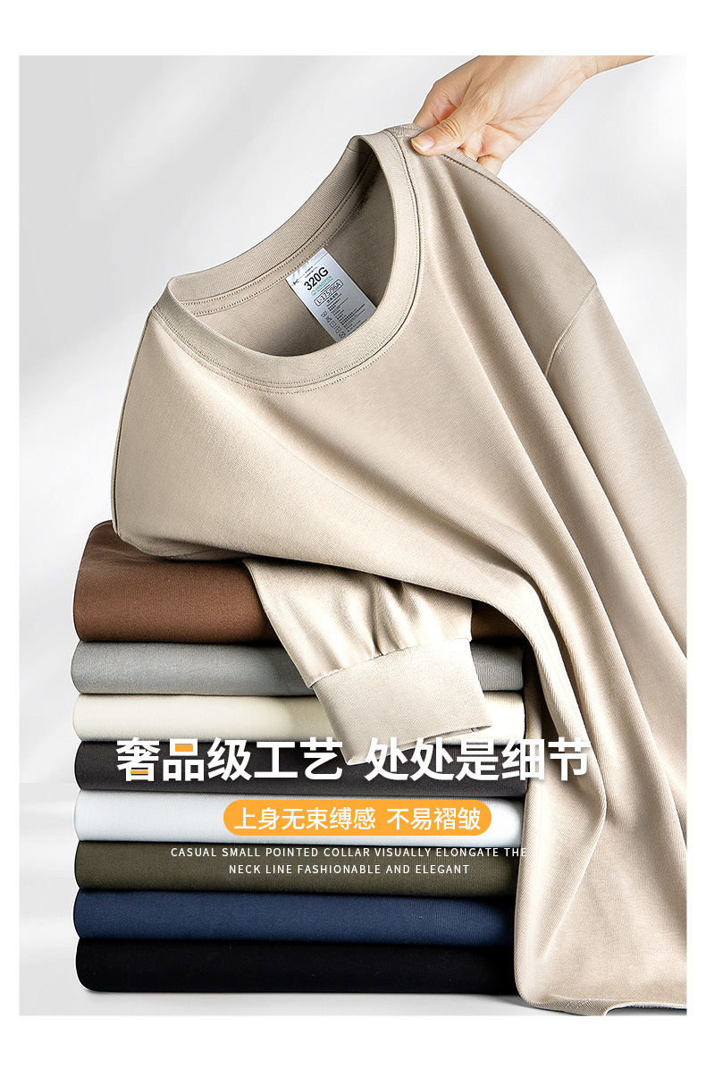 무게감 320g 코튼 긴팔 티셔츠 남자 봄가을 이너 캐주얼 블랙 트렌드 맨투맨 이너 탑 남자