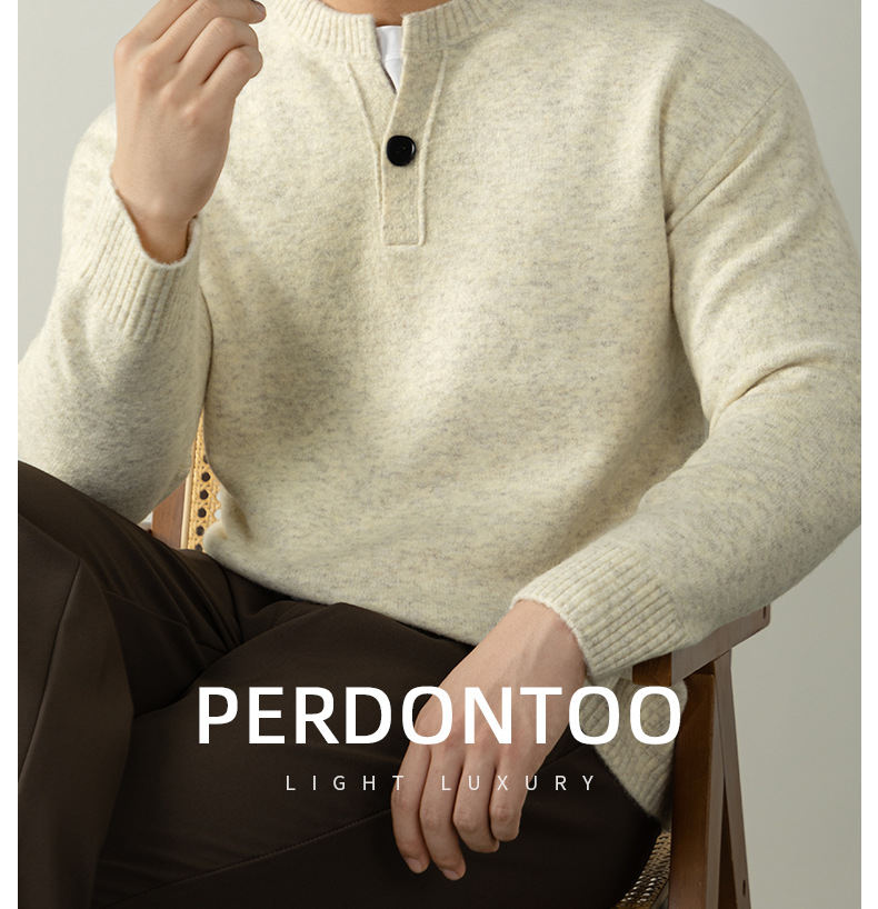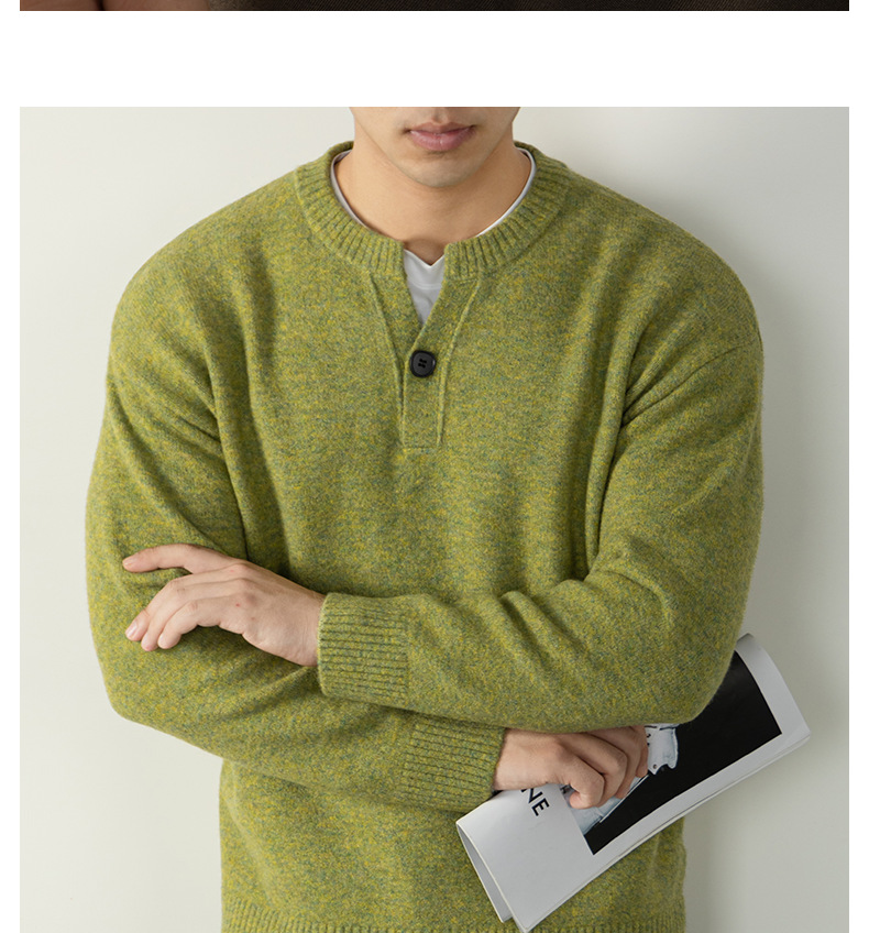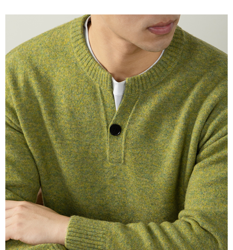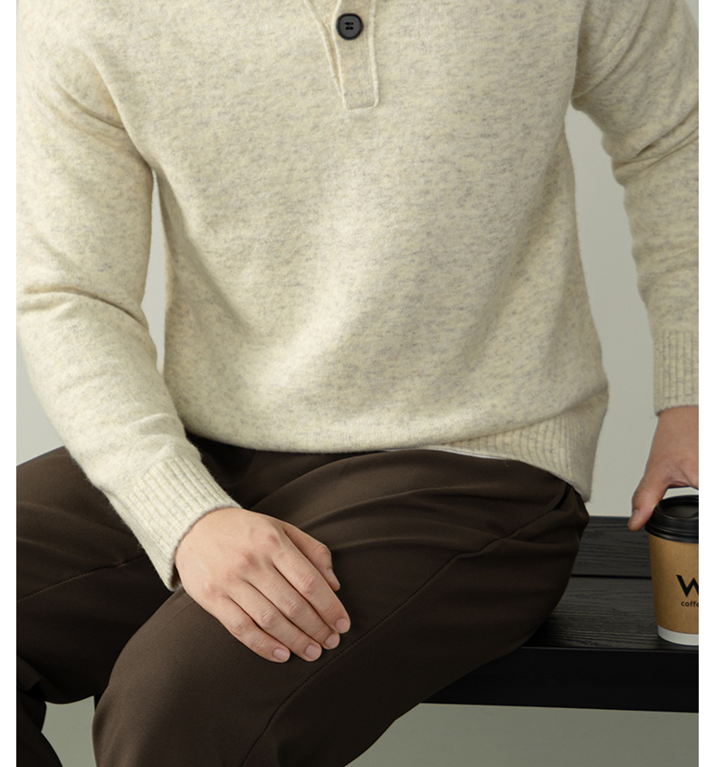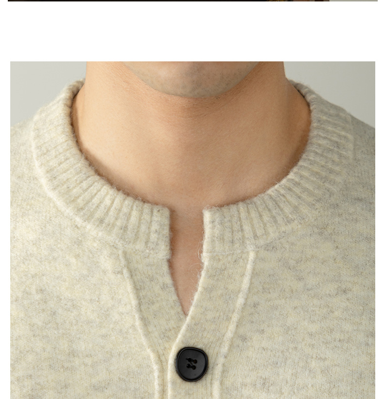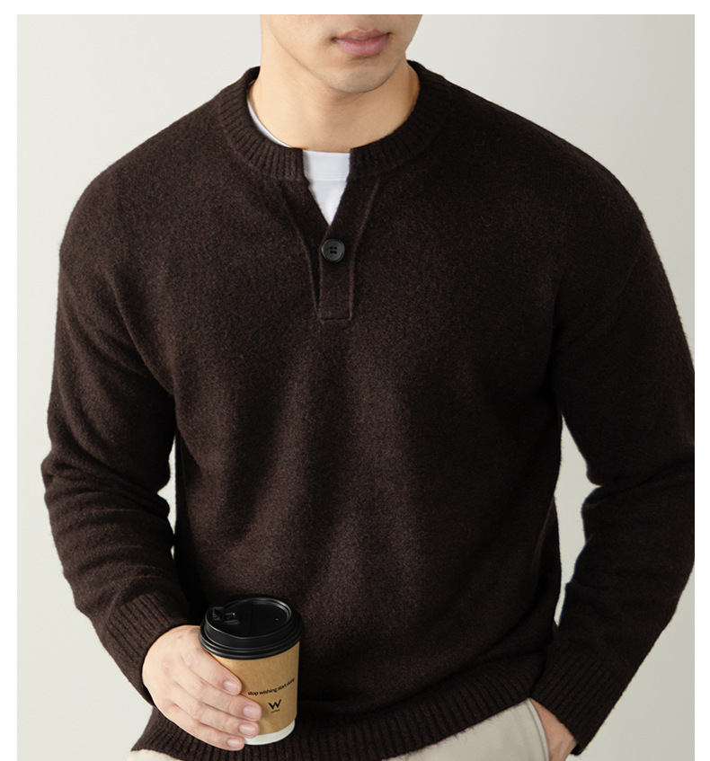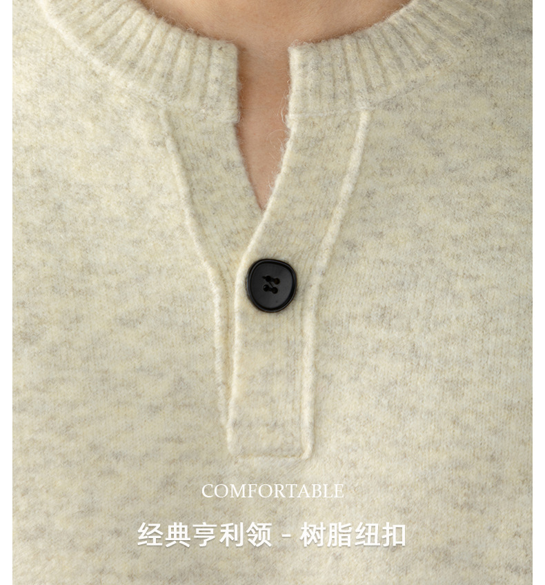 내추럴 울 싱글 단추 헨리넥 스웨터 남성 캐주얼하고 늘어짐 있는 가을 겨울 니트입니다