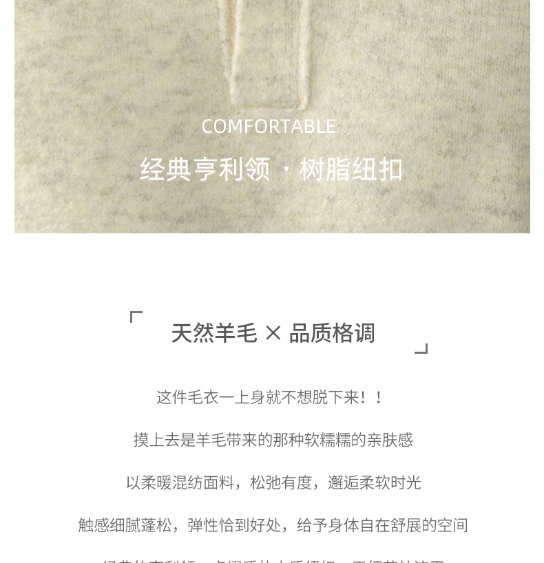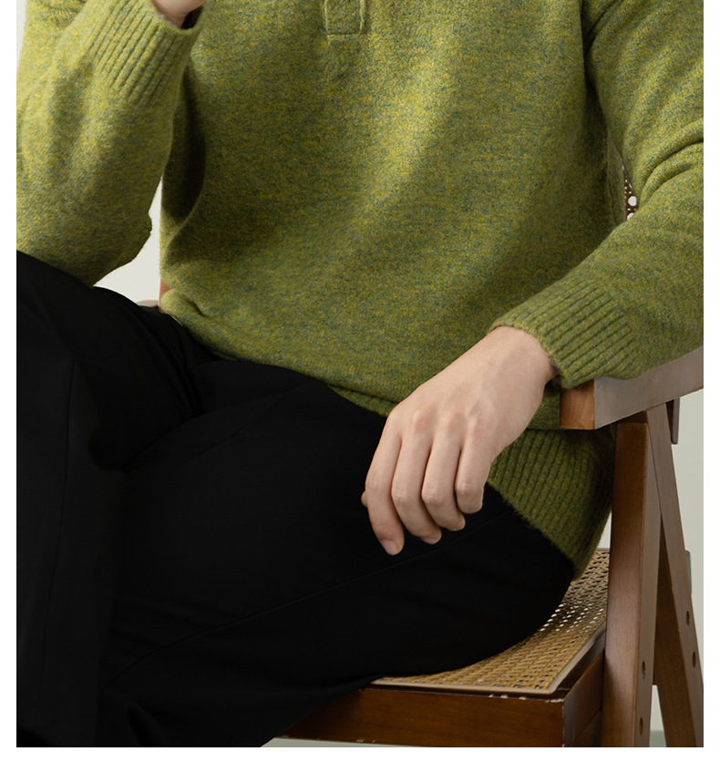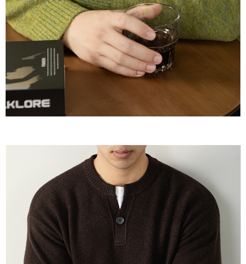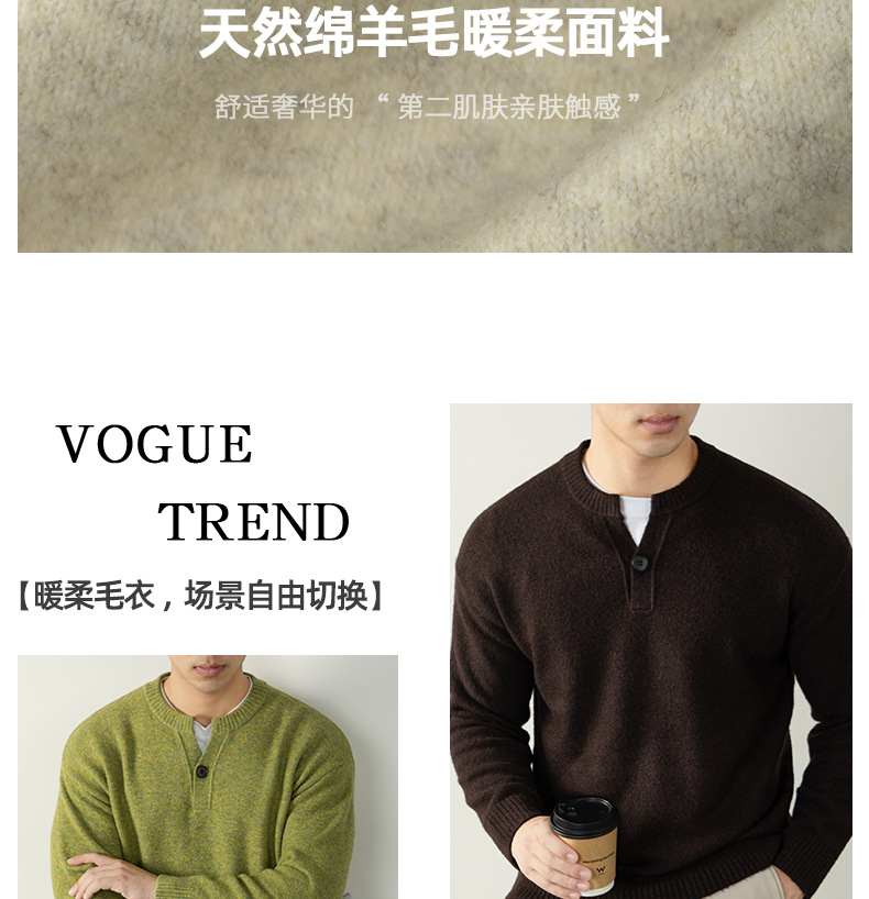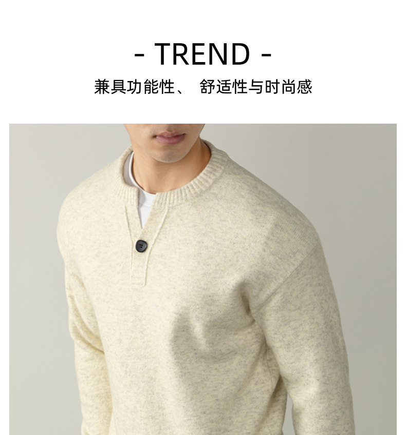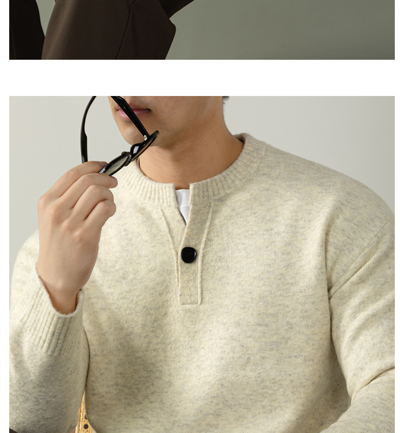 내추럴 울 싱글 단추 헨리넥 스웨터 남성 캐주얼하고 늘어짐 있는 가을 겨울 니트입니다