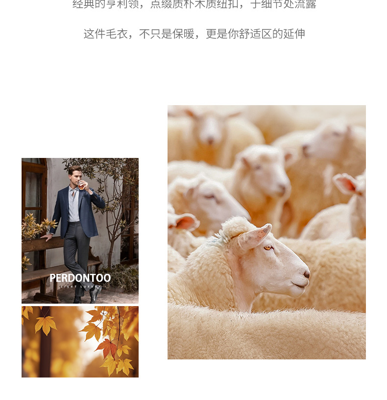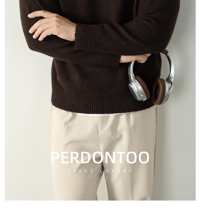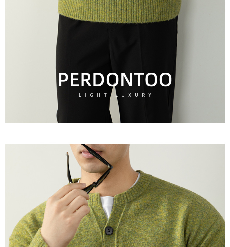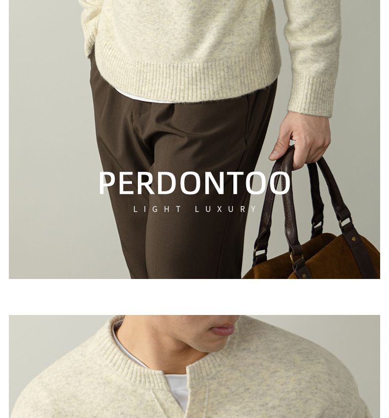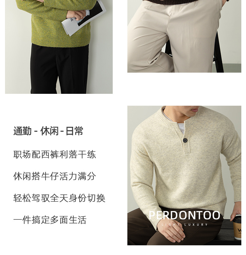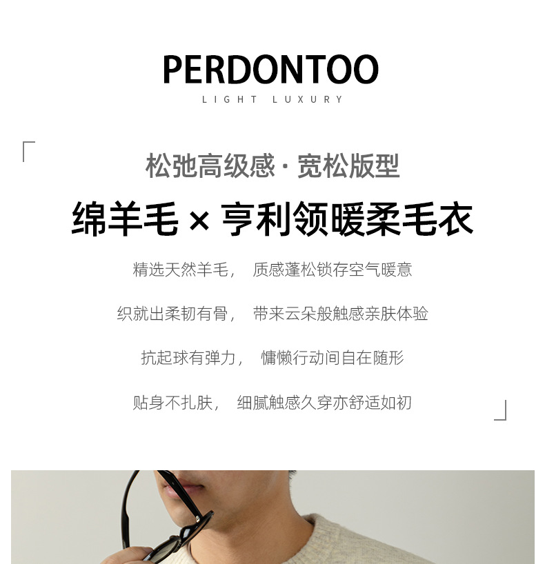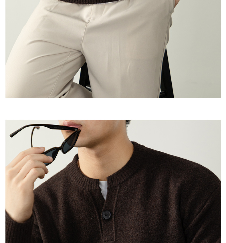 내추럴 울 싱글 단추 헨리넥 스웨터 남성 캐주얼하고 늘어짐 있는 가을 겨울 니트입니다