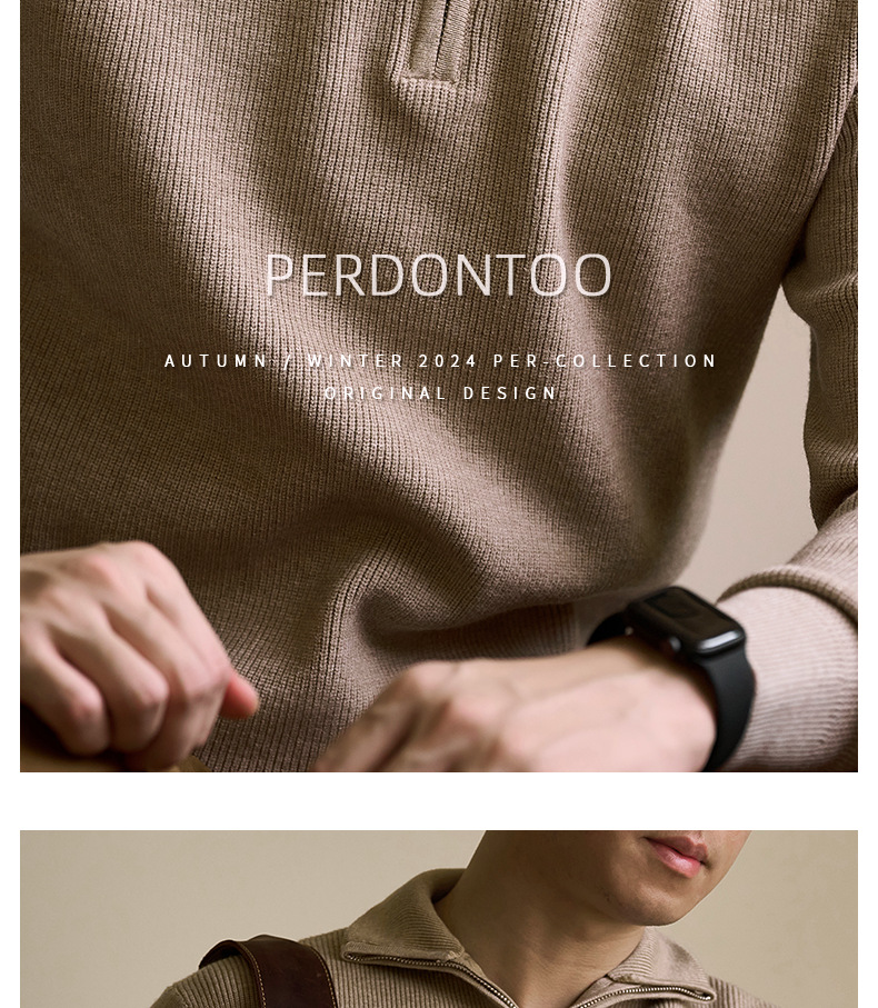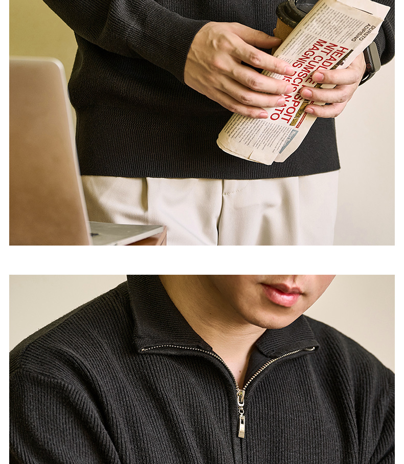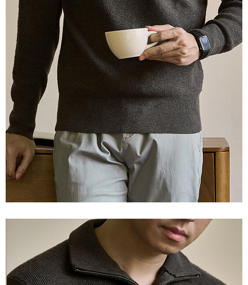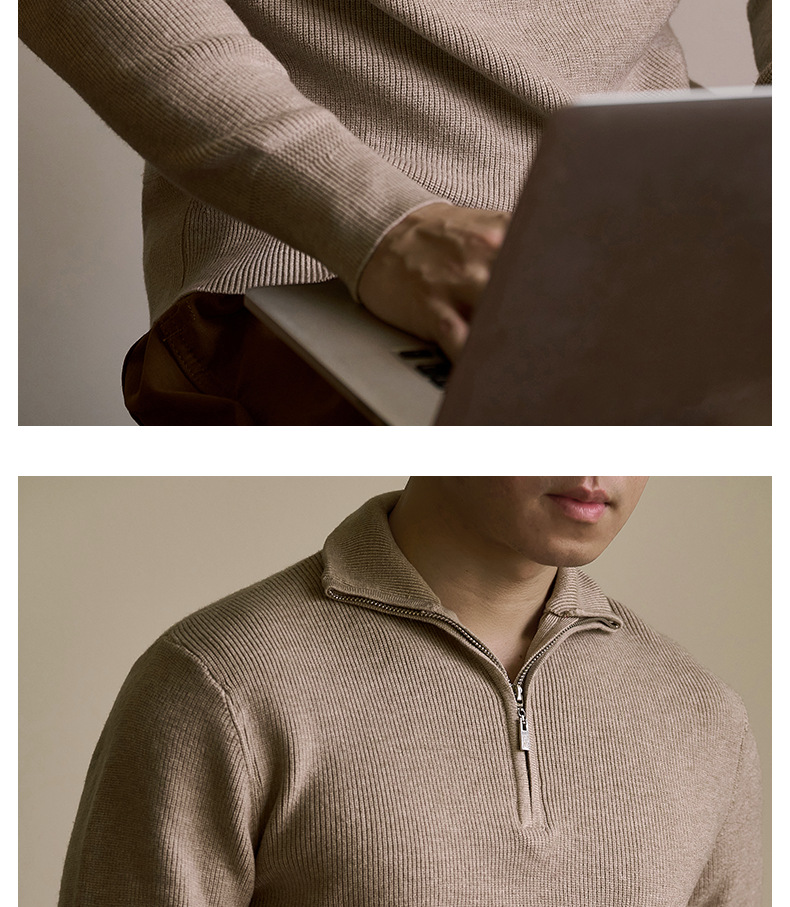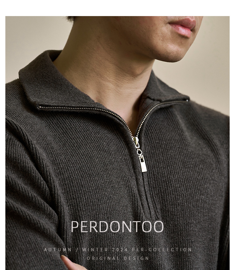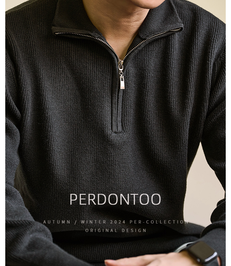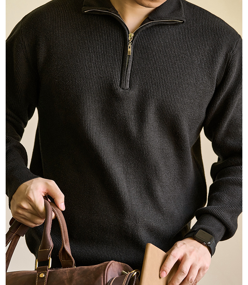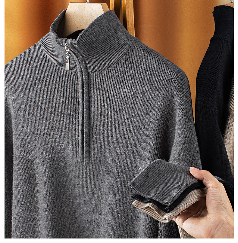 럭셔리 울 지퍼 칼라 니트 남성 보온 스킨 스웨터 가을 겨울 전용