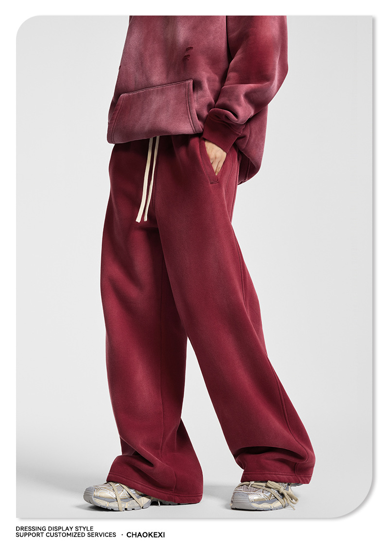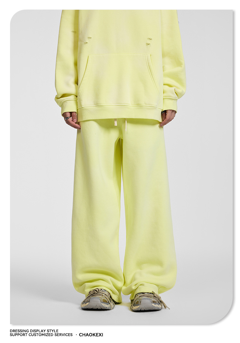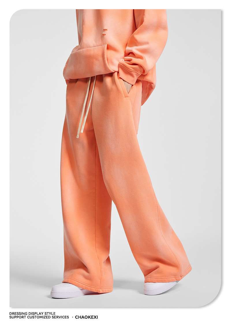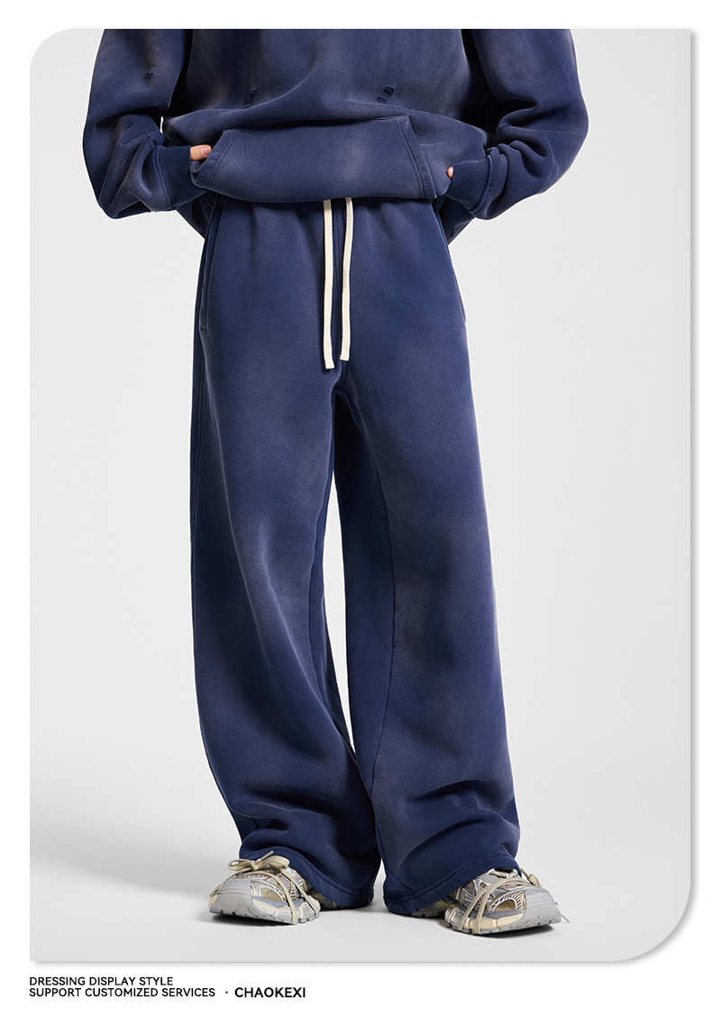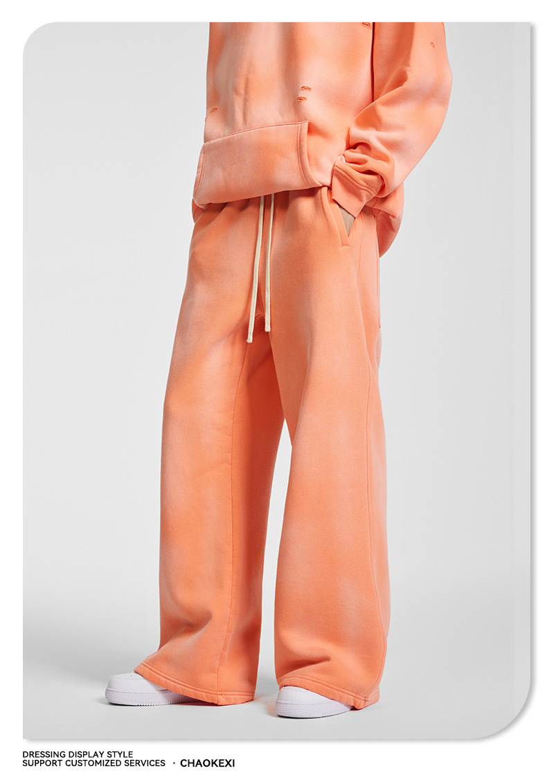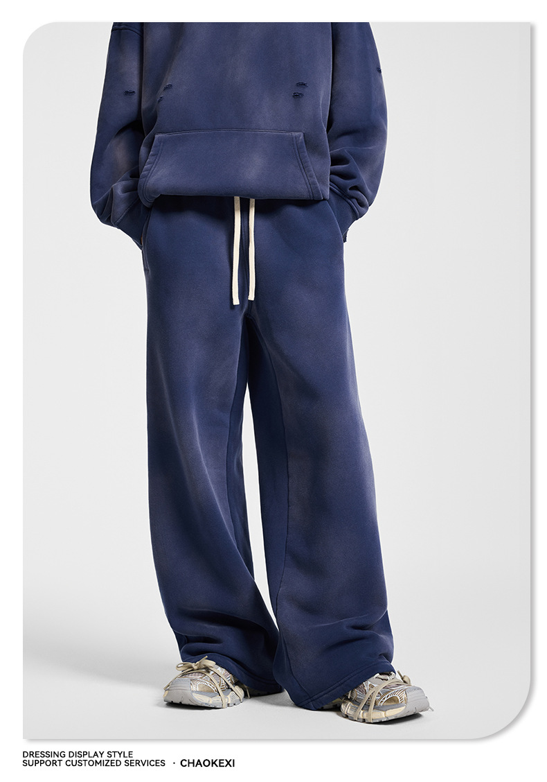 秋冬 新款 男装 加绒 宽松 破洞 男女 卫裤 美式 潮牌 阔腿