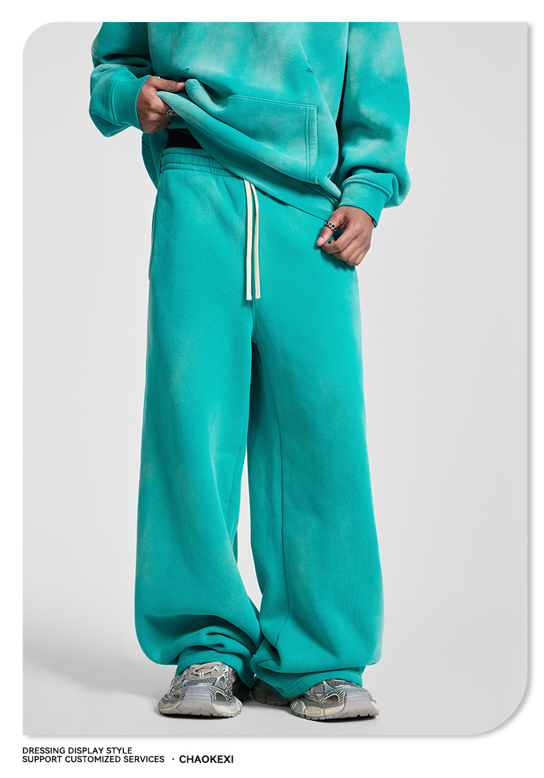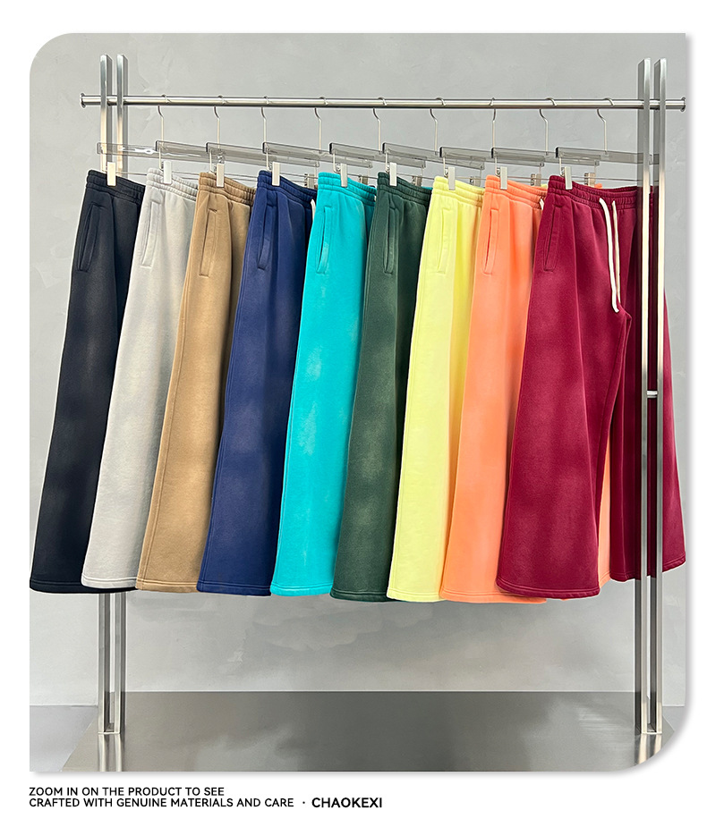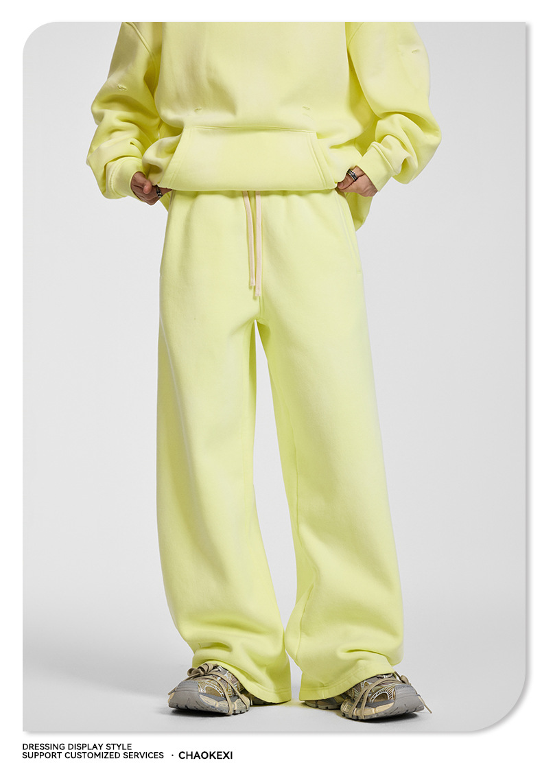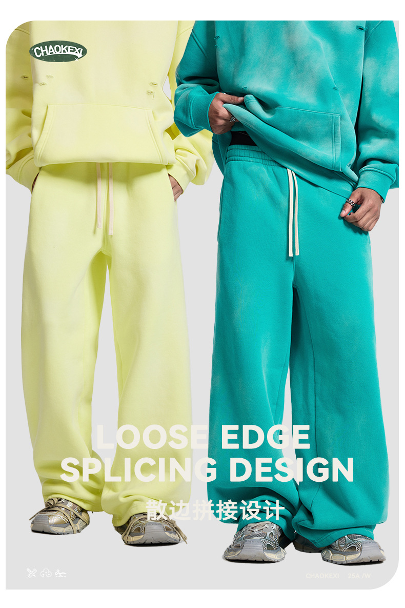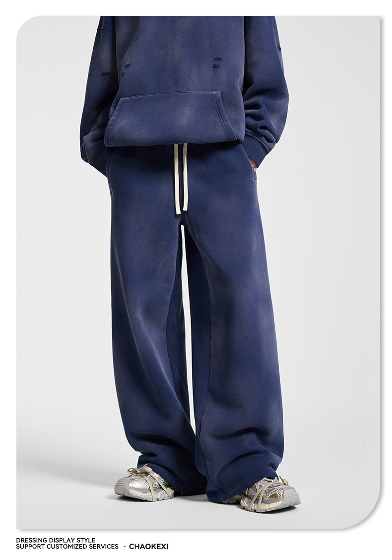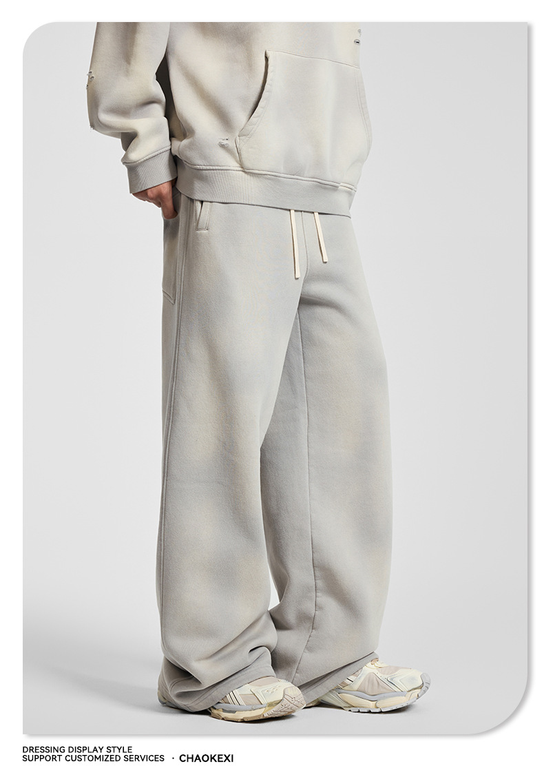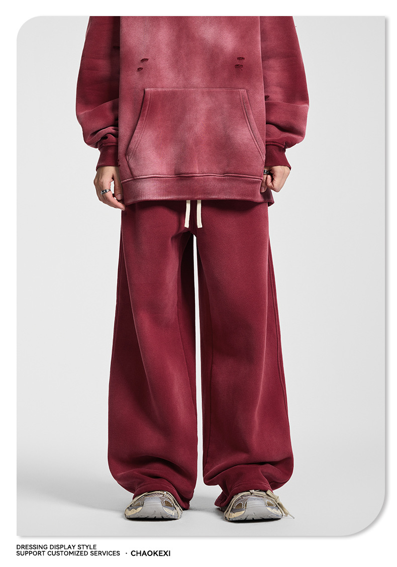 秋冬 新款 男装 加绒 宽松 破洞 男女 卫裤 美式 潮牌 阔腿