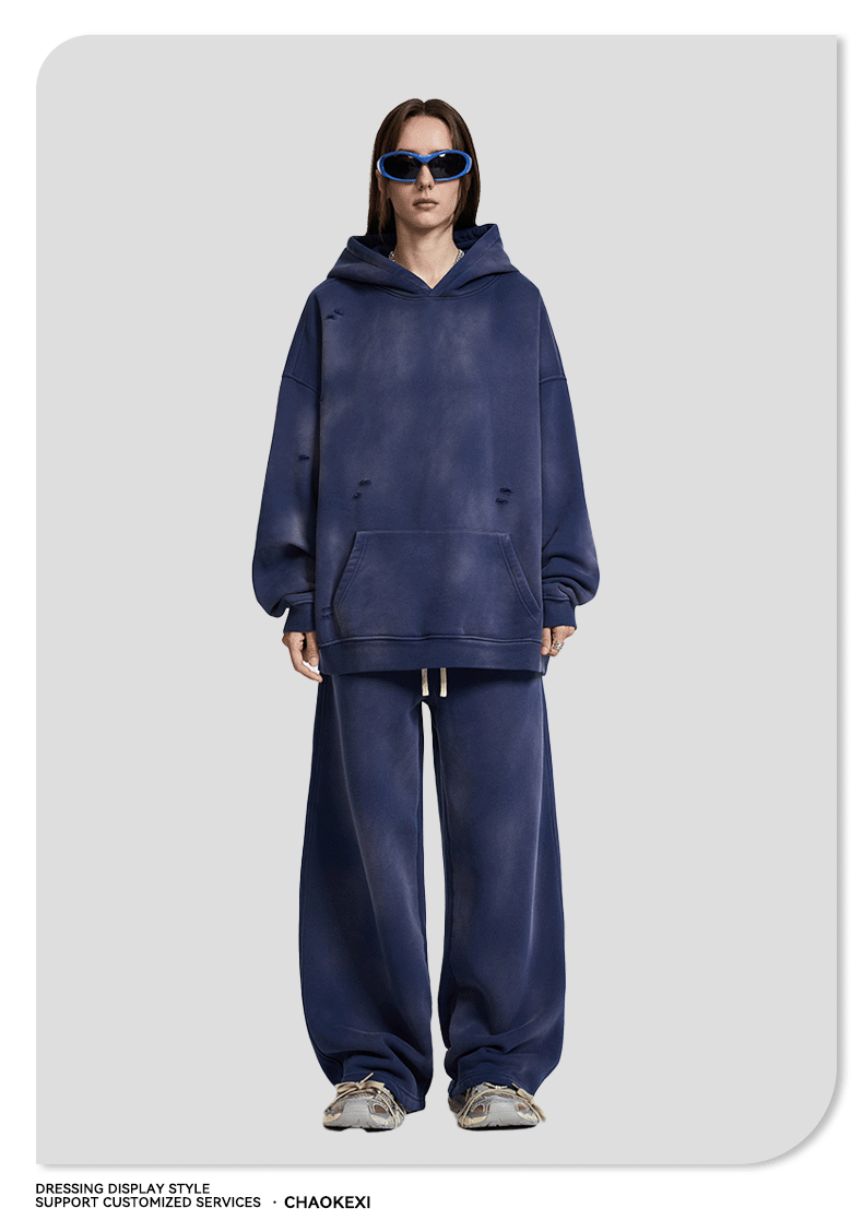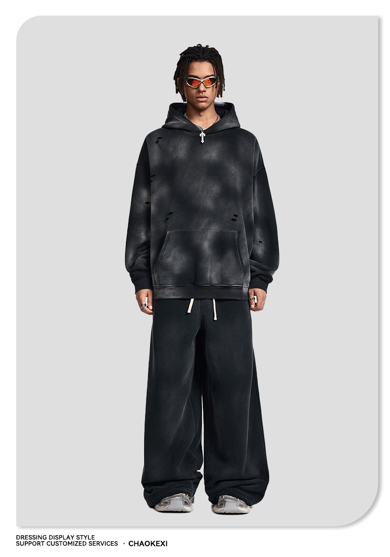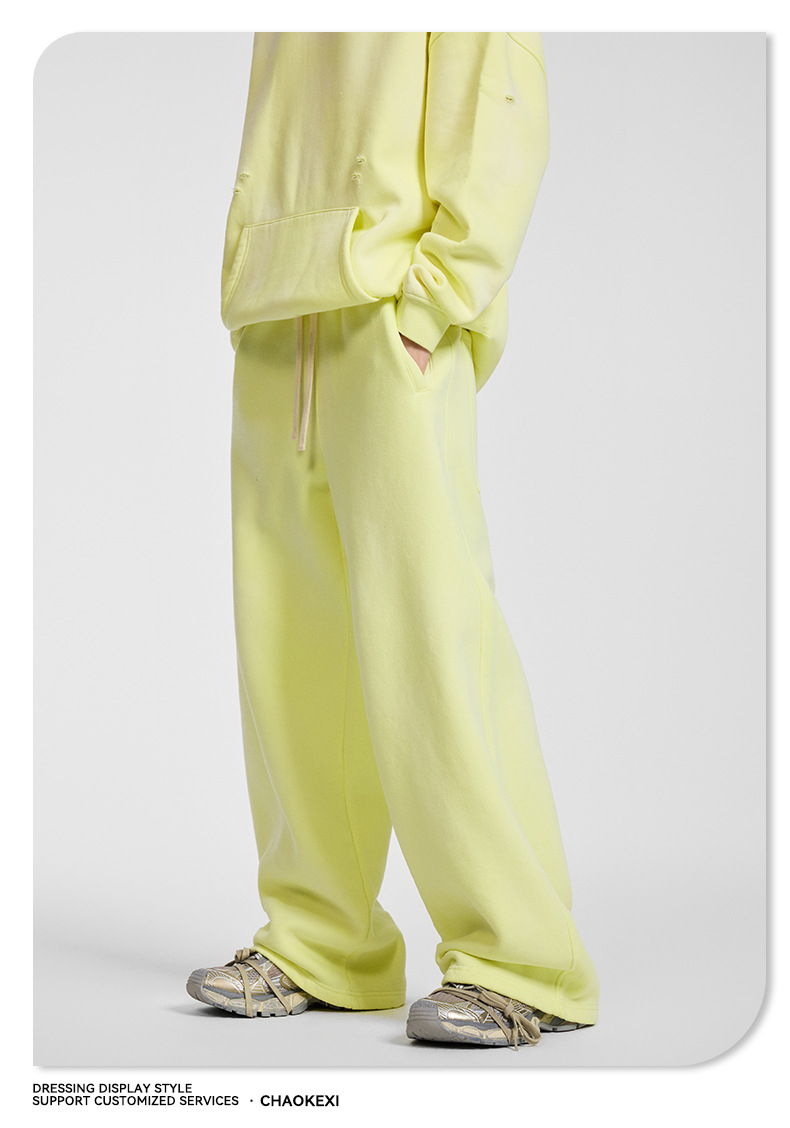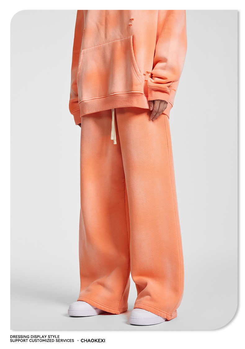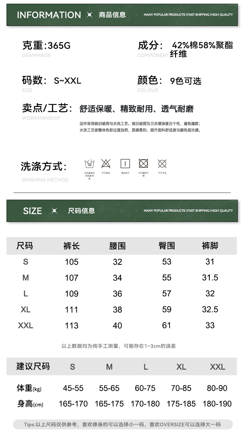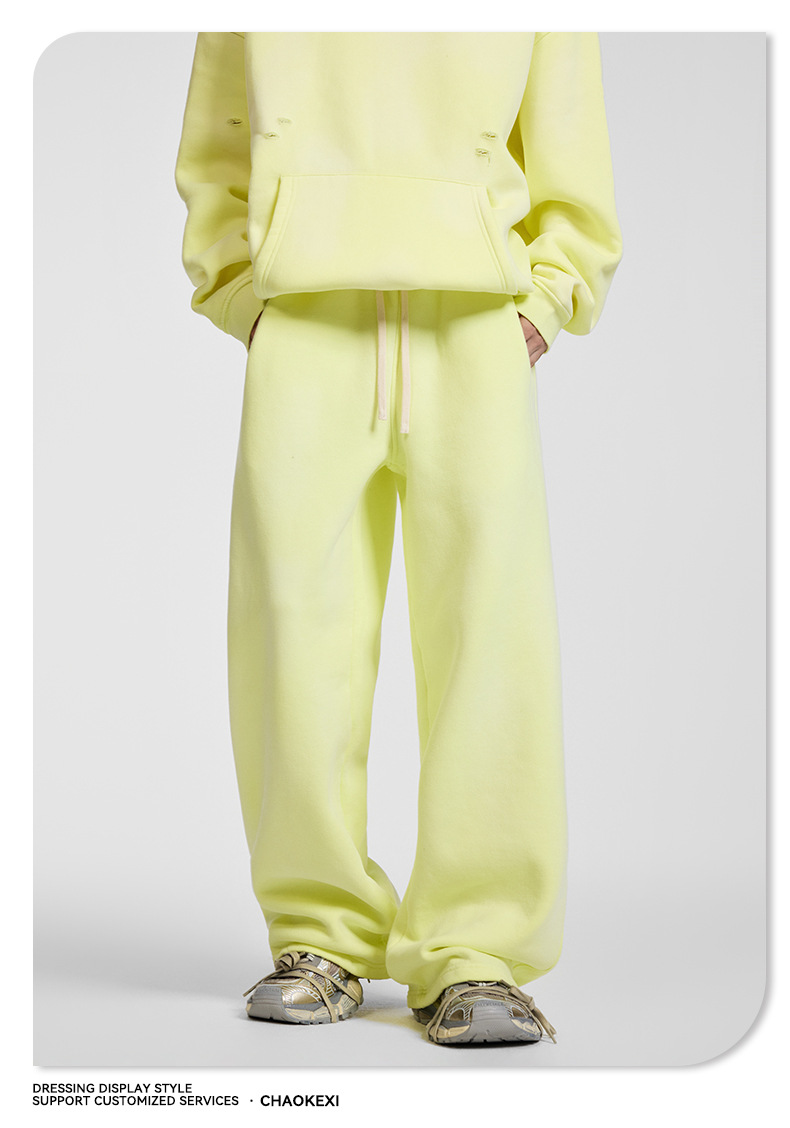 秋冬 新款 男装 加绒 宽松 破洞 男女 卫裤 美式 潮牌 阔腿