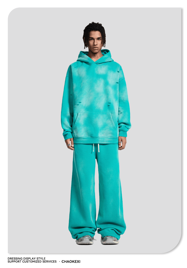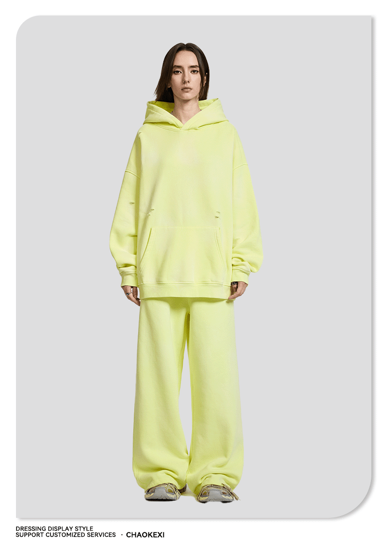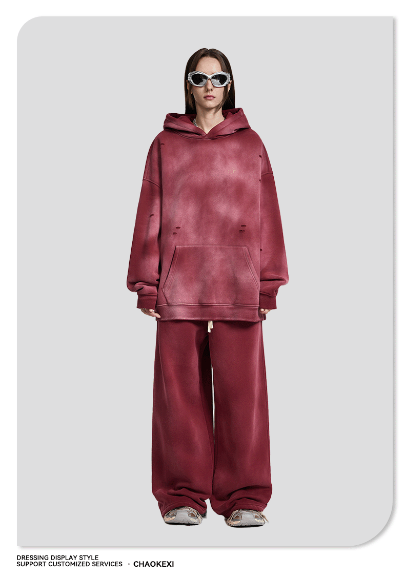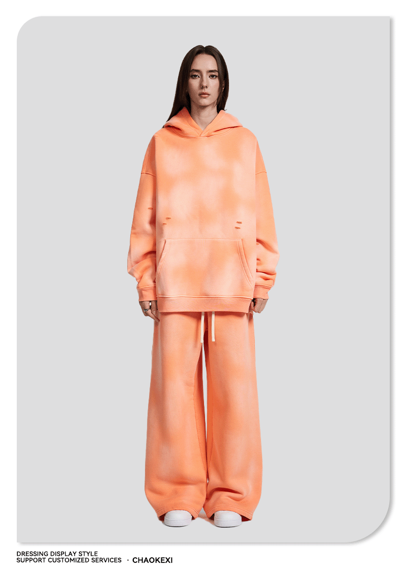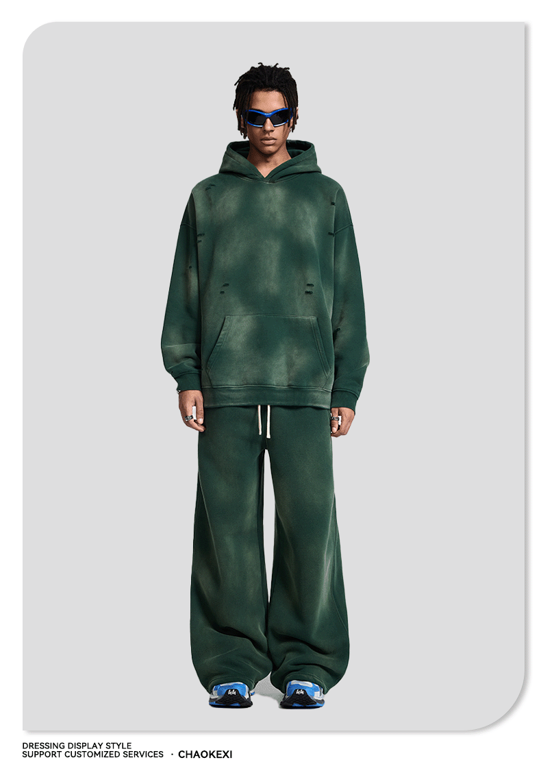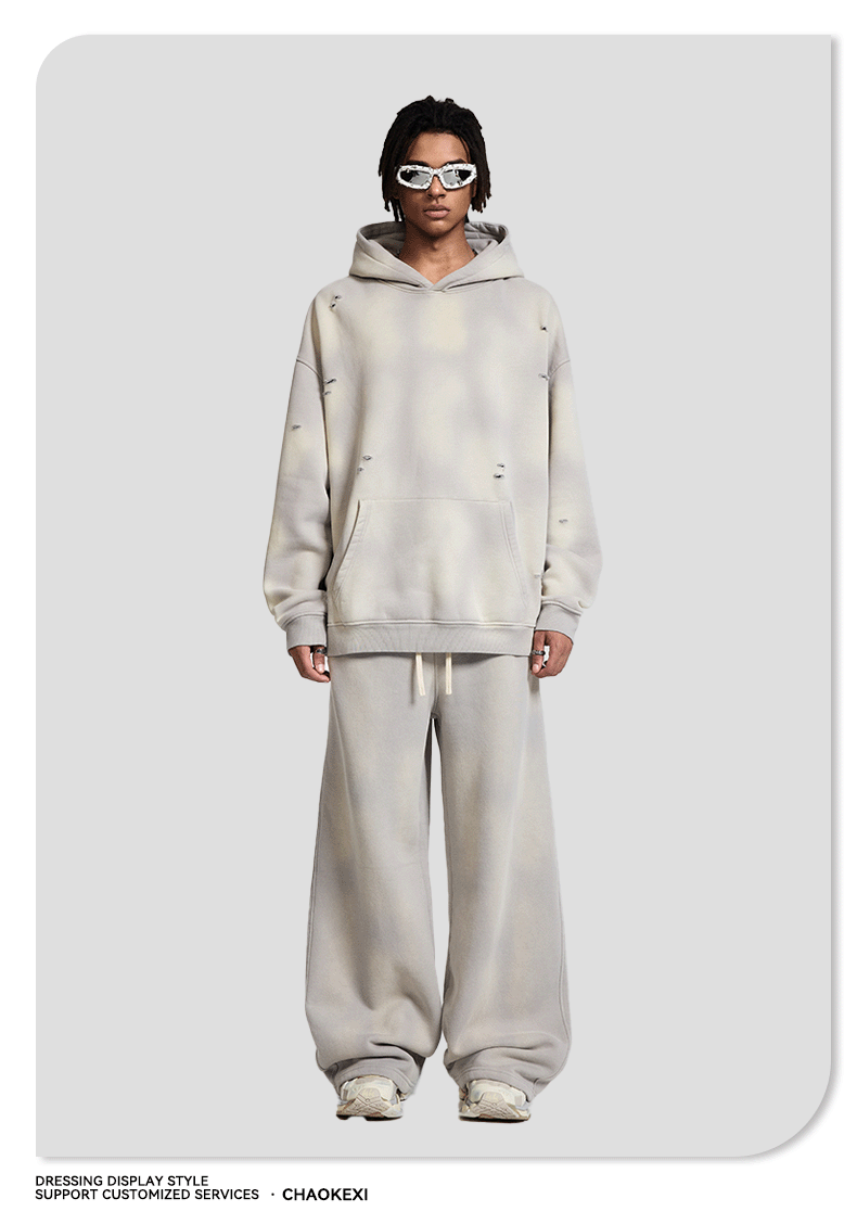 秋冬 新款 男装 加绒 宽松 破洞 男女 卫裤 美式 潮牌 阔腿