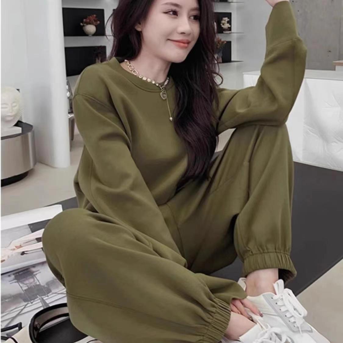 라지 사이즈 편한 레포츠 세트가을겨울 맨투맨 투피스녀