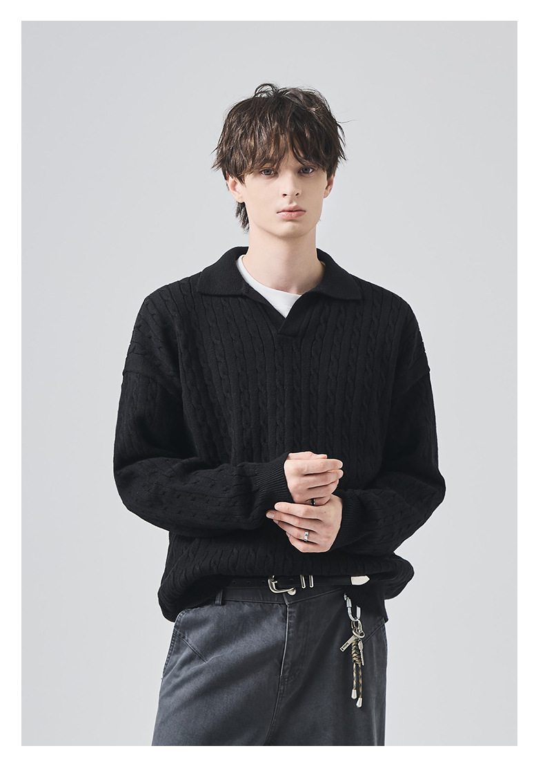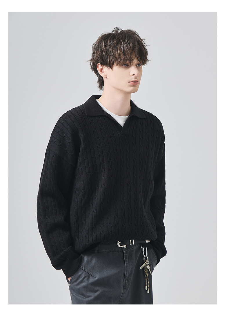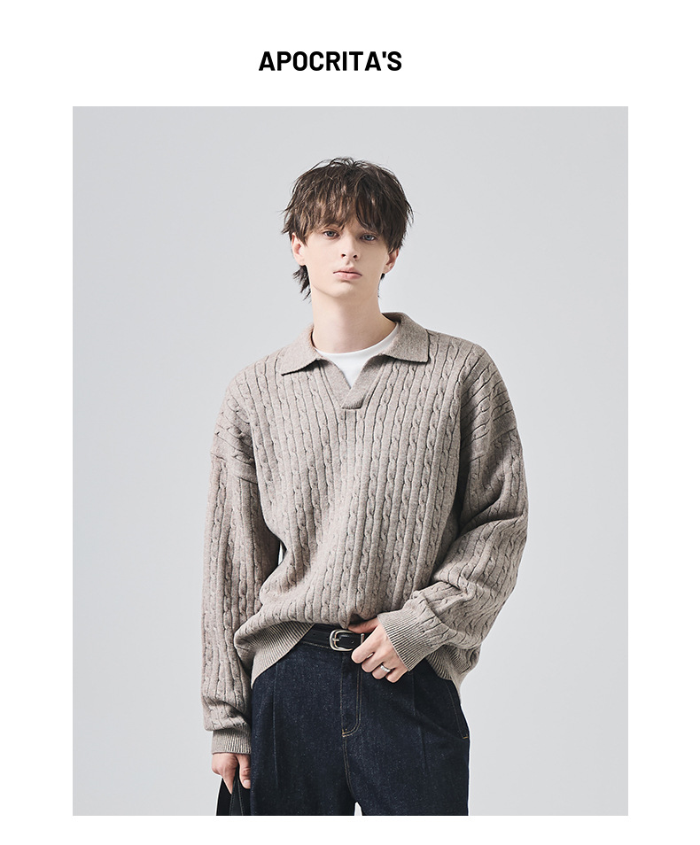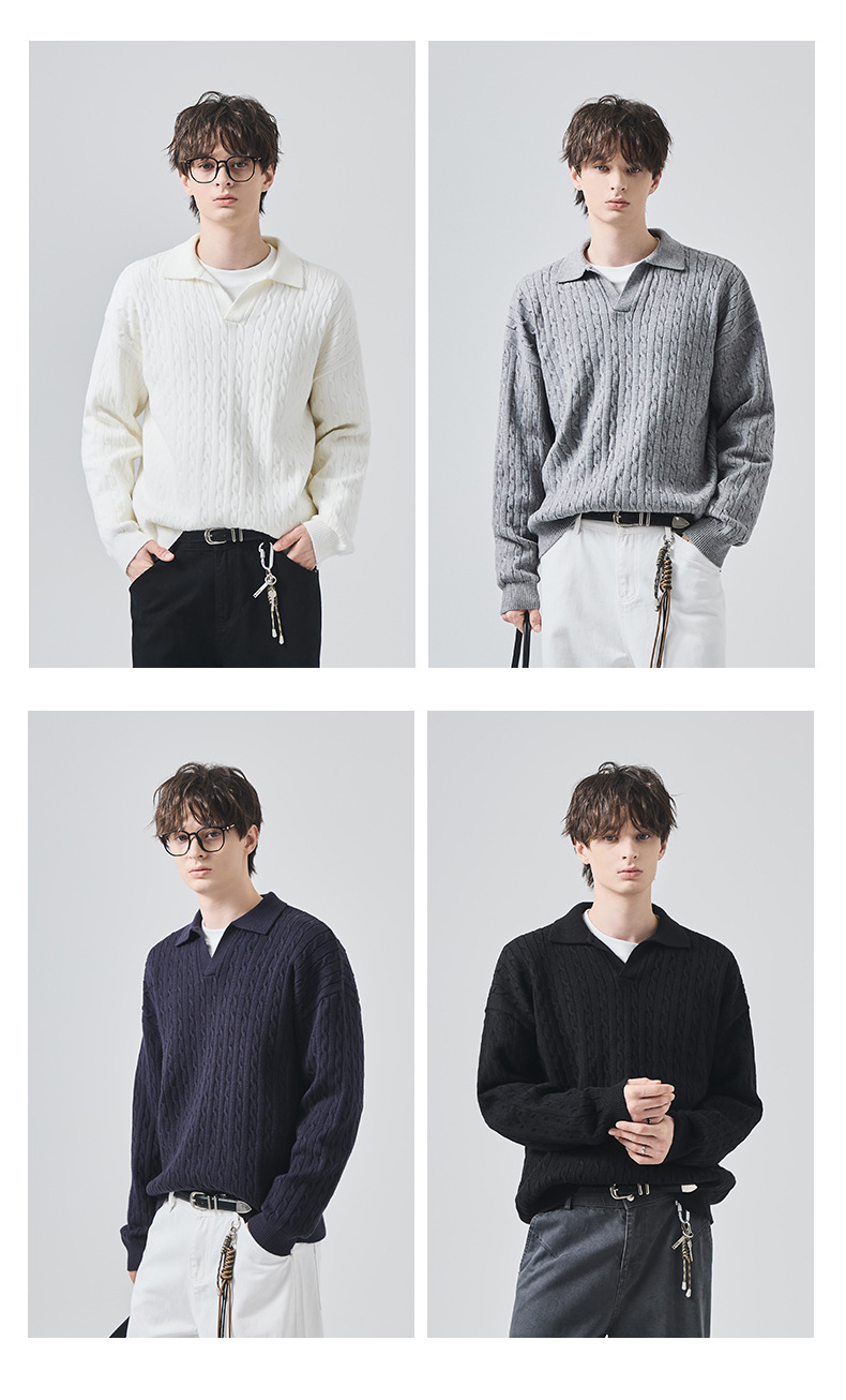 남성용 니트 남녀용 가을 겨울 고급스러움 나른한 폴로 터틀넥 트위드 니트 탑