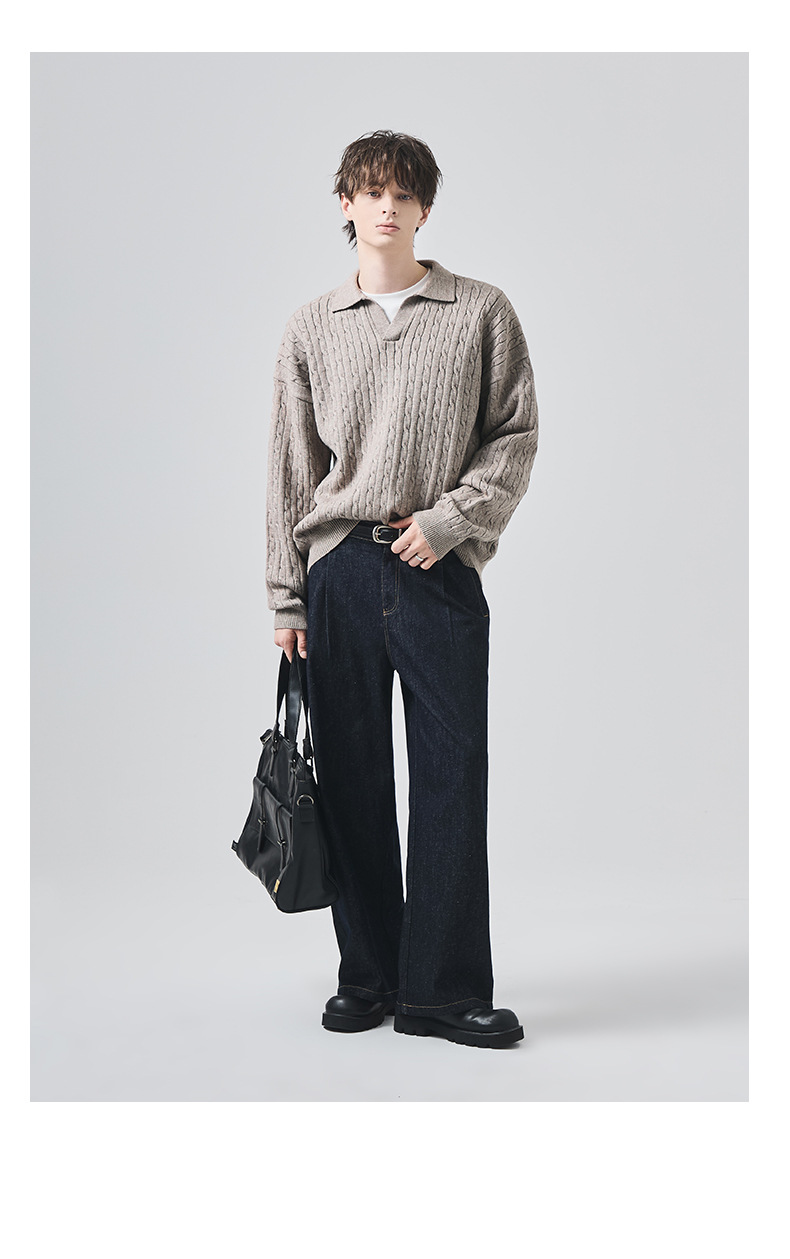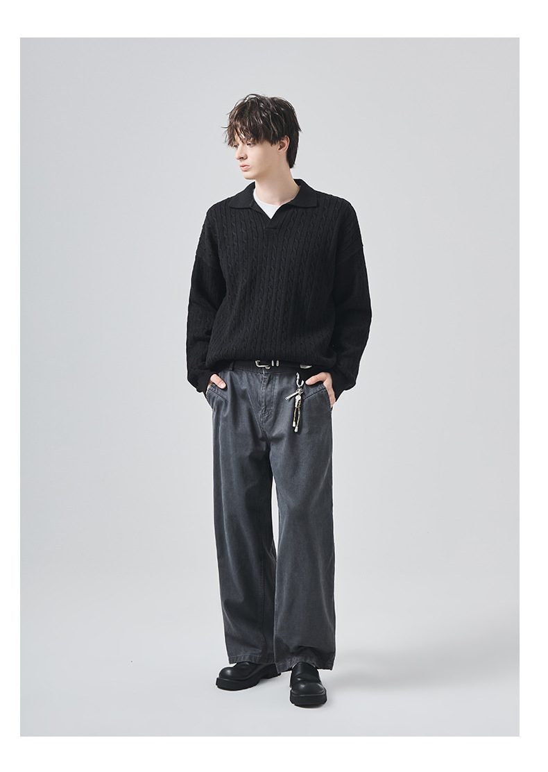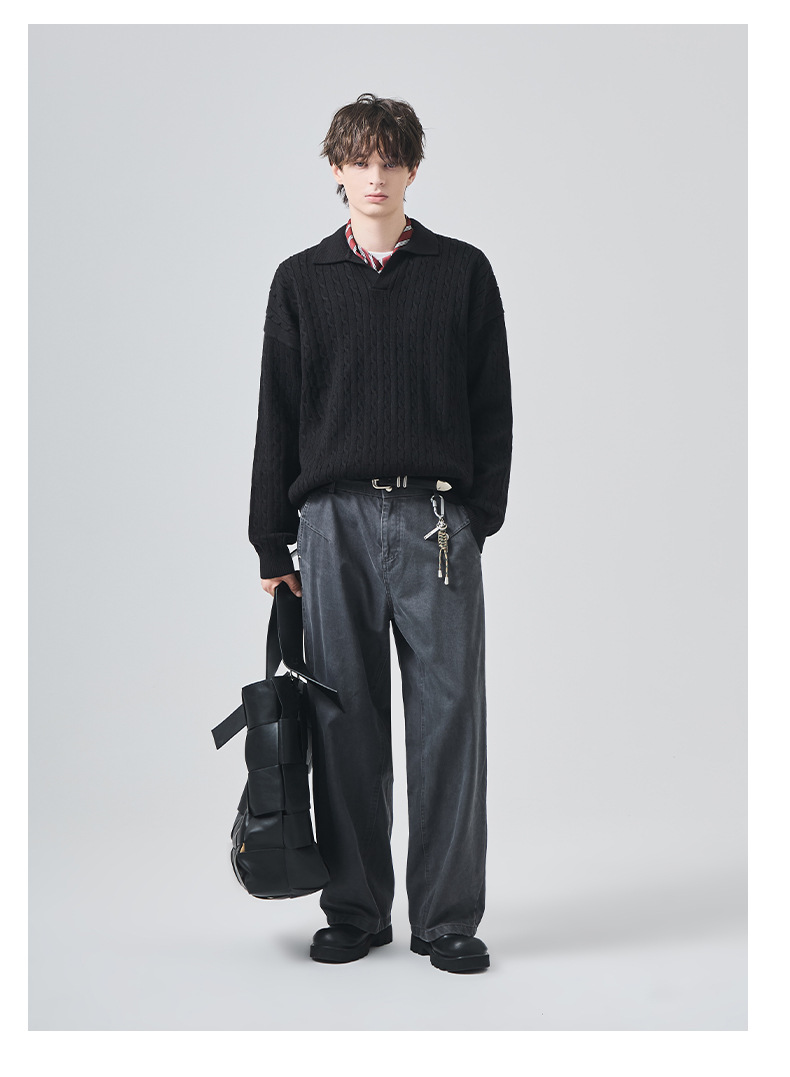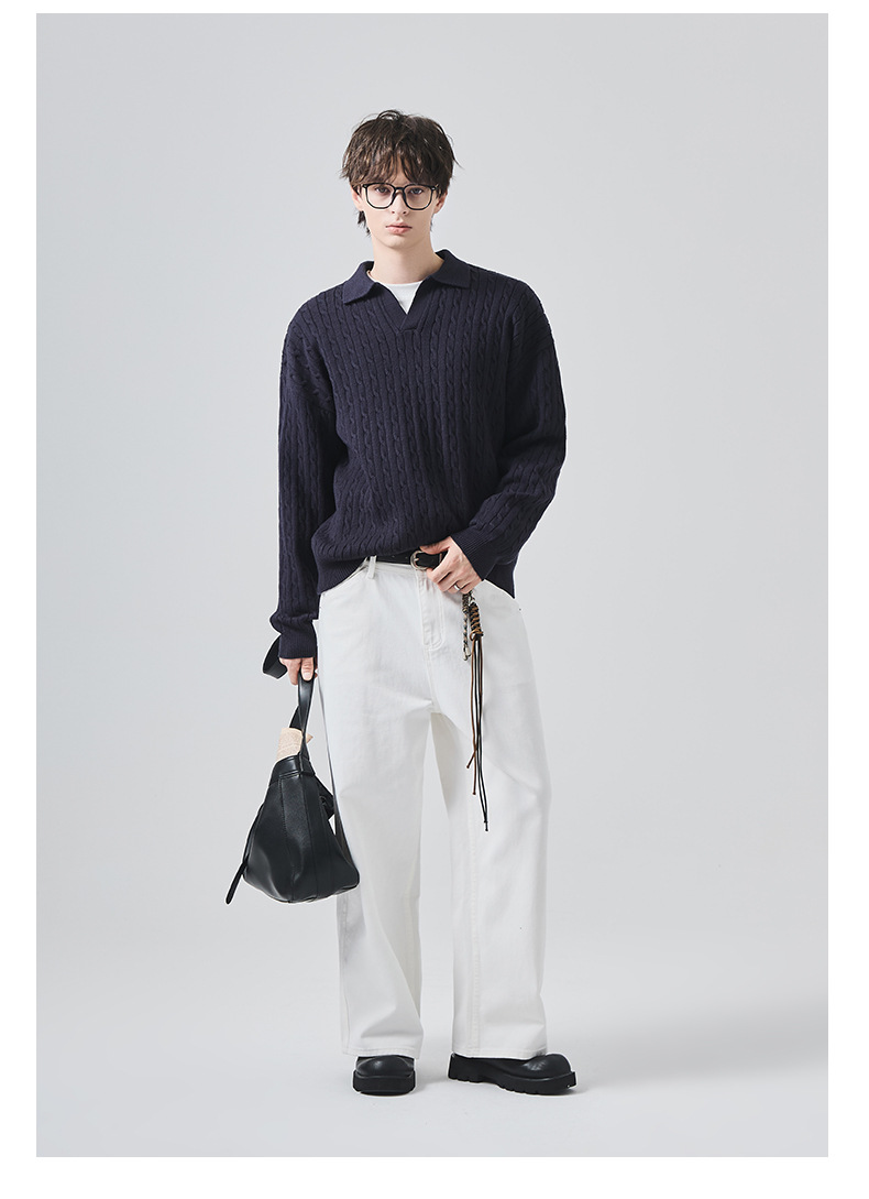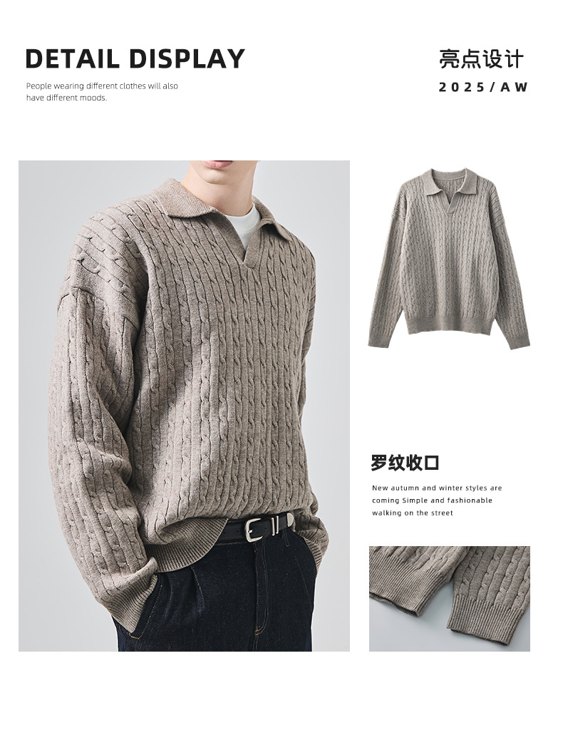 남성용 니트 남녀용 가을 겨울 고급스러움 나른한 폴로 터틀넥 트위드 니트 탑