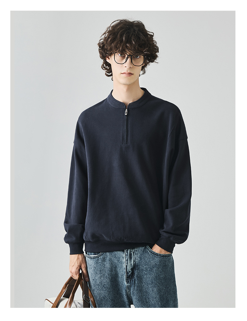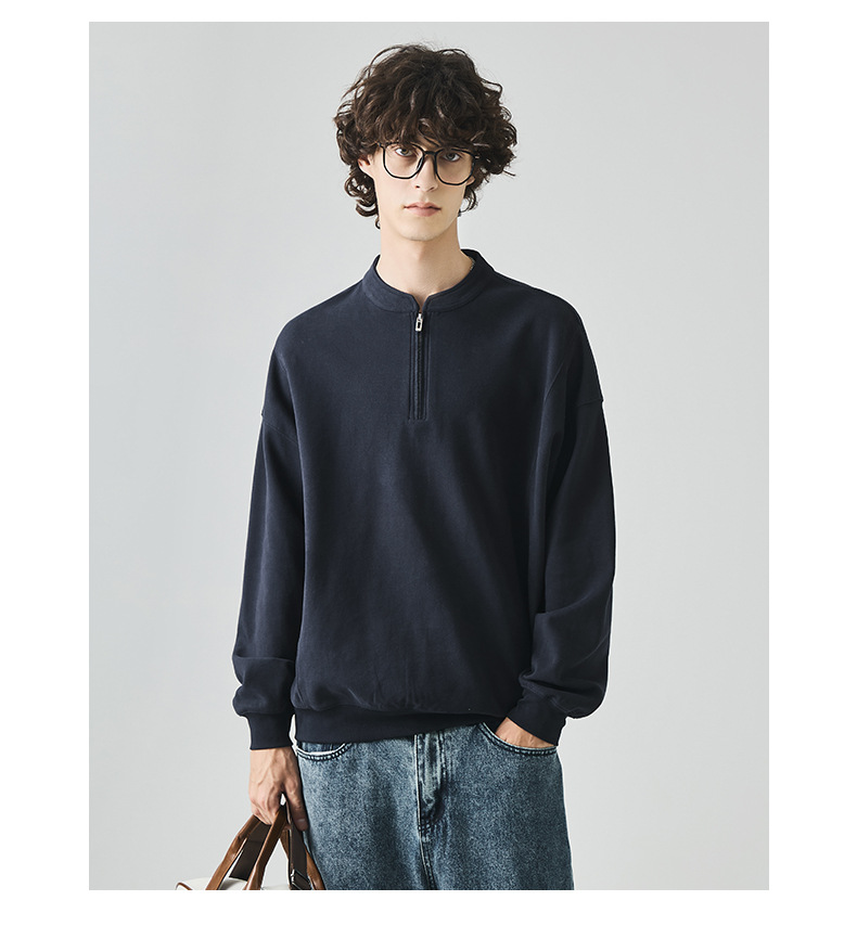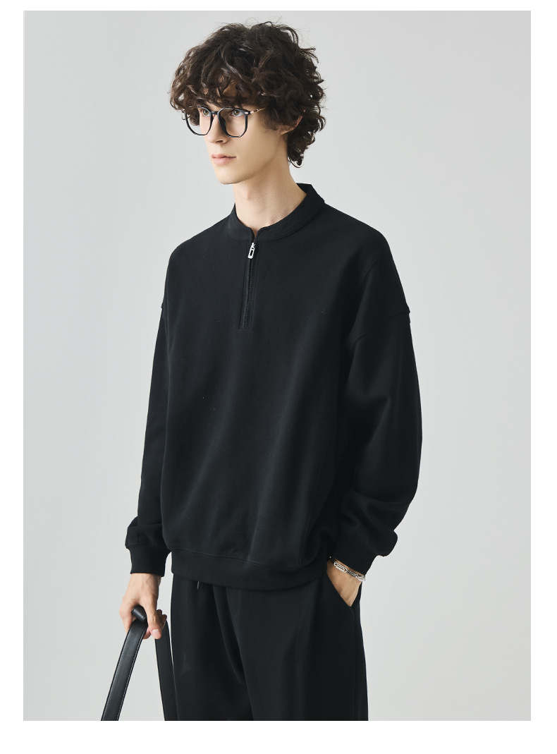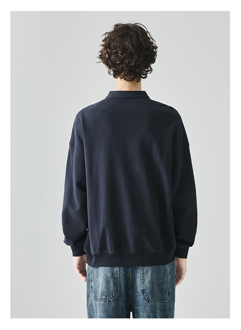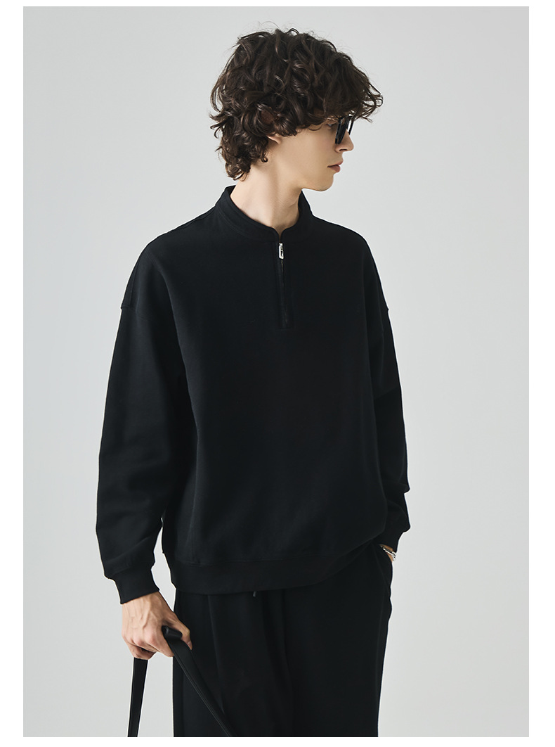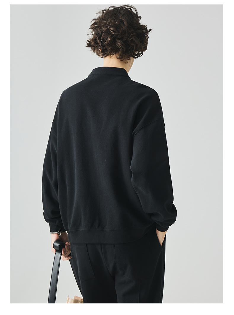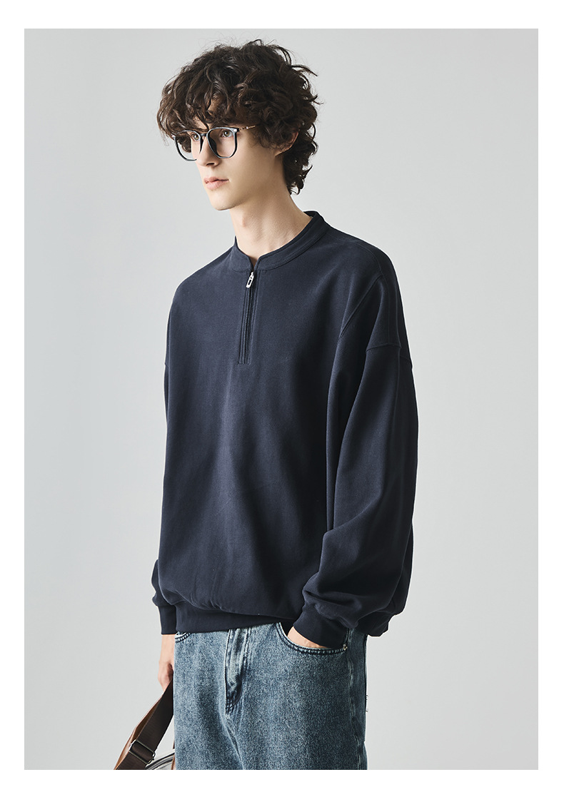 남성복 반집업 맨투맨 남성 가을 루즈한 차이나 브러싱 솔리드 이너 롱 슬리브 티셔츠