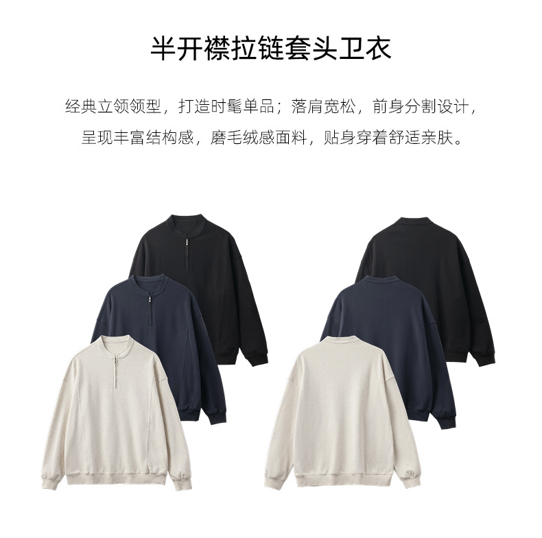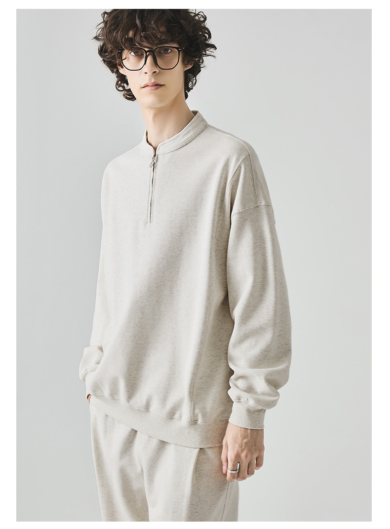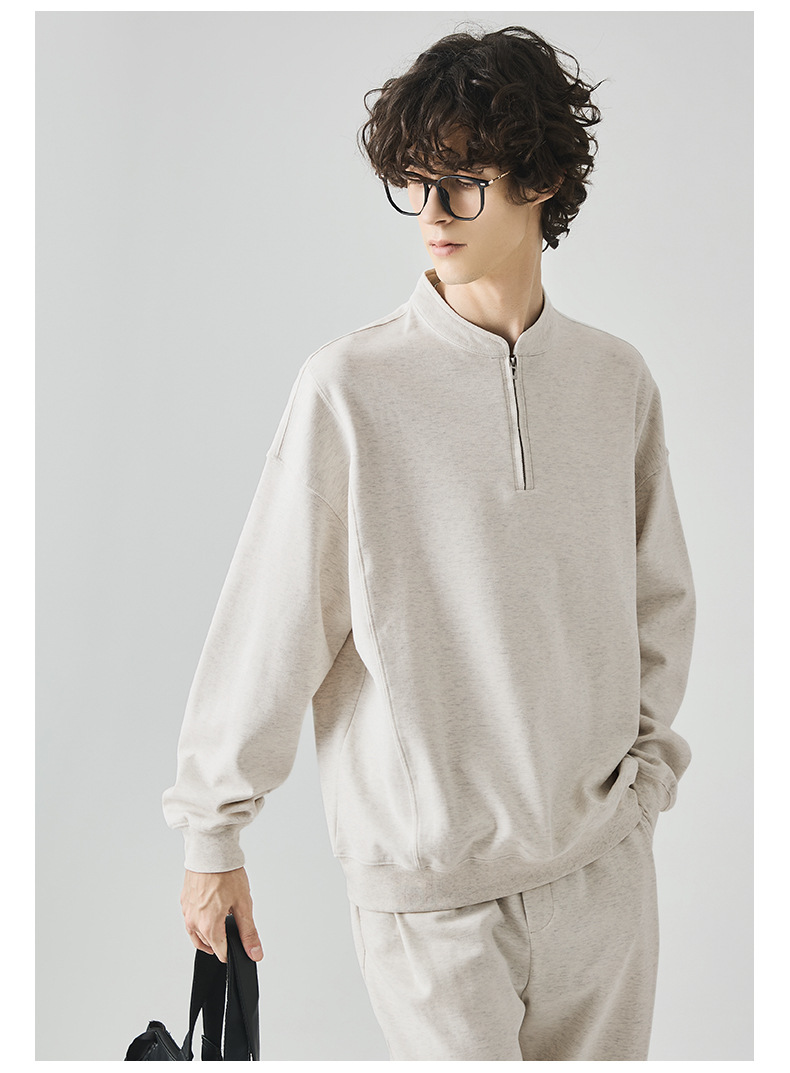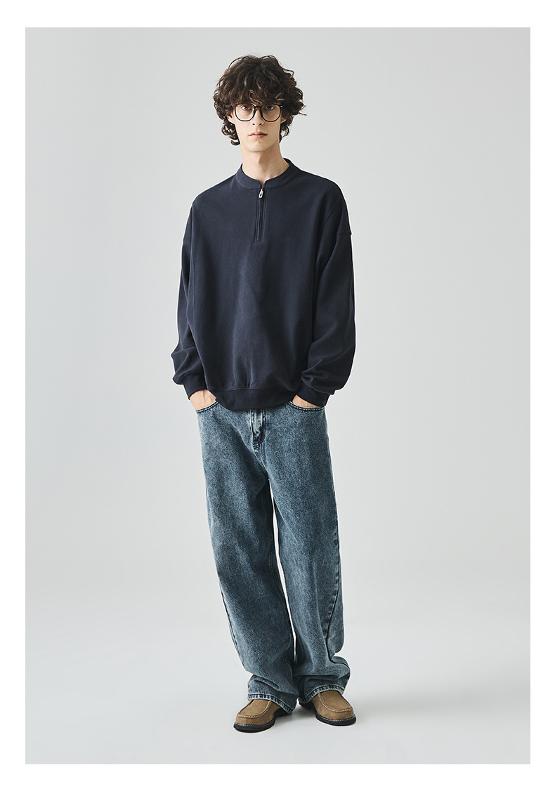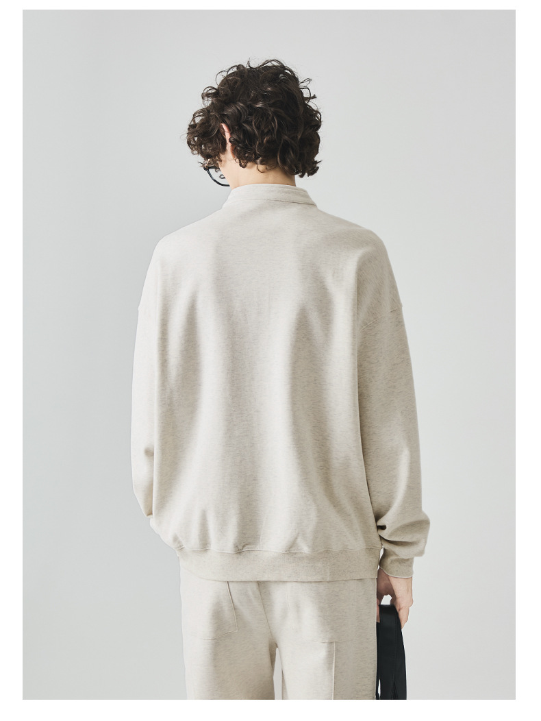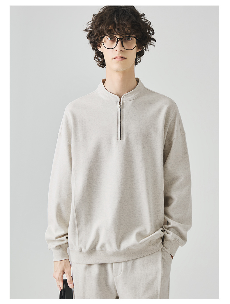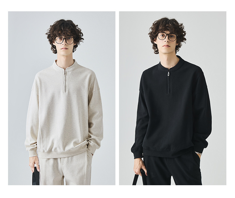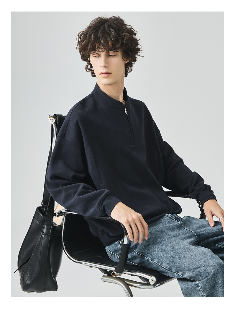 남성복 반집업 맨투맨 남성 가을 루즈한 차이나 브러싱 솔리드 이너 롱 슬리브 티셔츠