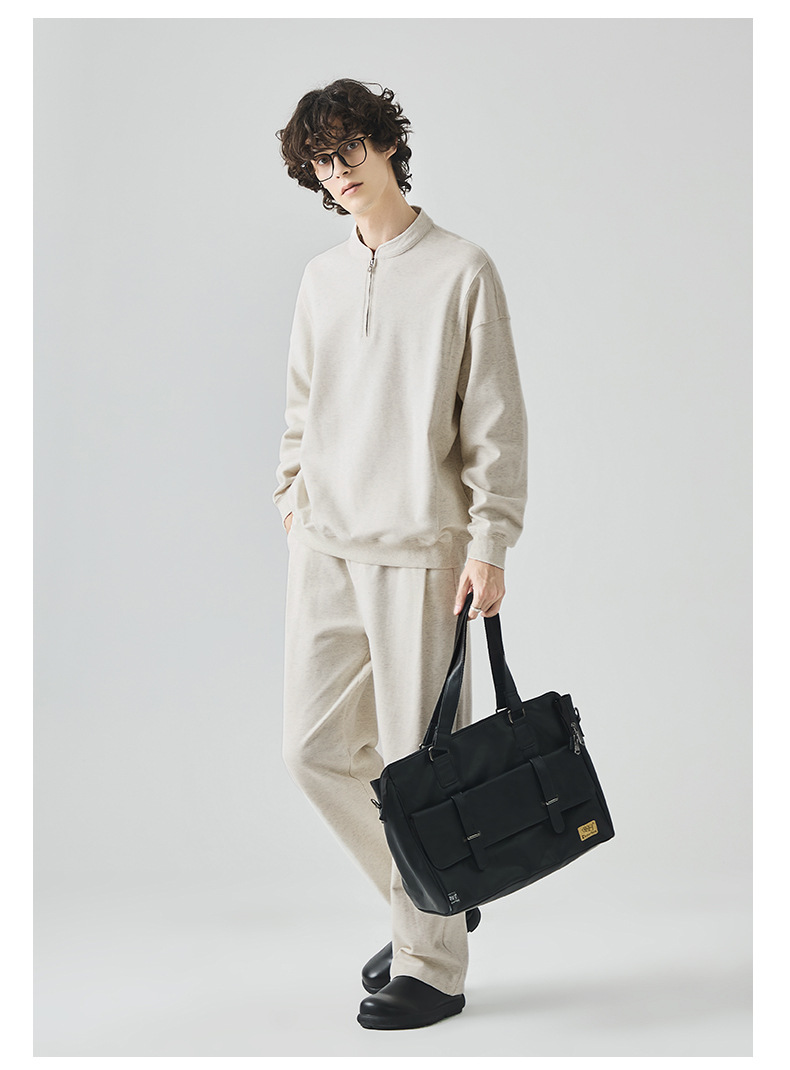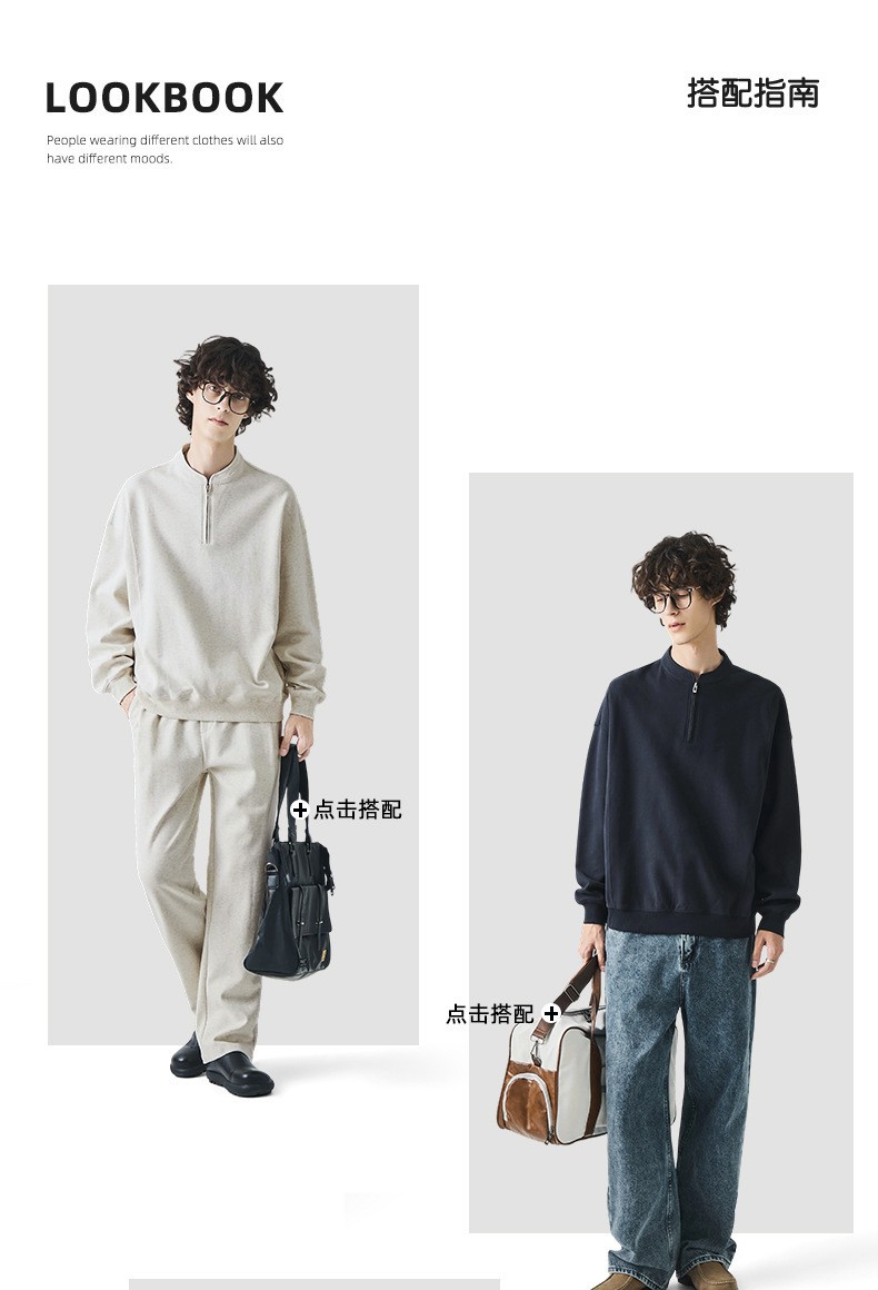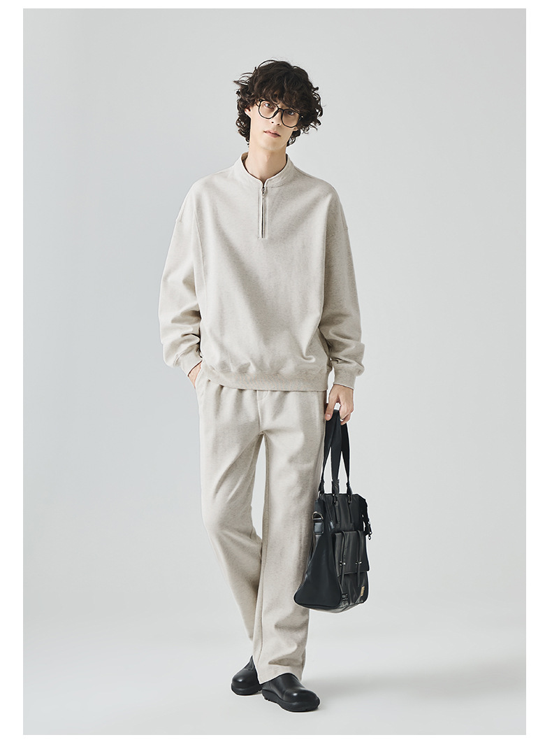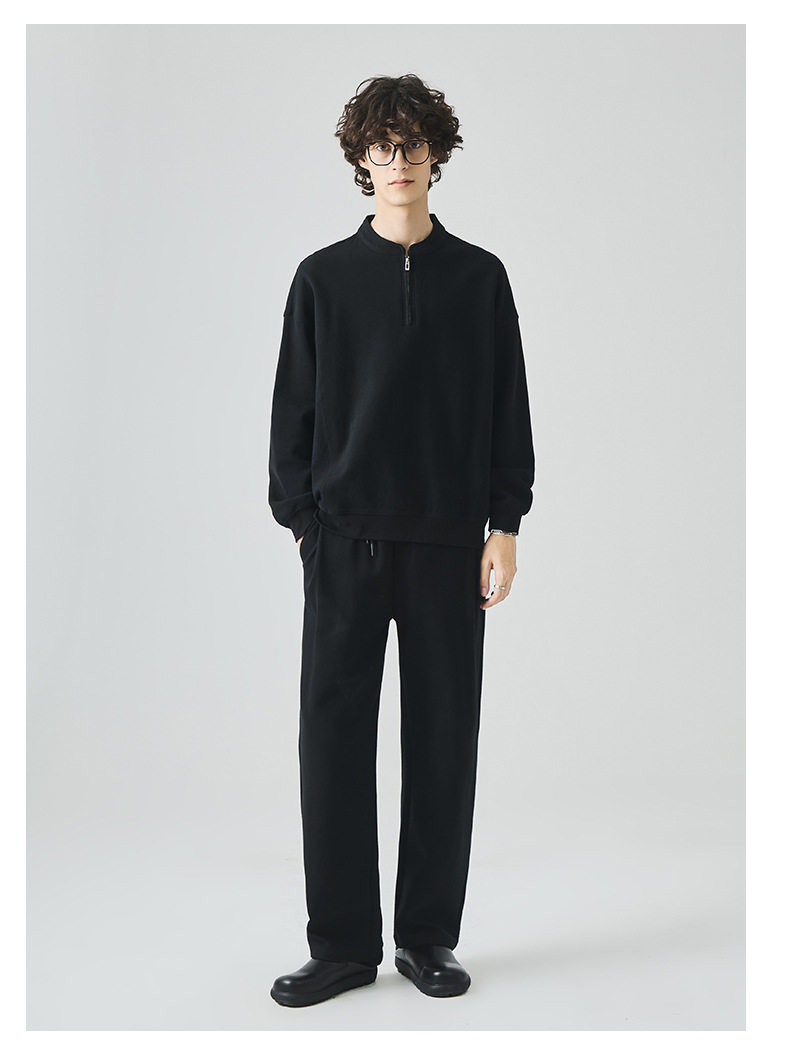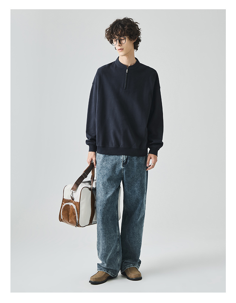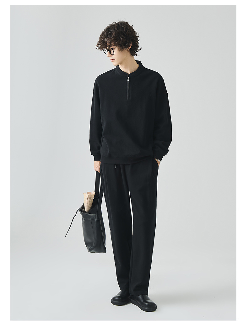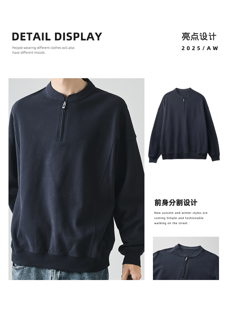 남성복 반집업 맨투맨 남성 가을 루즈한 차이나 브러싱 솔리드 이너 롱 슬리브 티셔츠