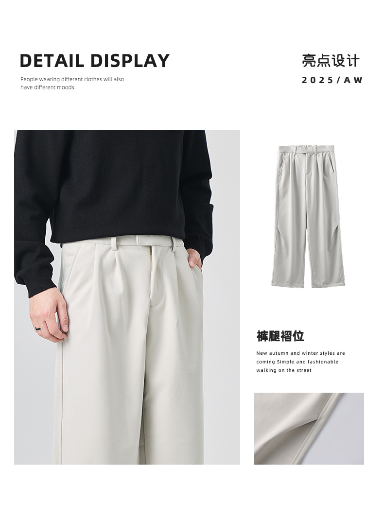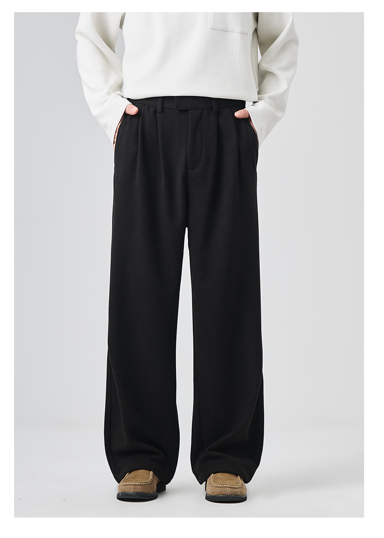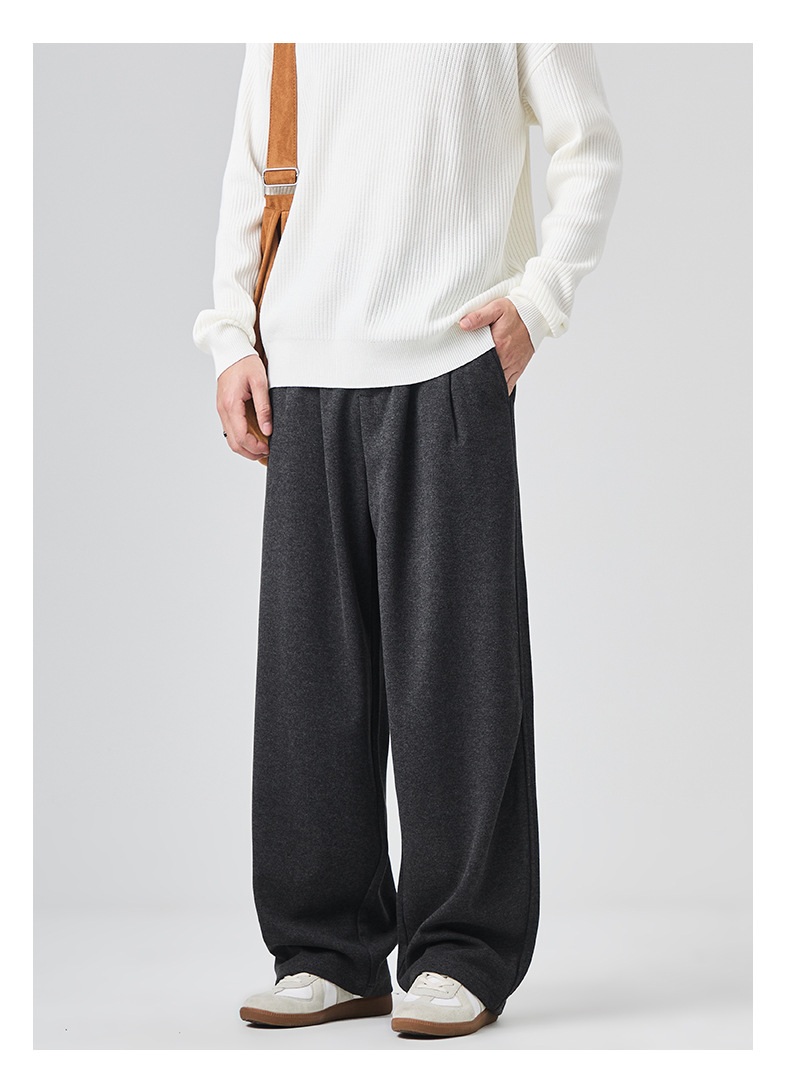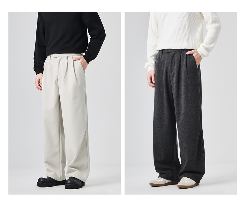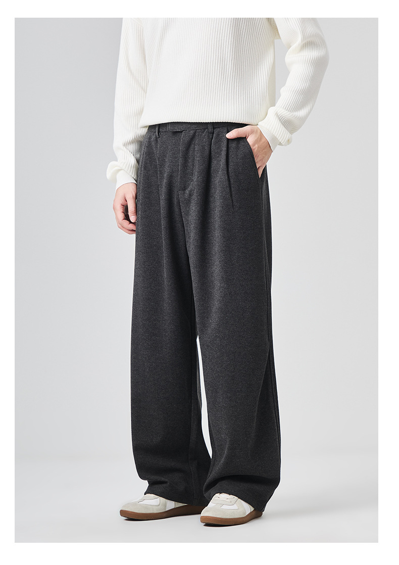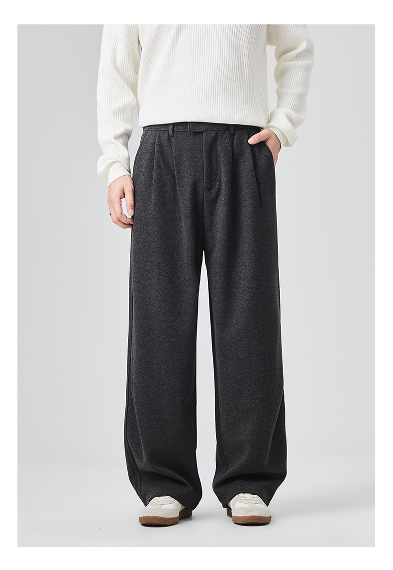 남성복 캐주얼 바지 가을과 겨울에 딱 떨어지는 루즈한 주름 없는 모직 바지