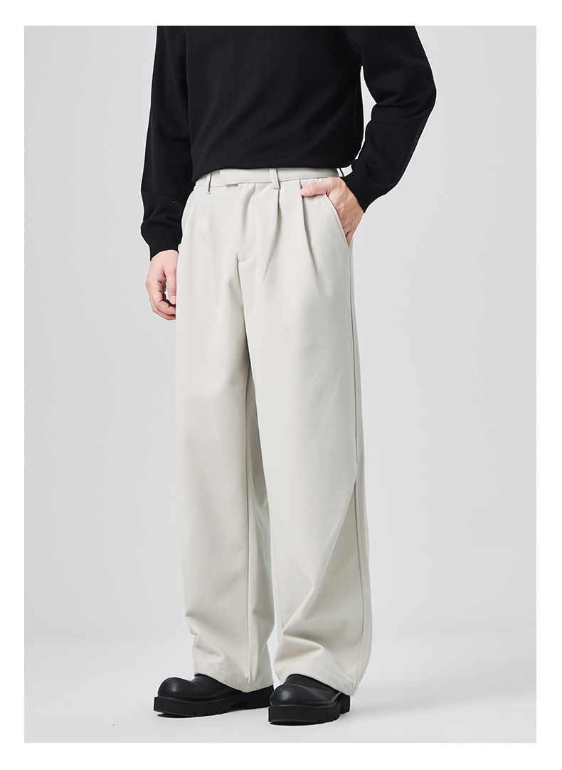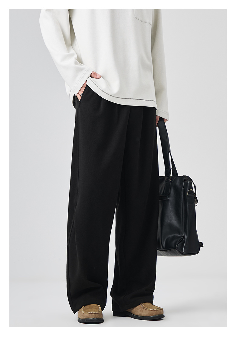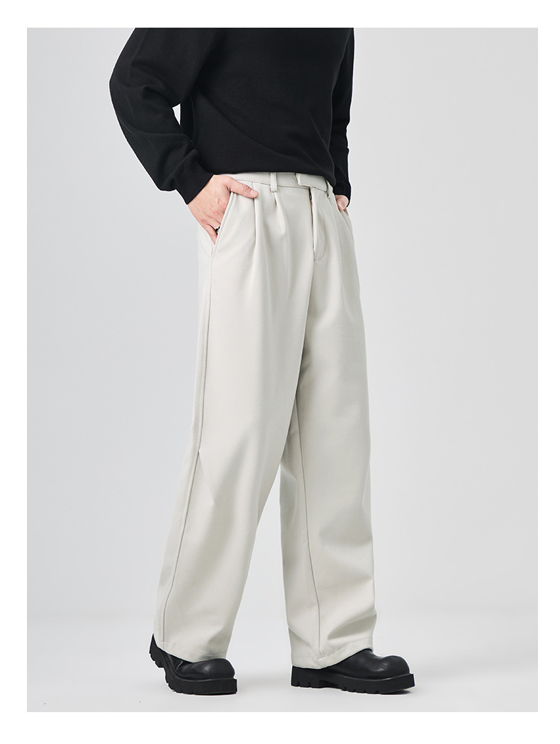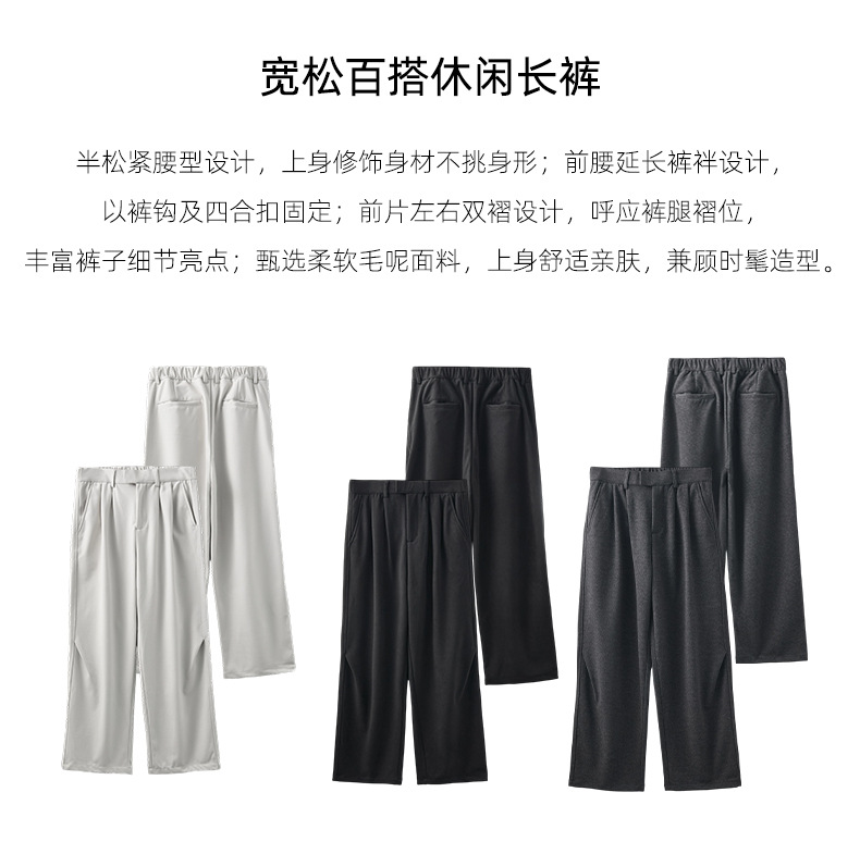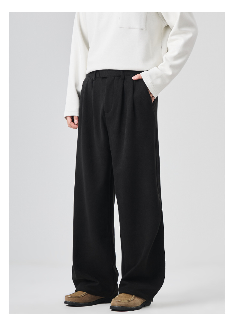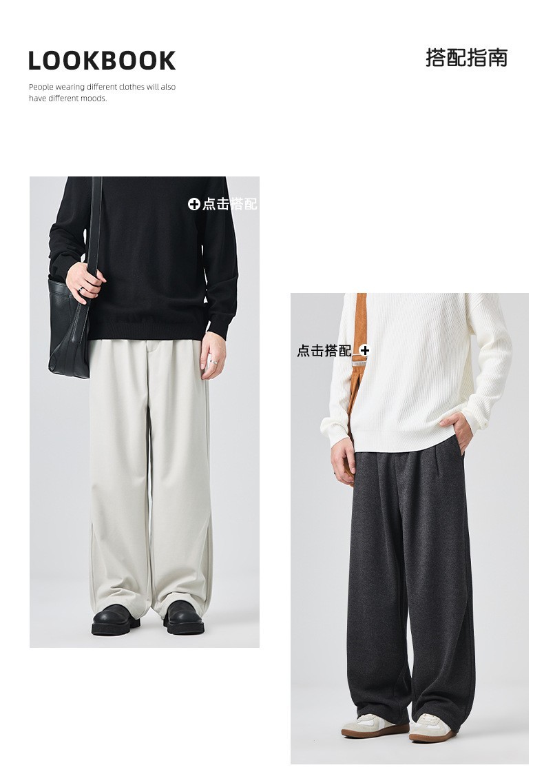 남성복 캐주얼 바지 가을과 겨울에 딱 떨어지는 루즈한 주름 없는 모직 바지