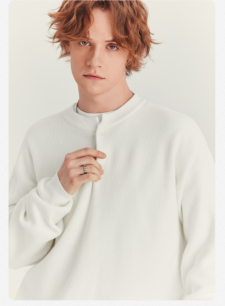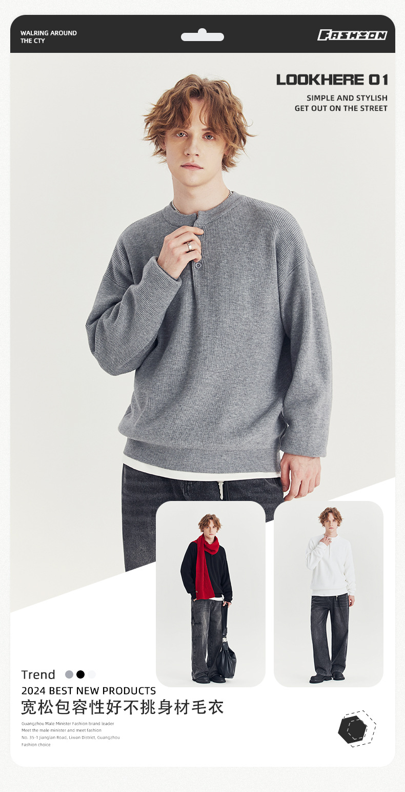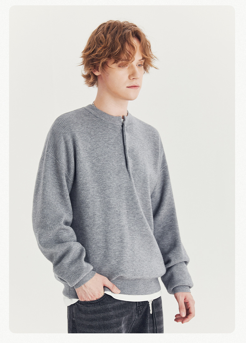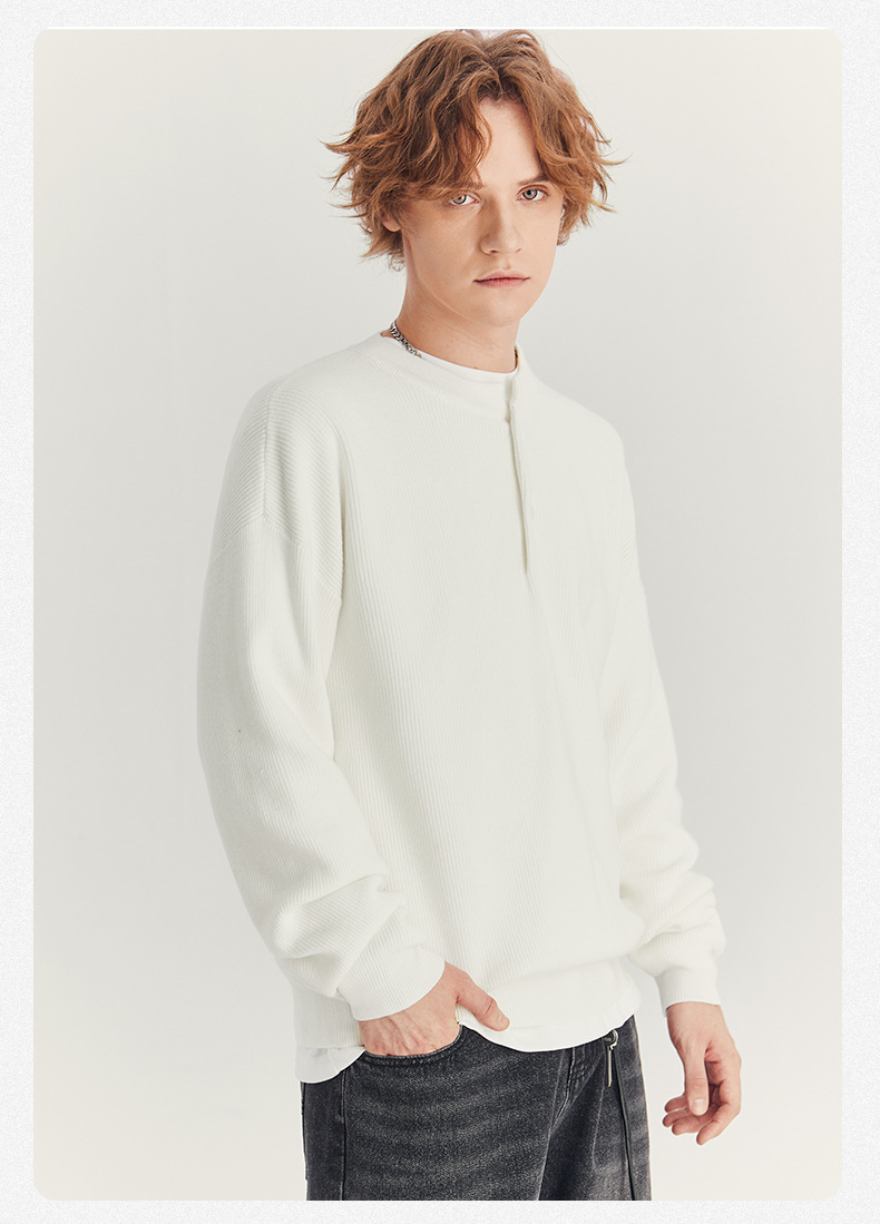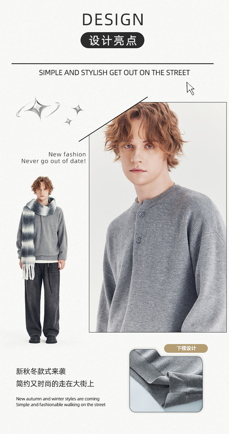 남성복 가을 겨울 반오픈 니트 남성패션 고급스러움의 루즈핏 니트 긴팔 이너