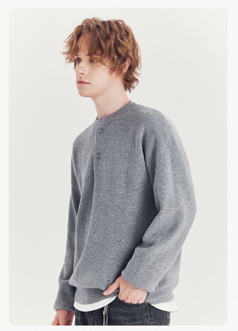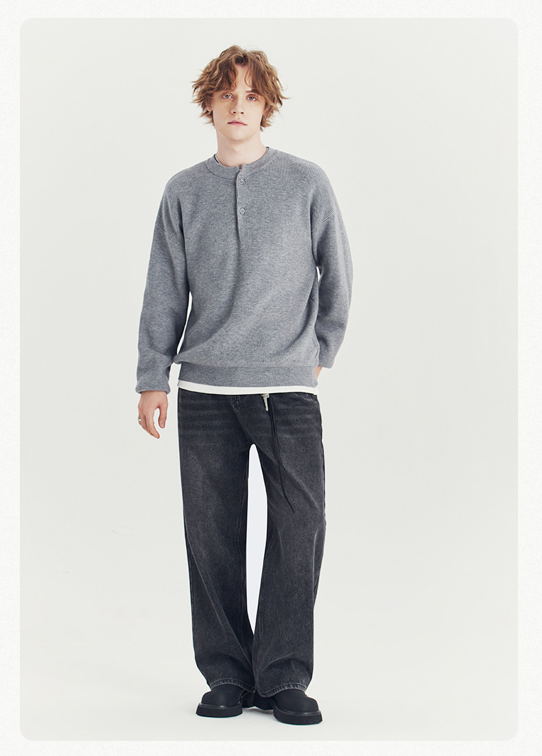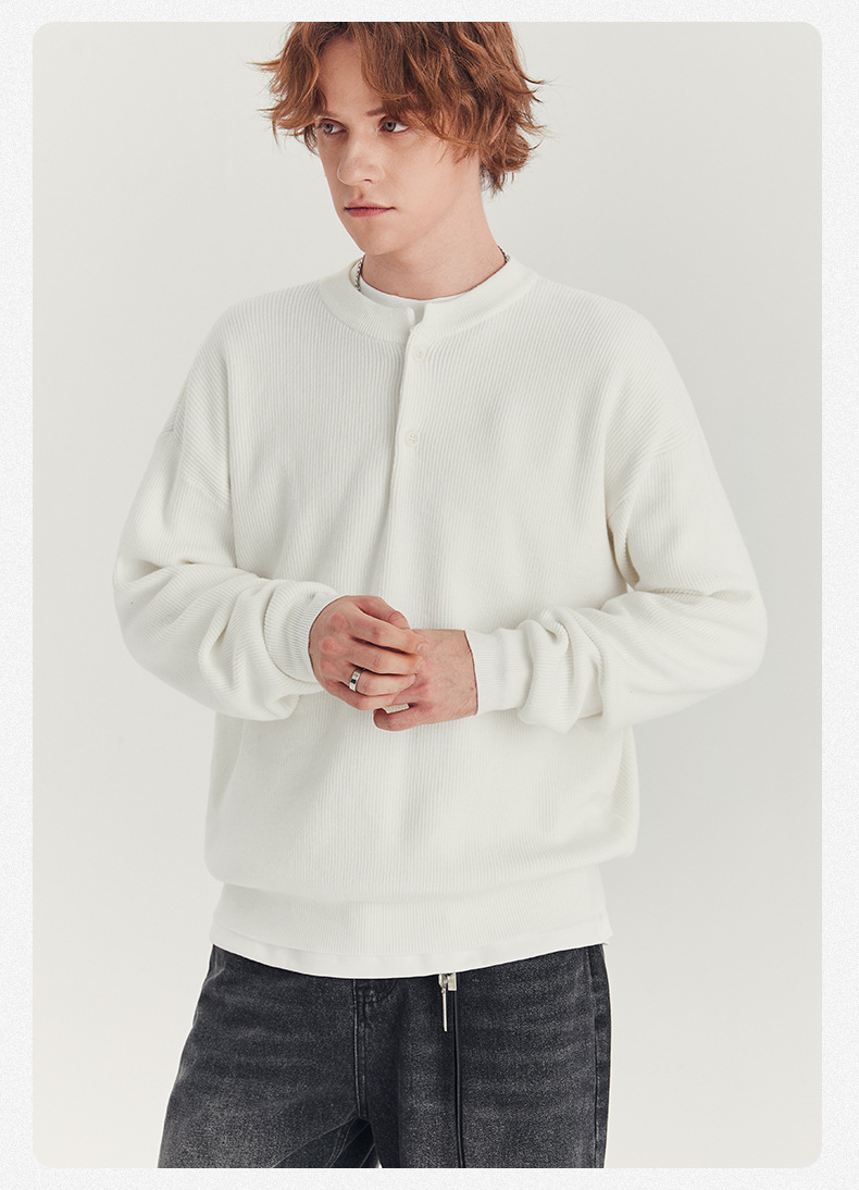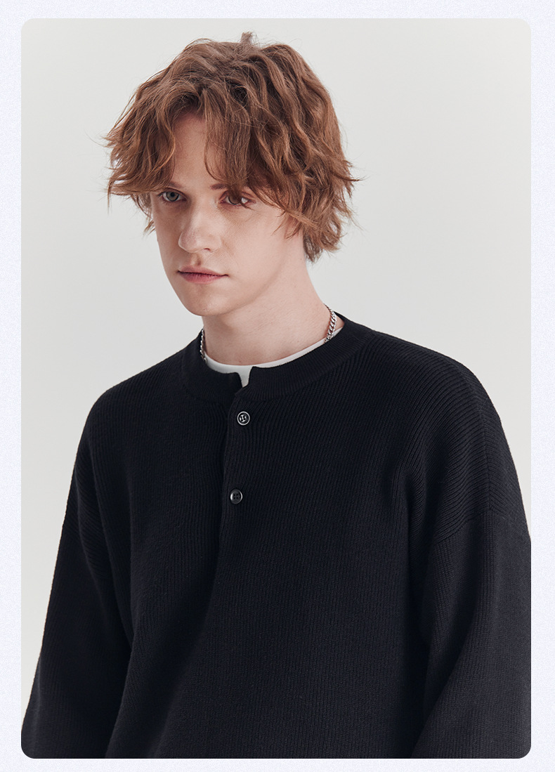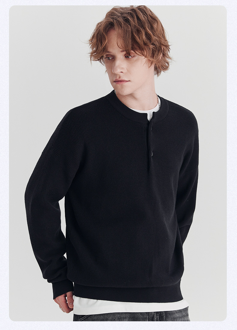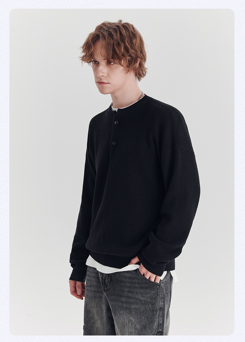 남성복 가을 겨울 반오픈 니트 남성패션 고급스러움의 루즈핏 니트 긴팔 이너