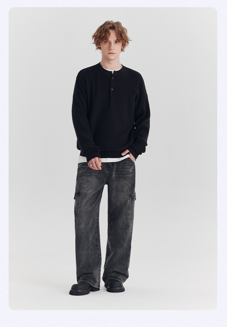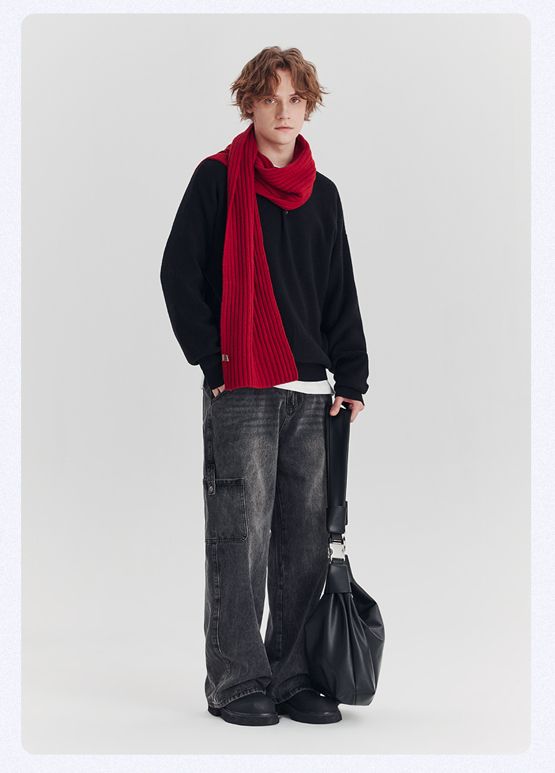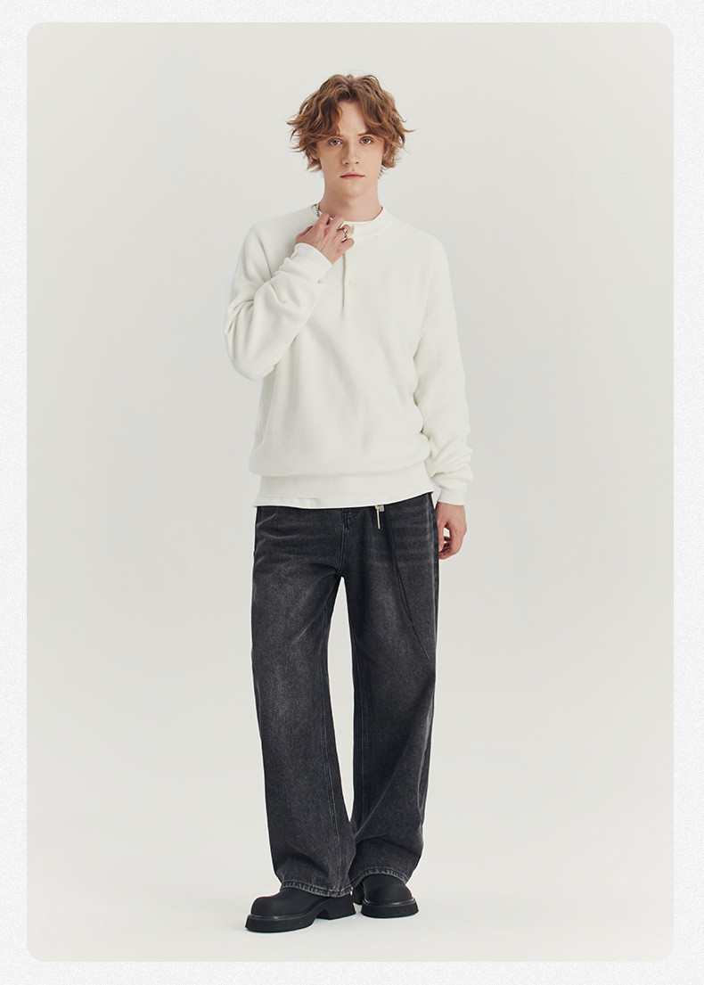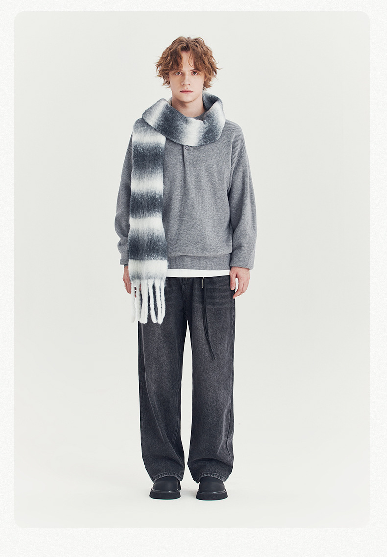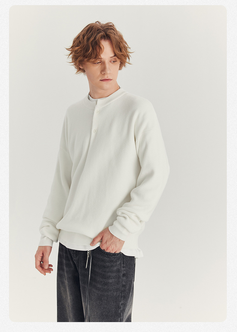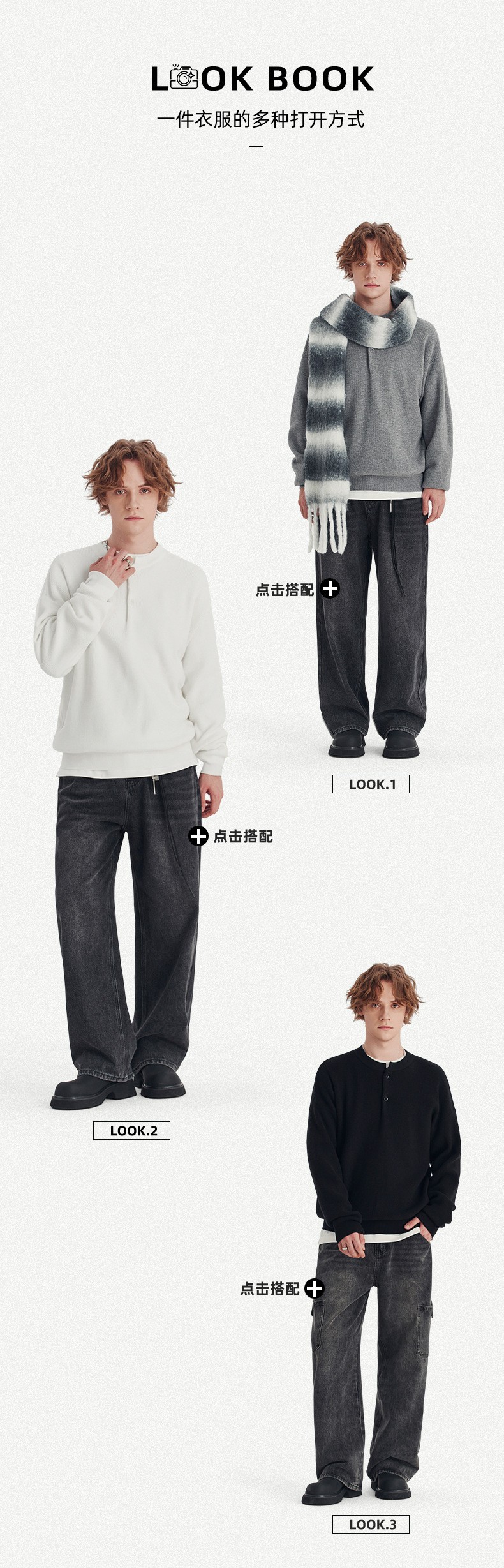 남성복 가을 겨울 반오픈 니트 남성패션 고급스러움의 루즈핏 니트 긴팔 이너