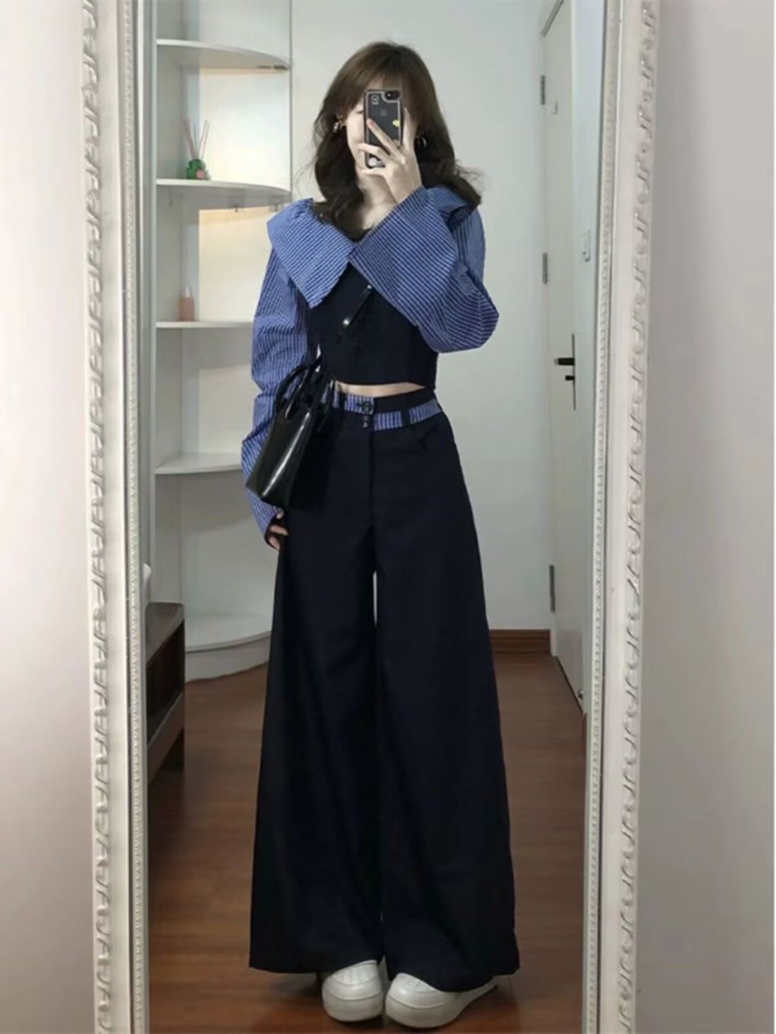 일자 숄더 상의에 캐주얼팬츠 투피스예요