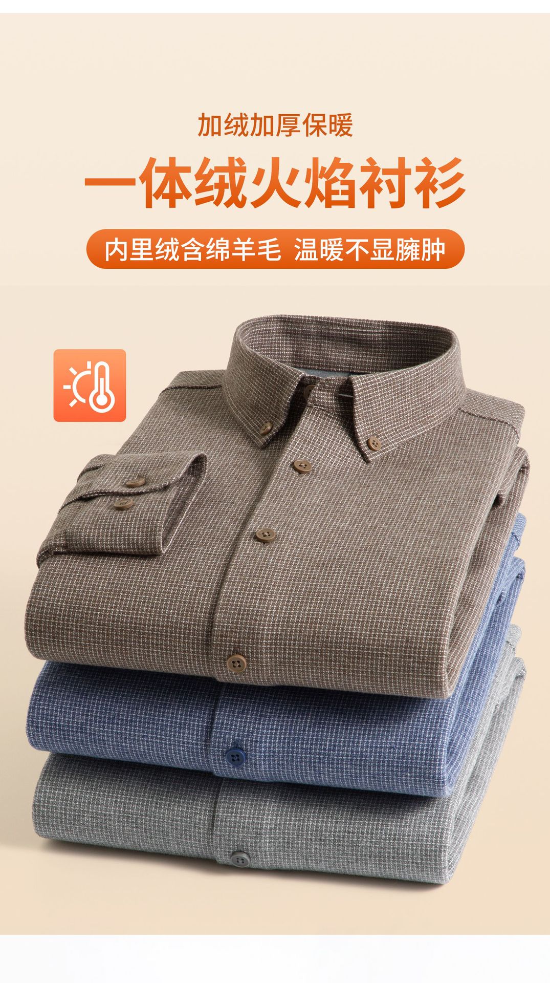울 복합 일체형 기모 겨울 기모 두툼한 셔츠 남성 긴팔 캐주얼 비즈니스 블라우스 남성