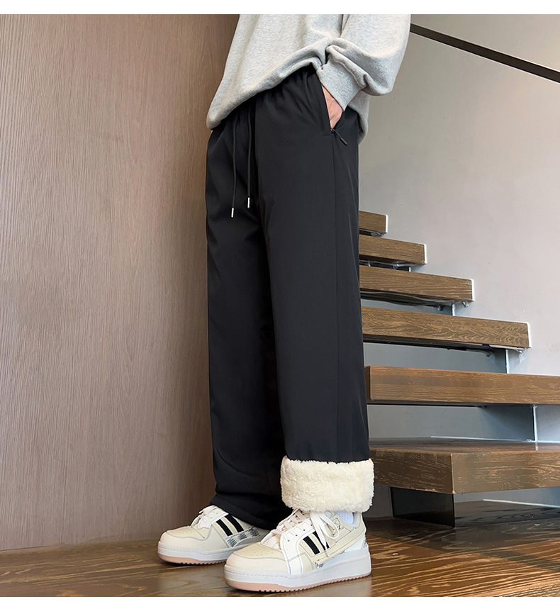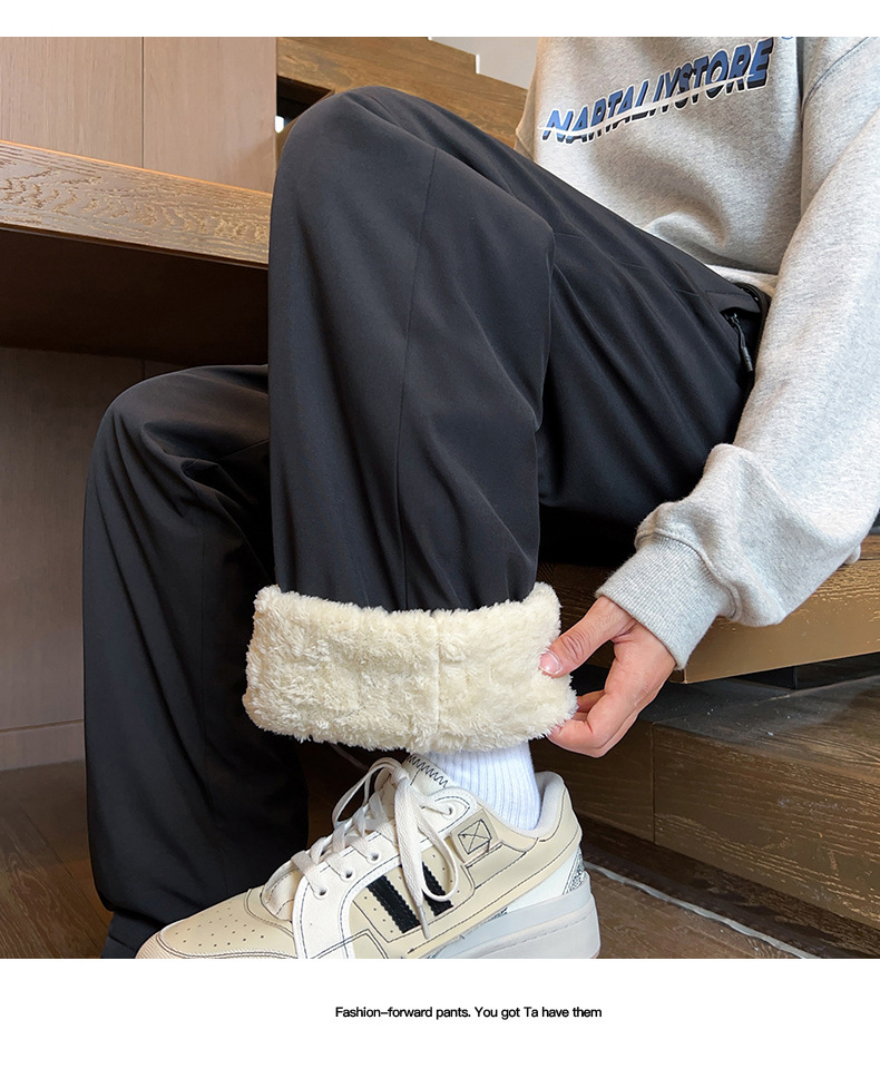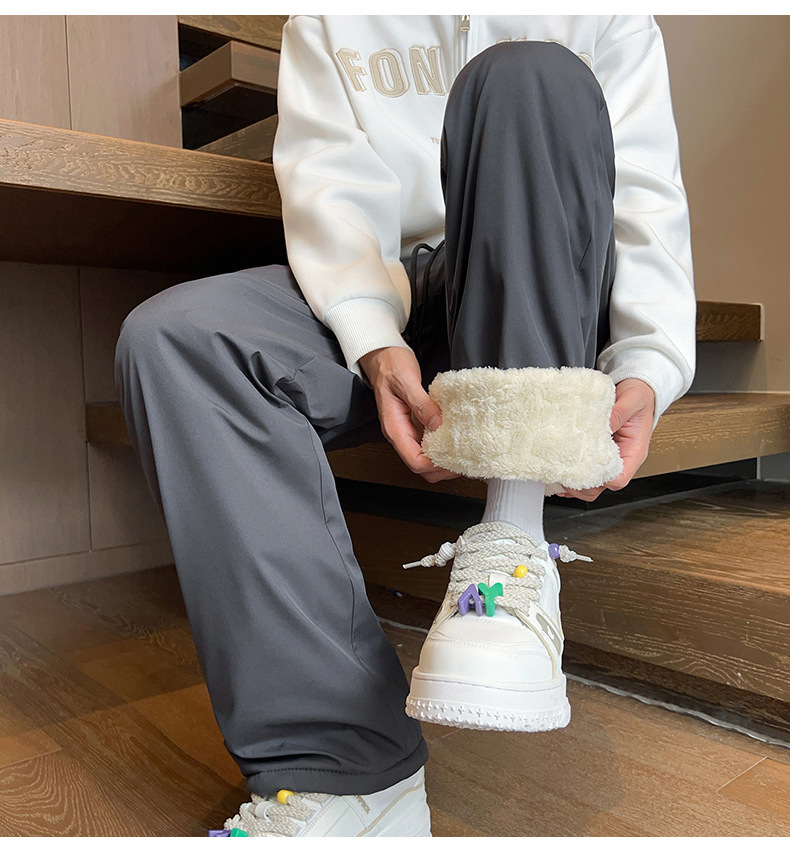 남성용 면바지 가을겨울 기모 도톰한 통 레깅스 슬랙스 겨울 보온 스웨이드 바지
